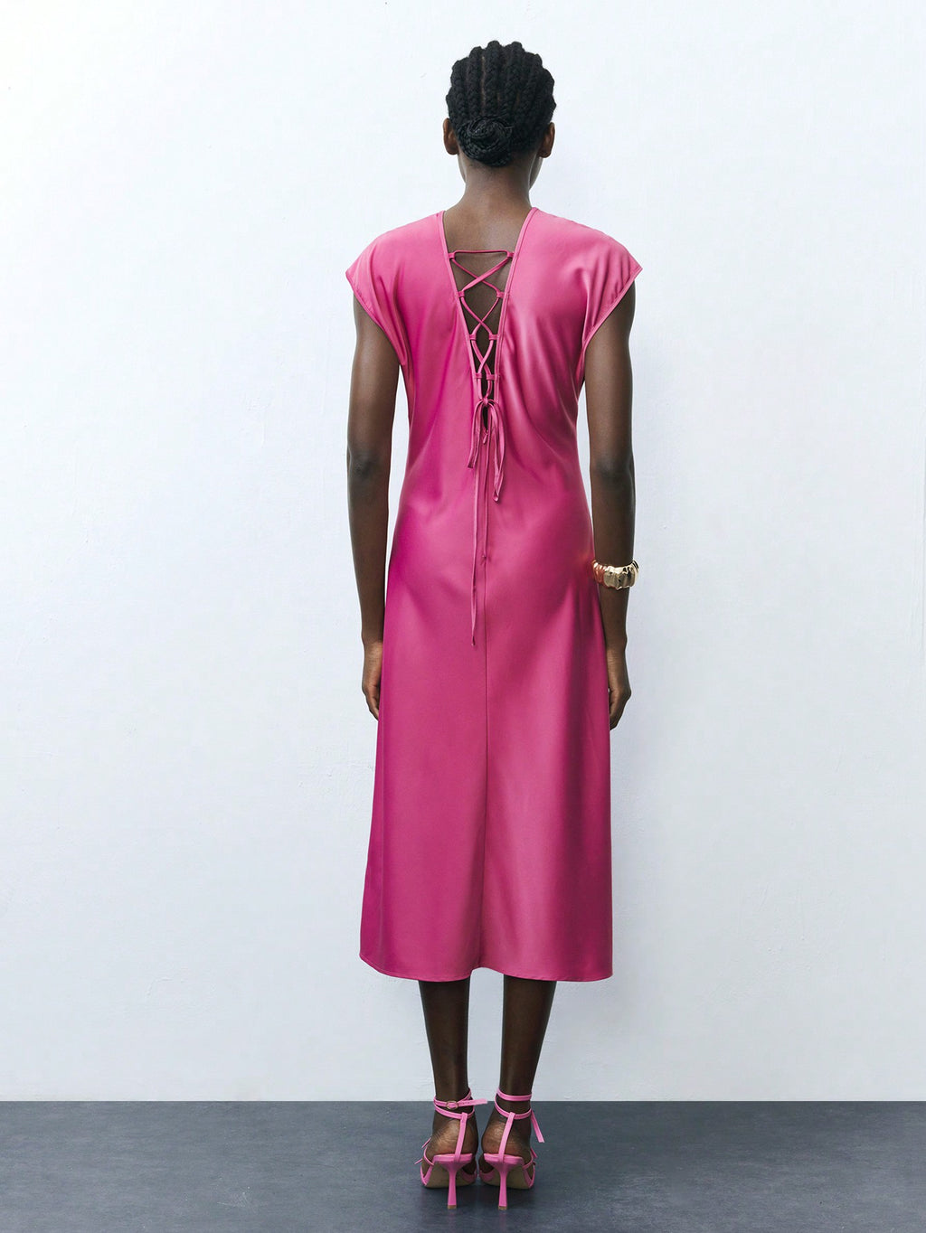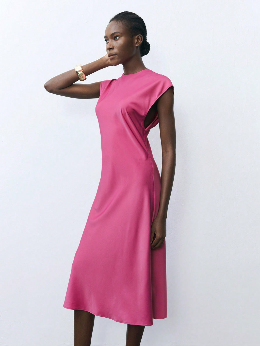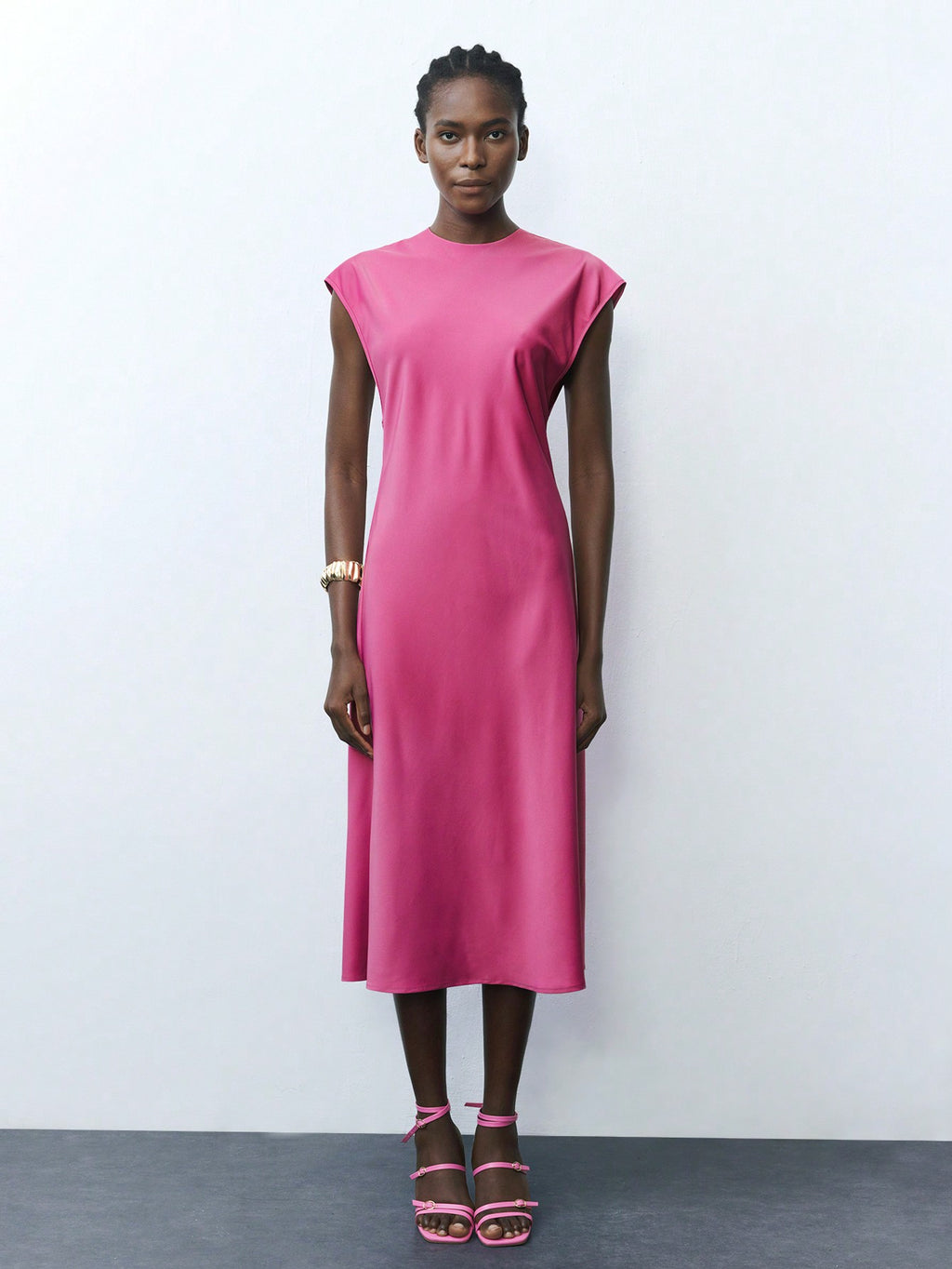 BELLAVOG Women's Round Neck Short Sleeve Solid Color Slim Fit Elegant And Charming Dress