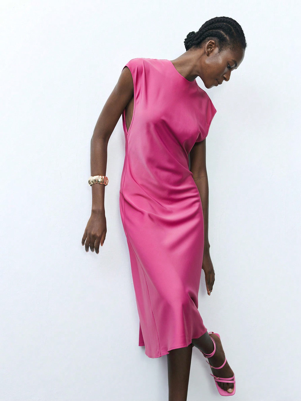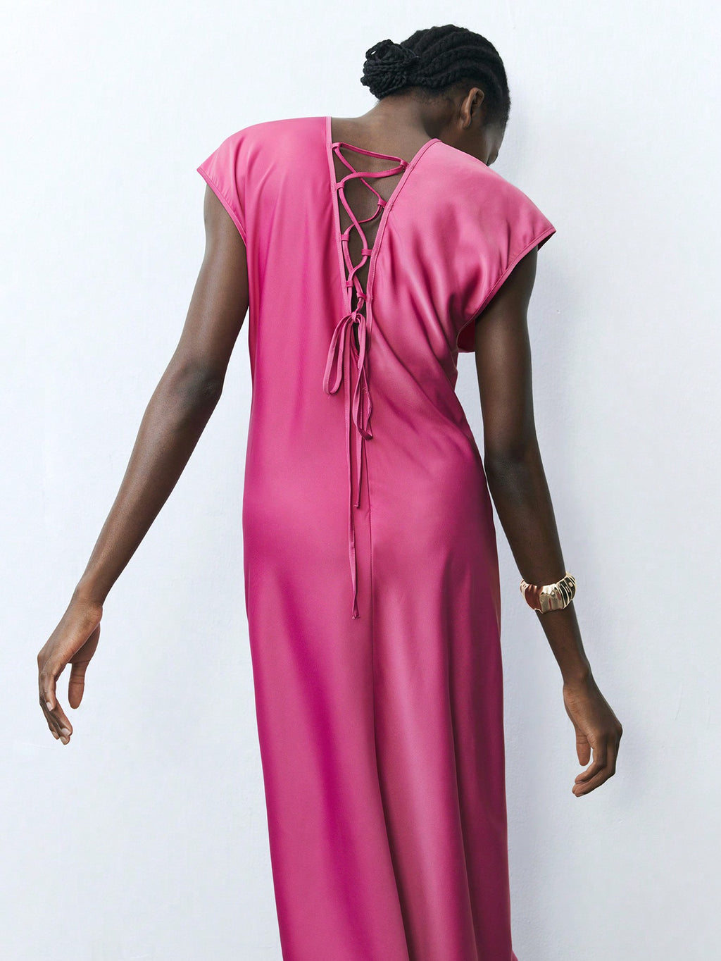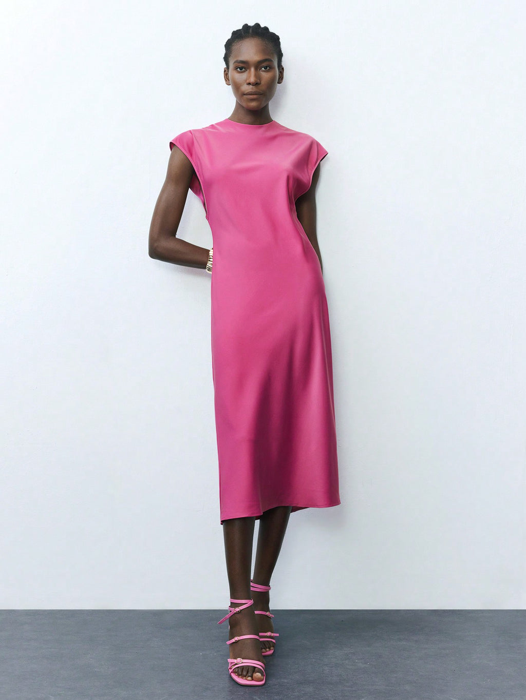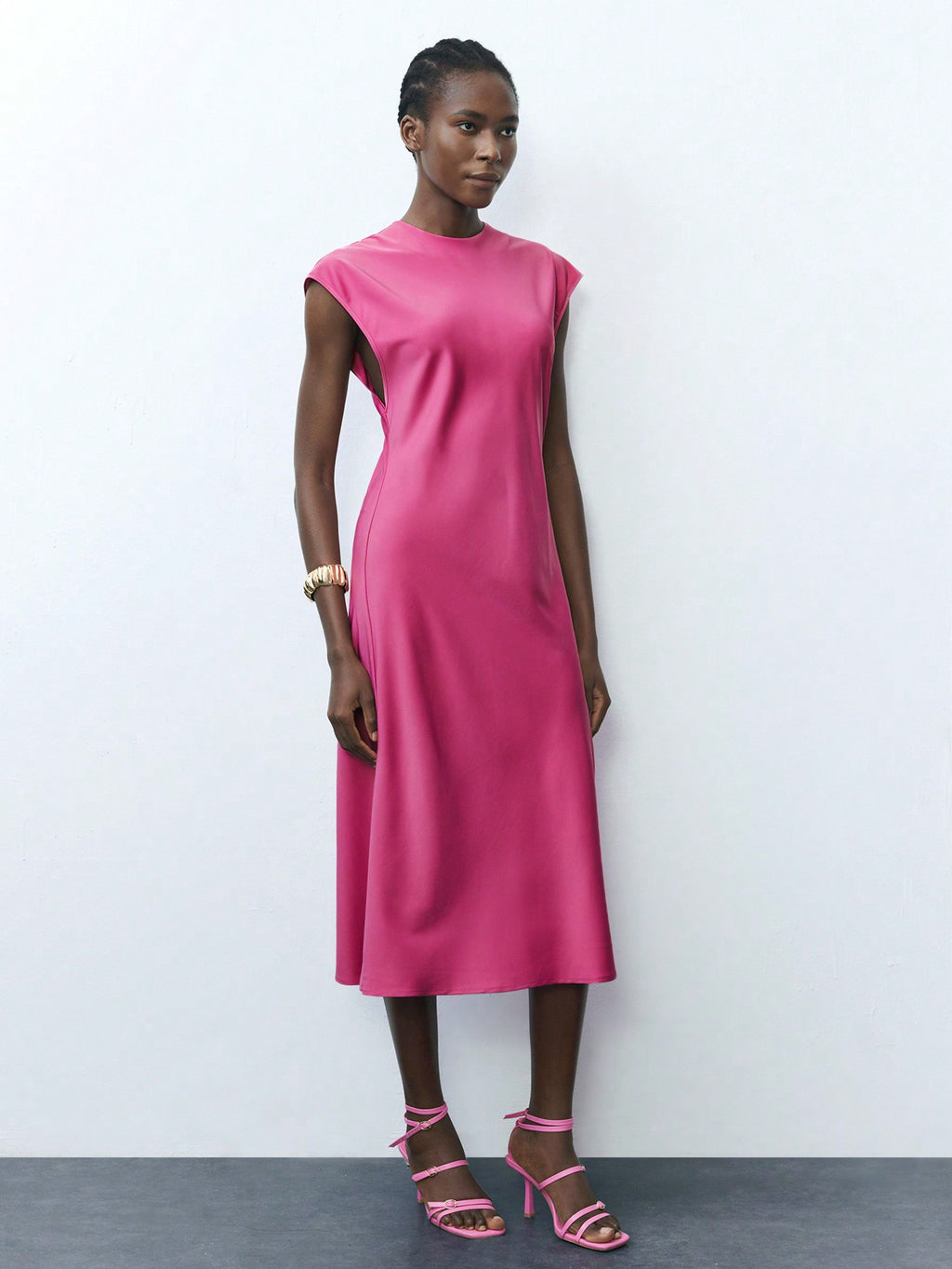 BELLAVOG Women's Round Neck Short Sleeve Solid Color Slim Fit Elegant And Charming Dress