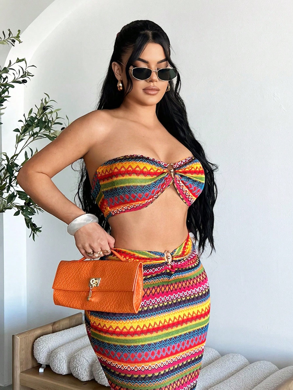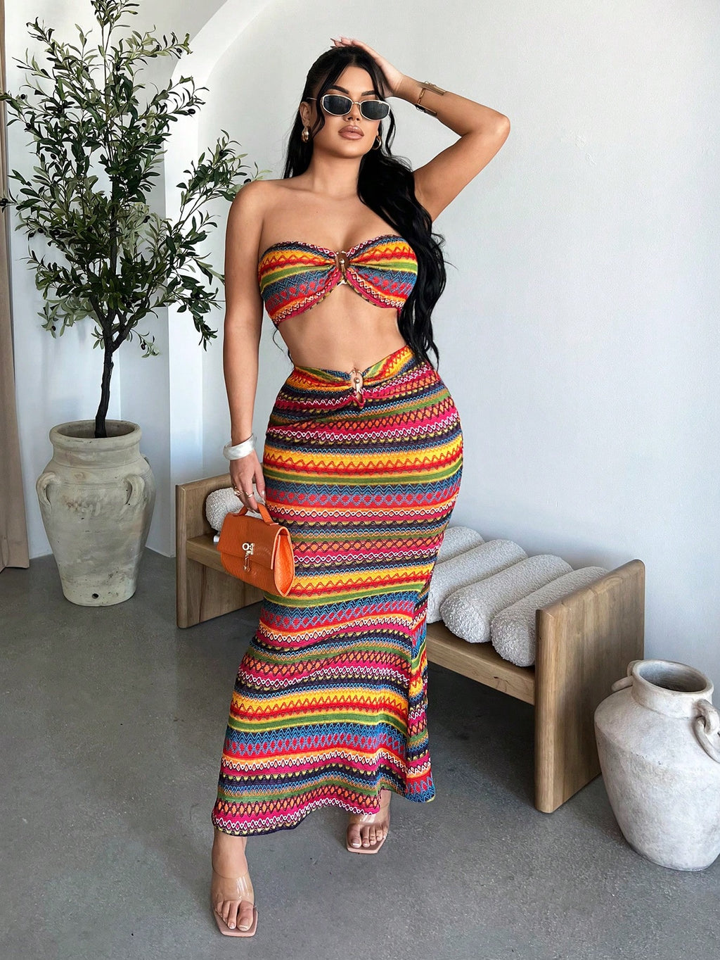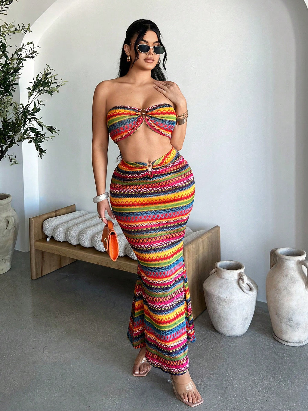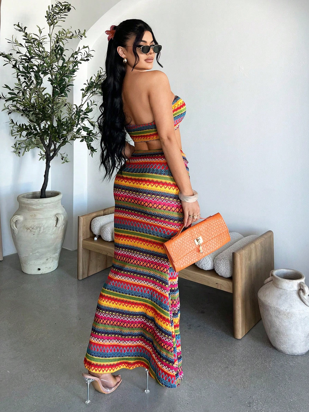 BELLAVOG Ženski seksi šareni prugasti kratki bandeau top