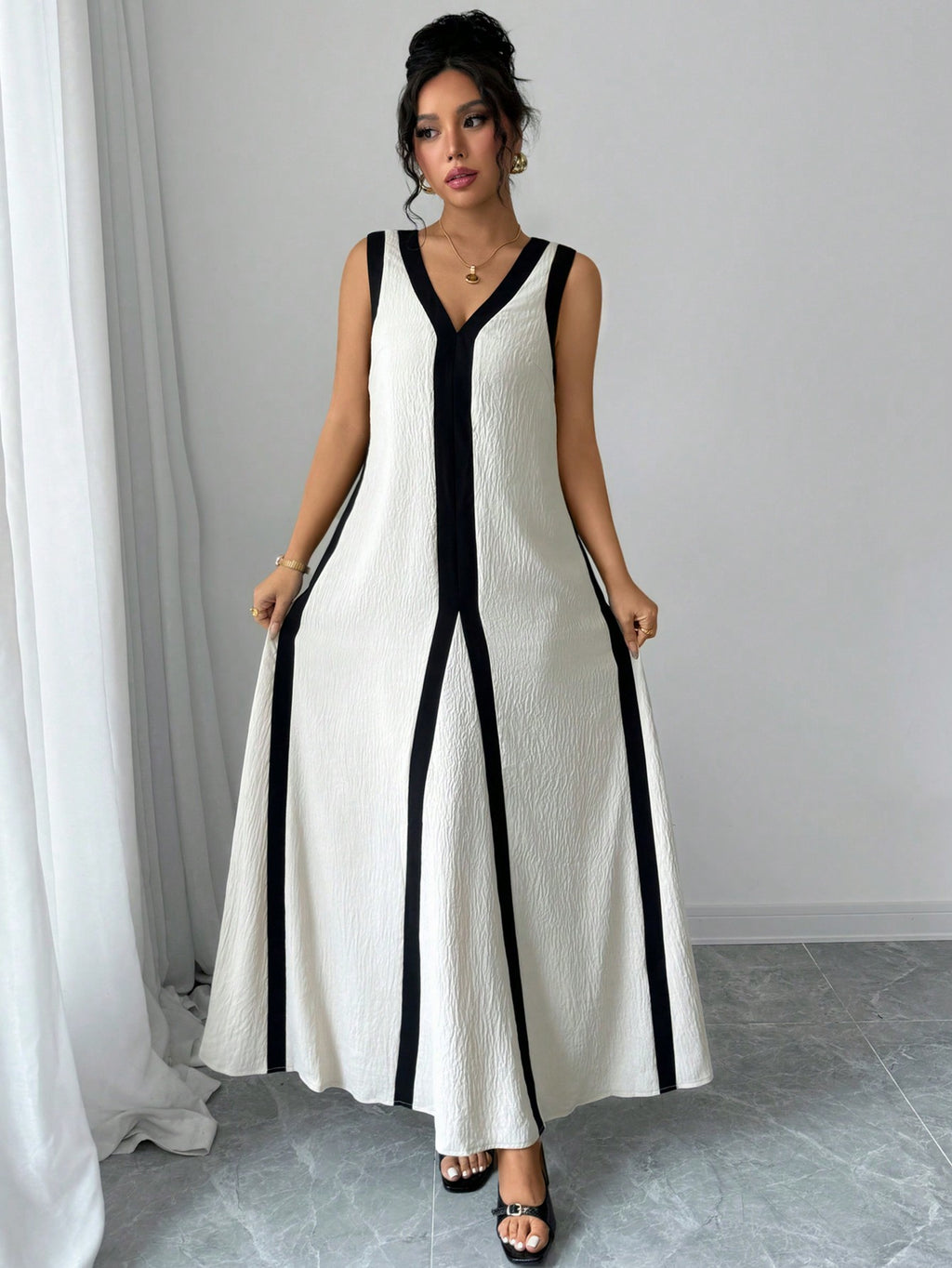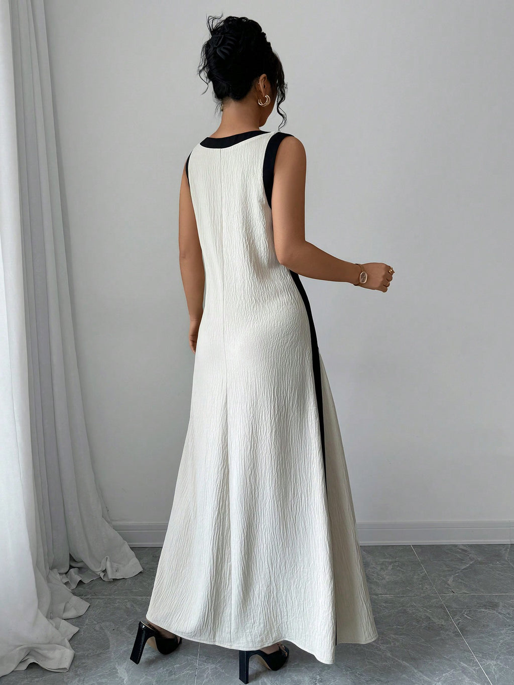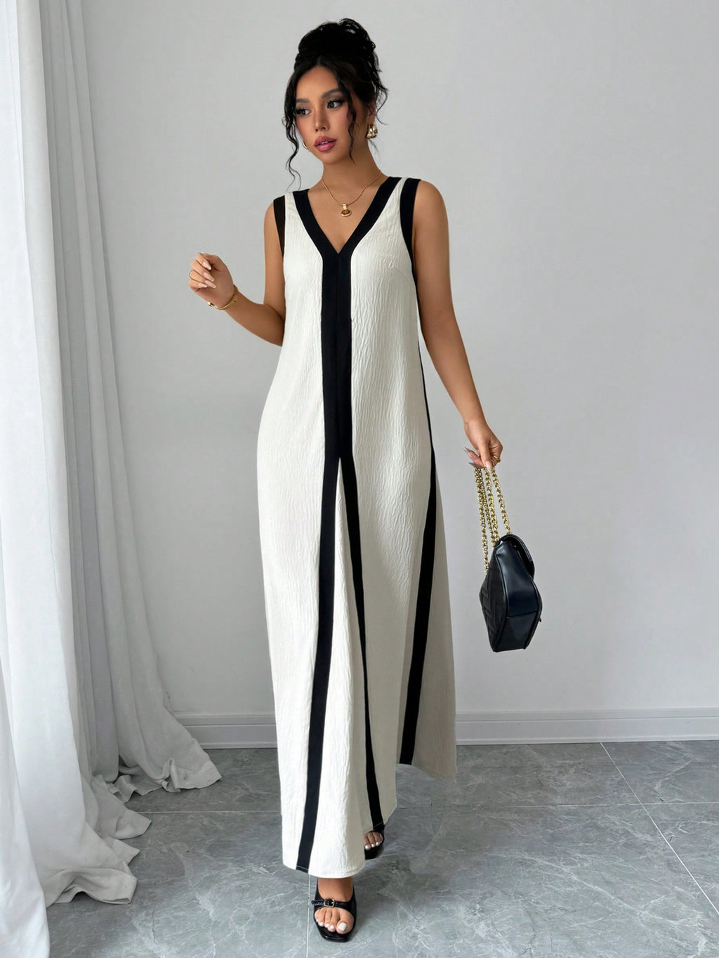 BELLAVOG Women's Sleeveless Long Dress, Simple Fashion Casual Everyday Wear,Elegant And Romantic Color Block Black And White Stitching A-Hem Long Dress