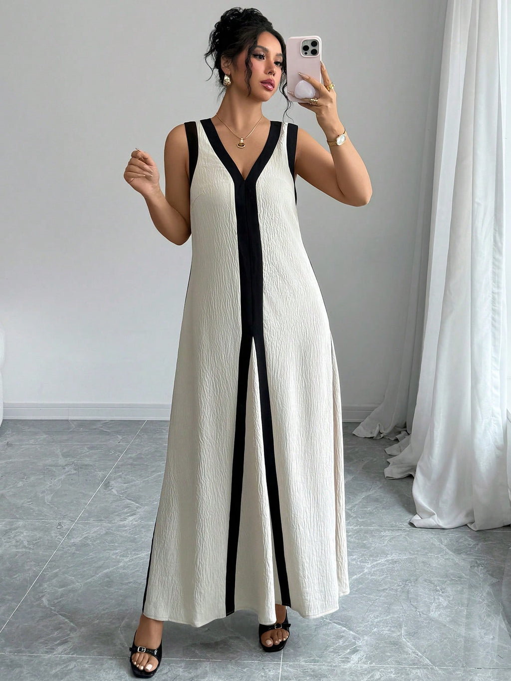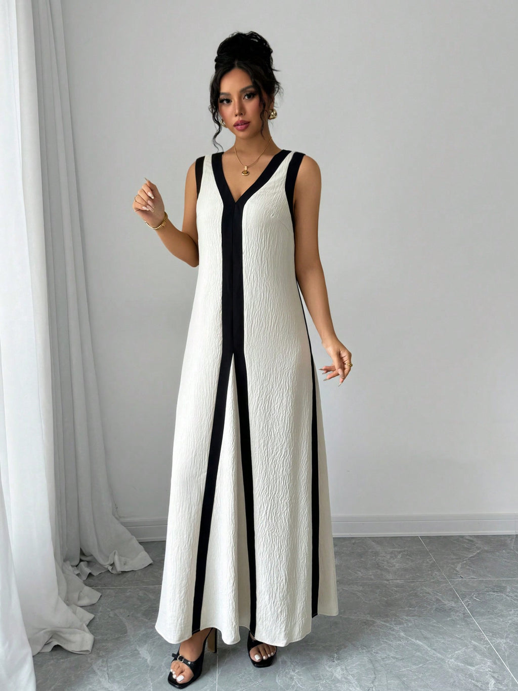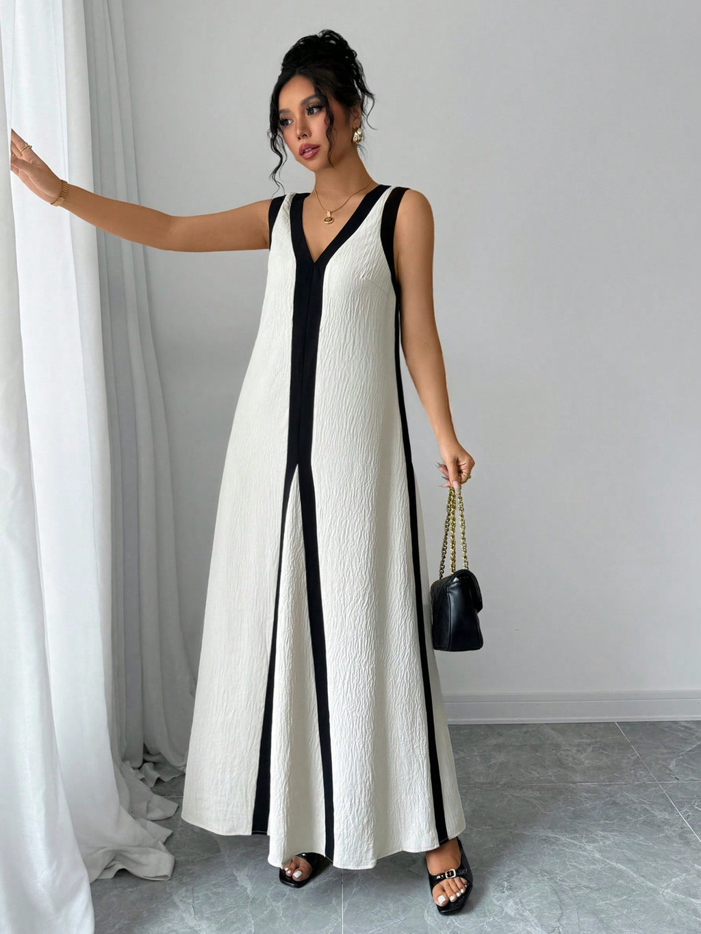 BELLAVOG Women's Sleeveless Long Dress, Simple Fashion Casual Everyday Wear,Elegant And Romantic Color Block Black And White Stitching A-Hem Long Dress