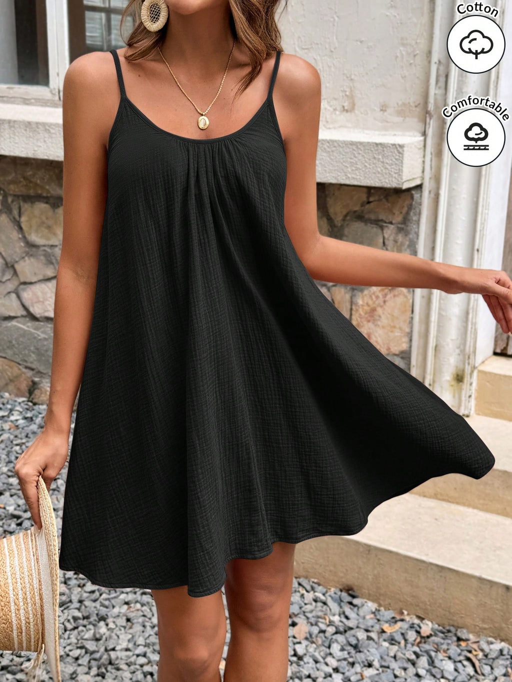MIU AZRA Ženska Crna Crep Haljina sa Nabranom Ovratnikom i Rukavima u Zvonu