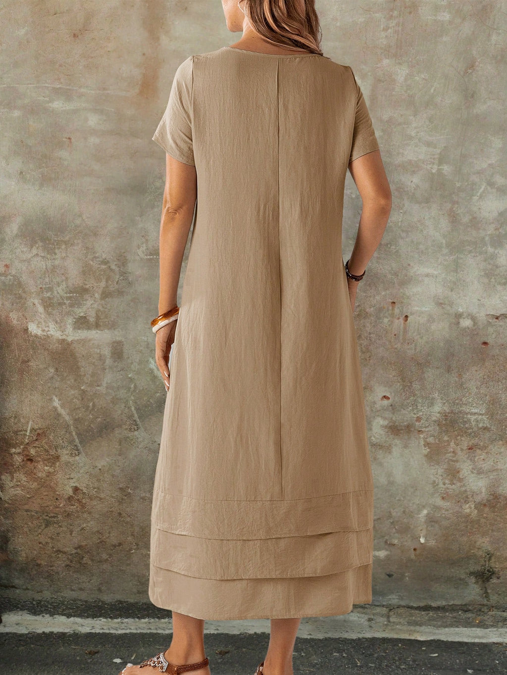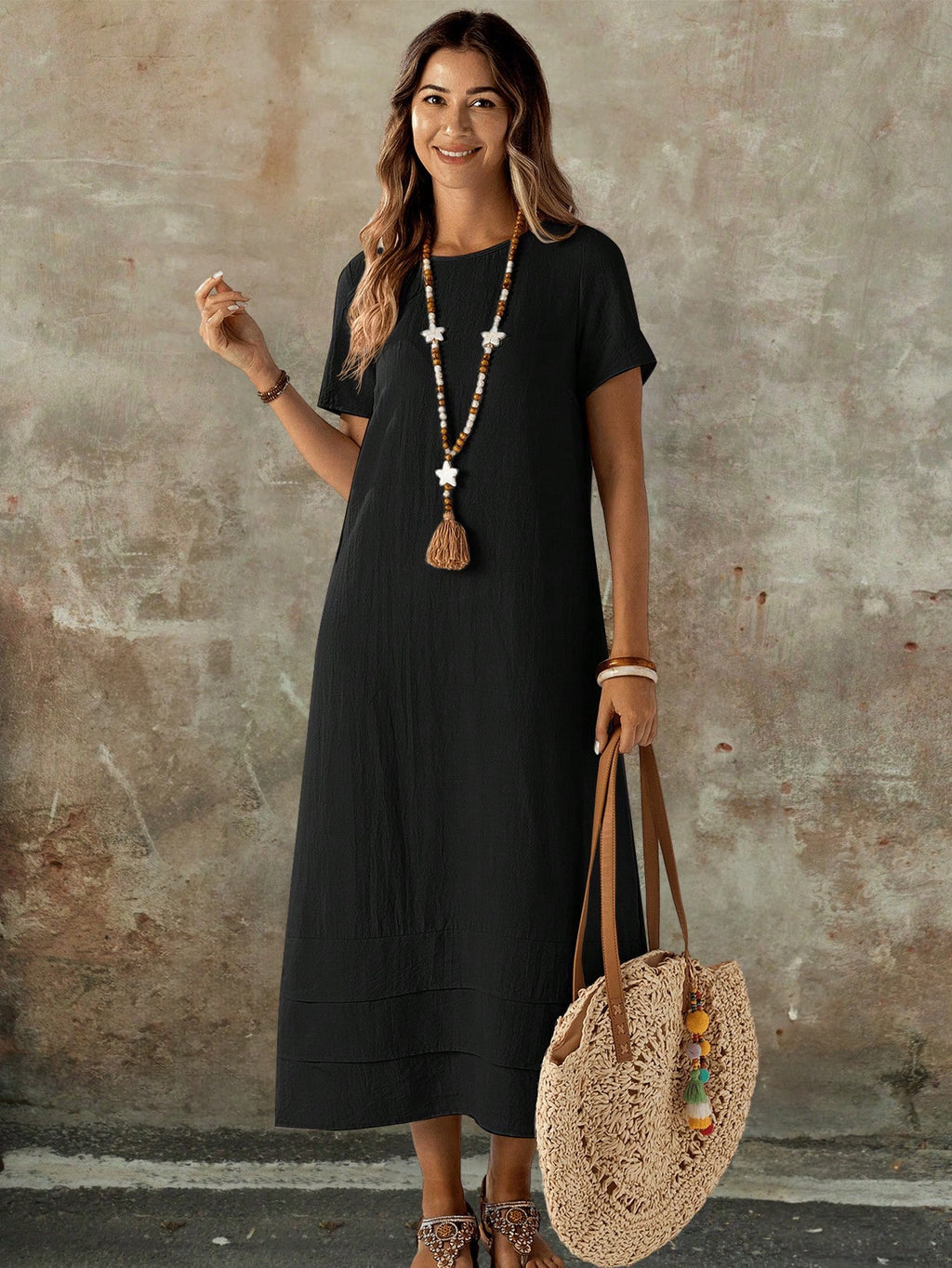 MIU AZRA Ženska Crna Crep Haljina sa Nabranom Ovratnikom i Rukavima u Zvonu