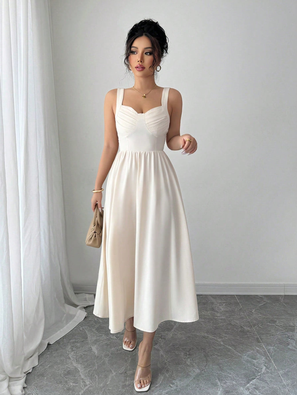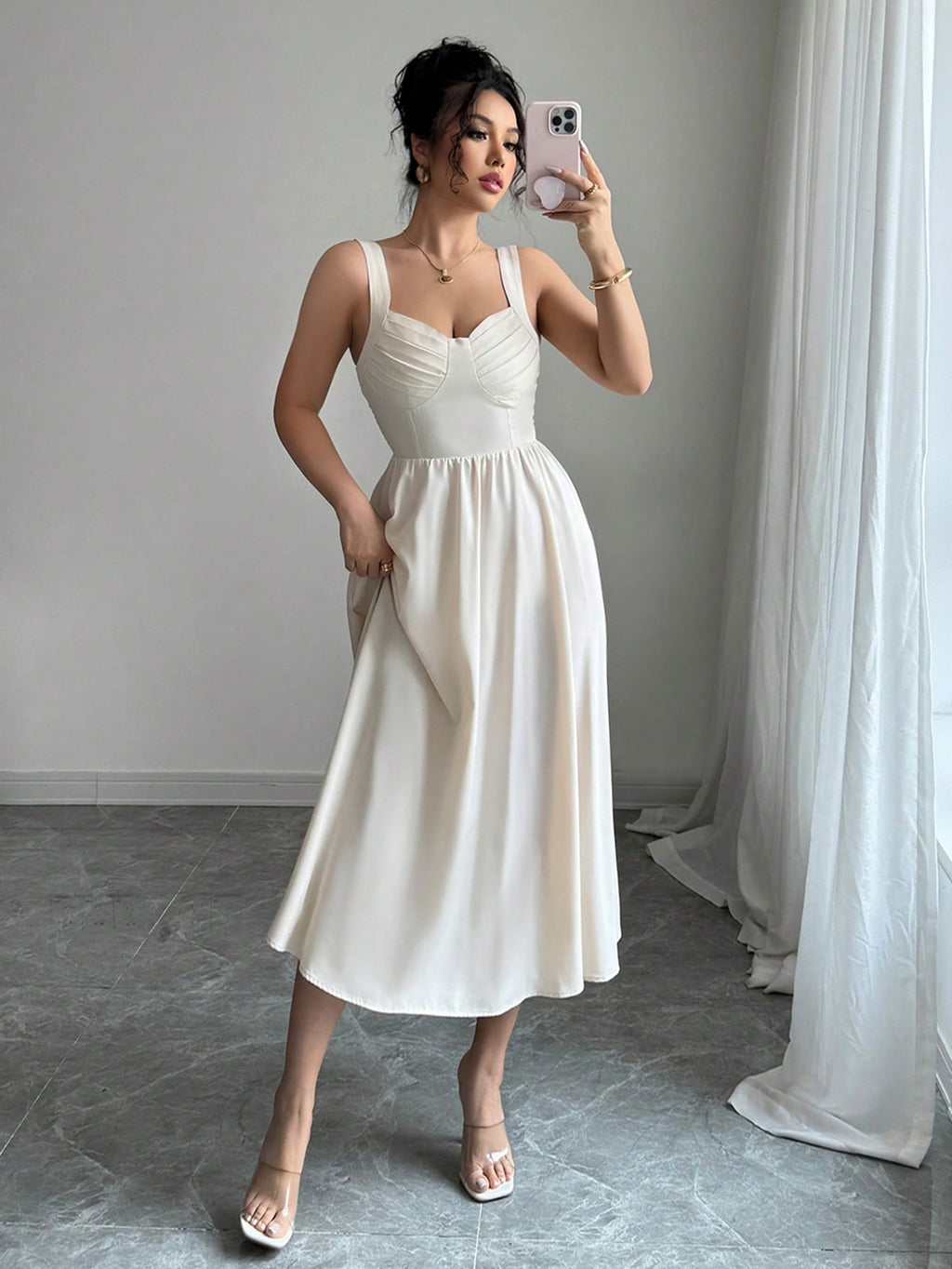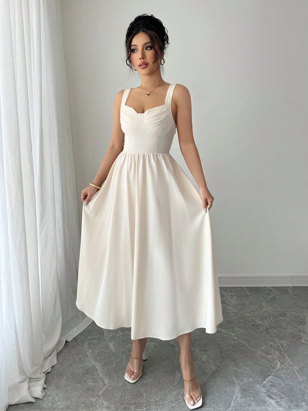 BELLAVOG Ženska jednobojna haljina A-kroja s elastičnim strukom, proširena, ležerna/radna, slip haljina
