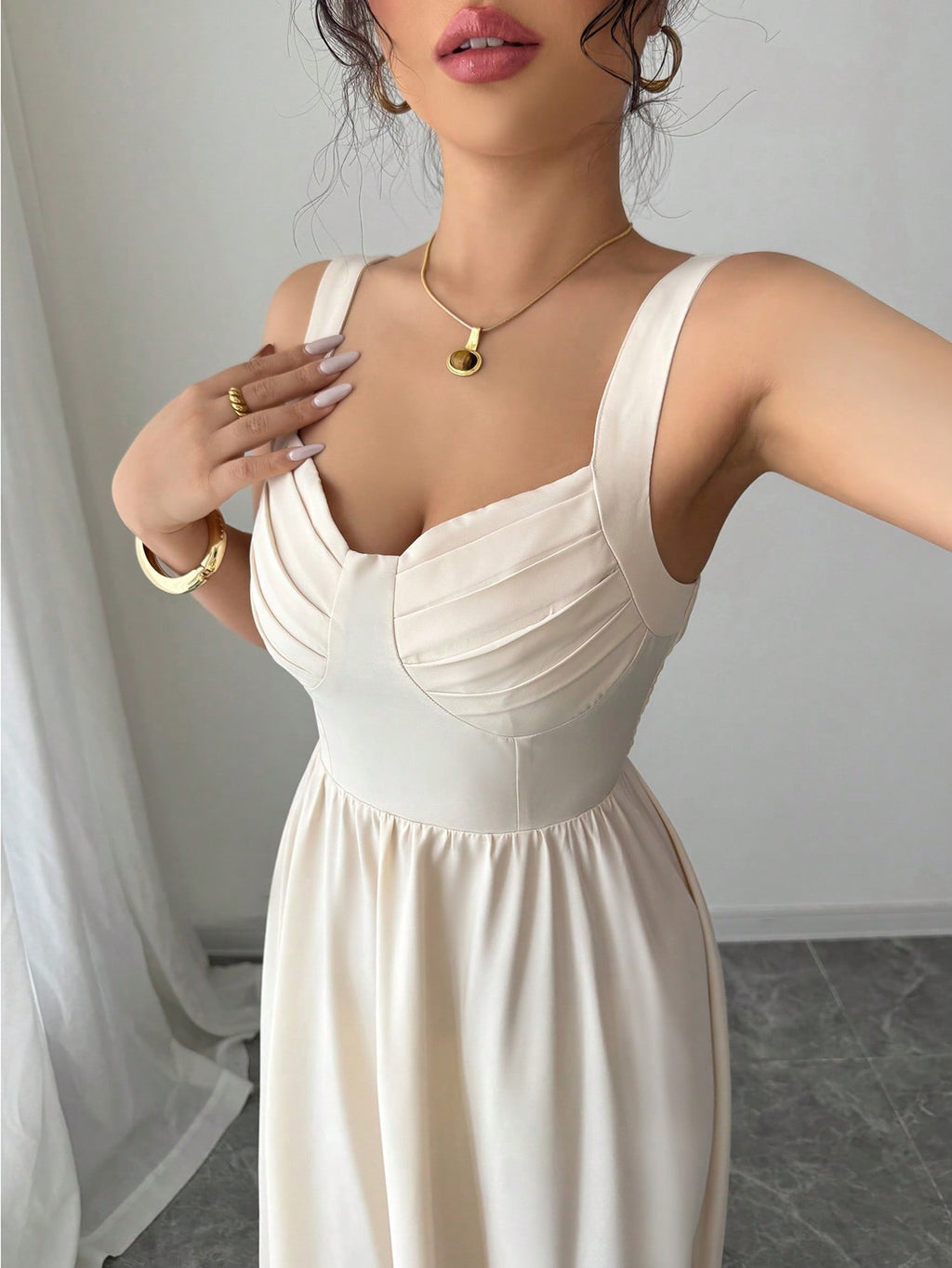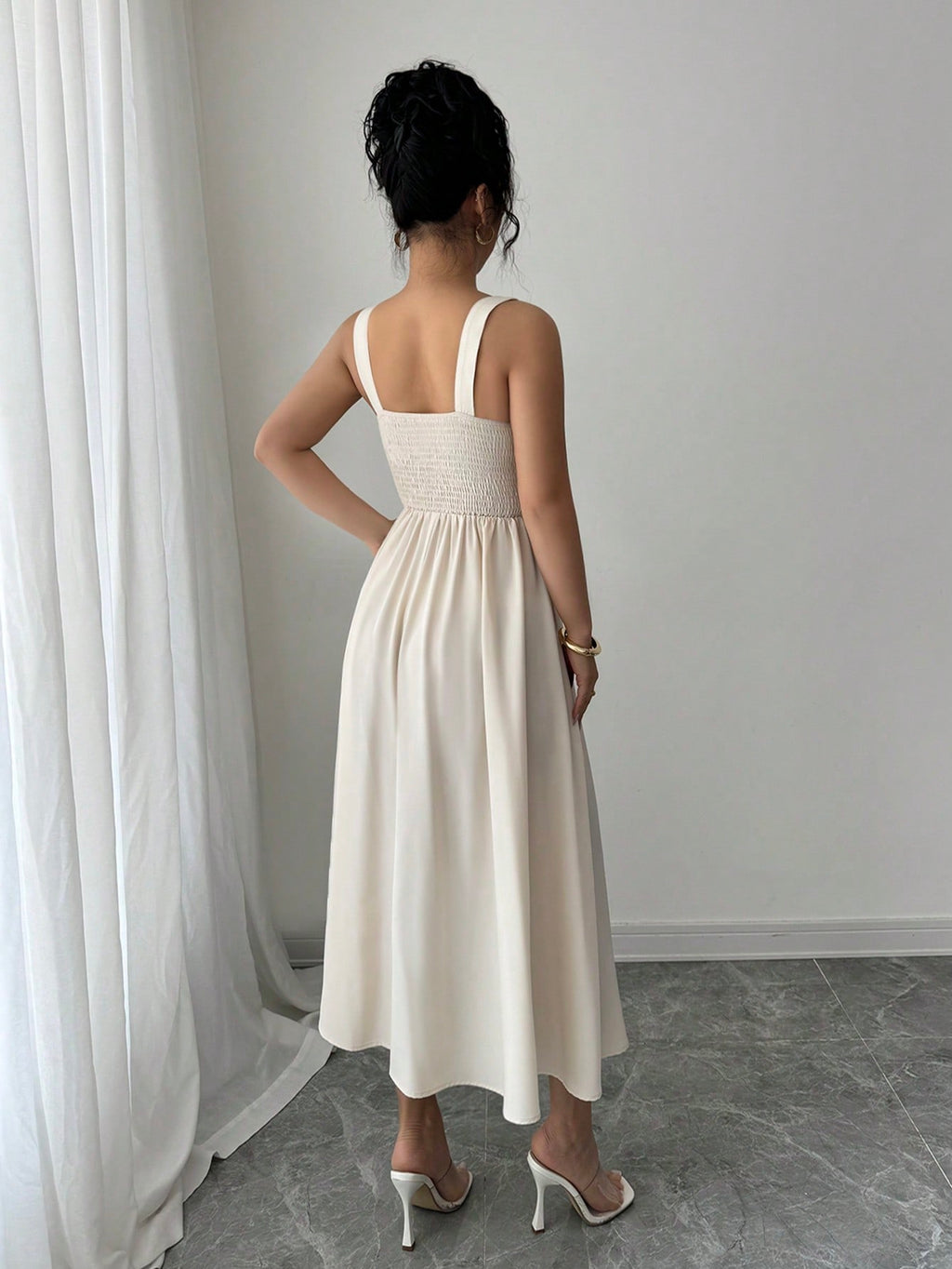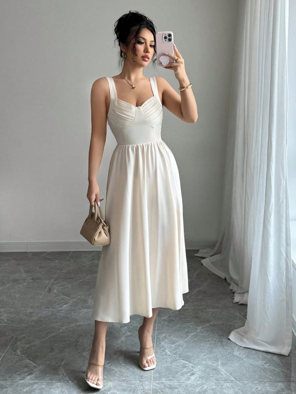 BELLAVOG Ženska jednobojna haljina A-kroja s elastičnim strukom, proširena, ležerna/radna, slip haljina