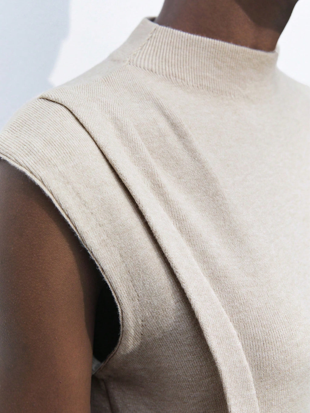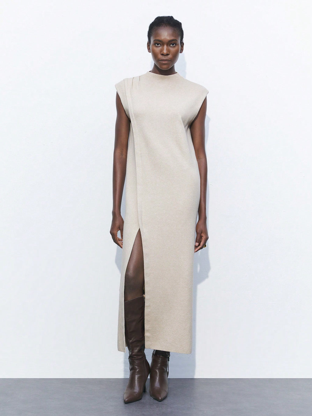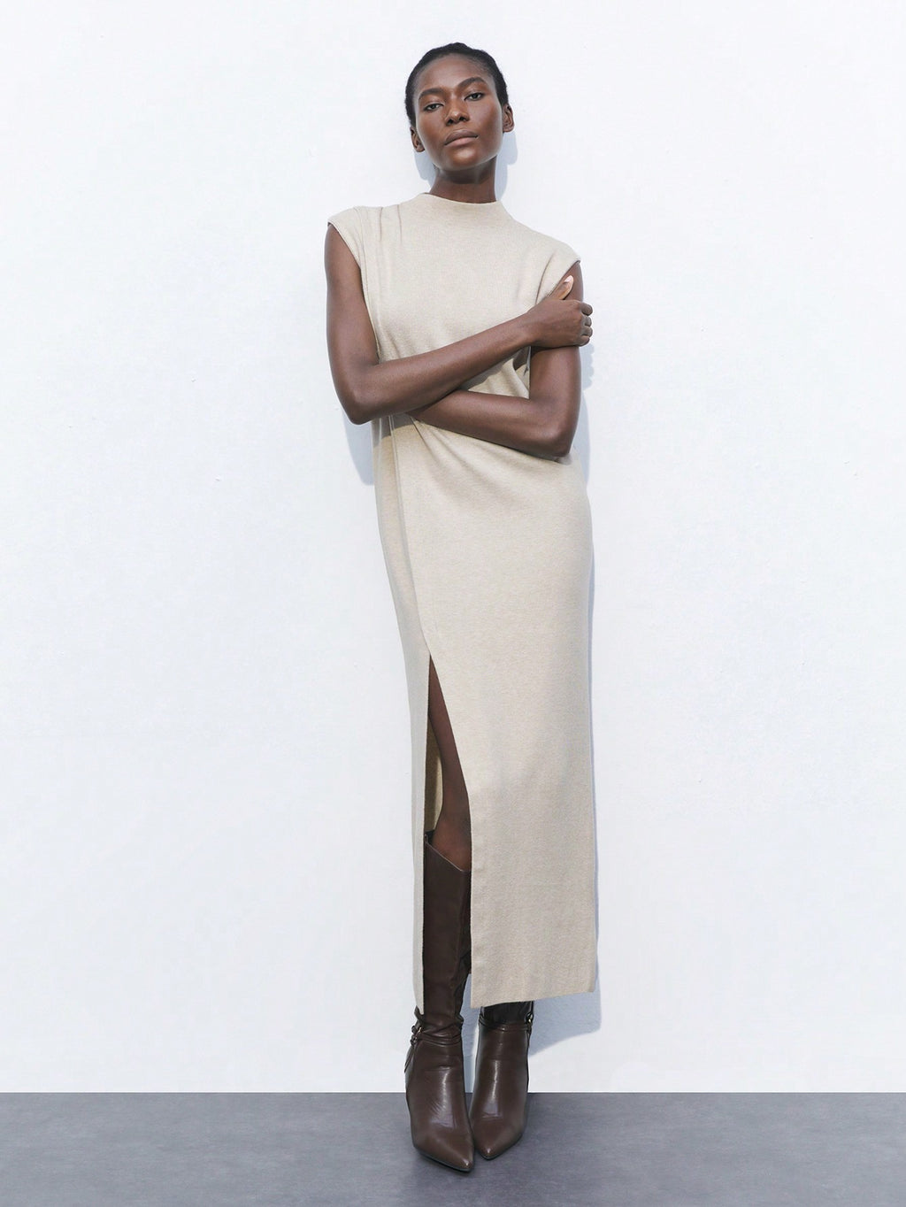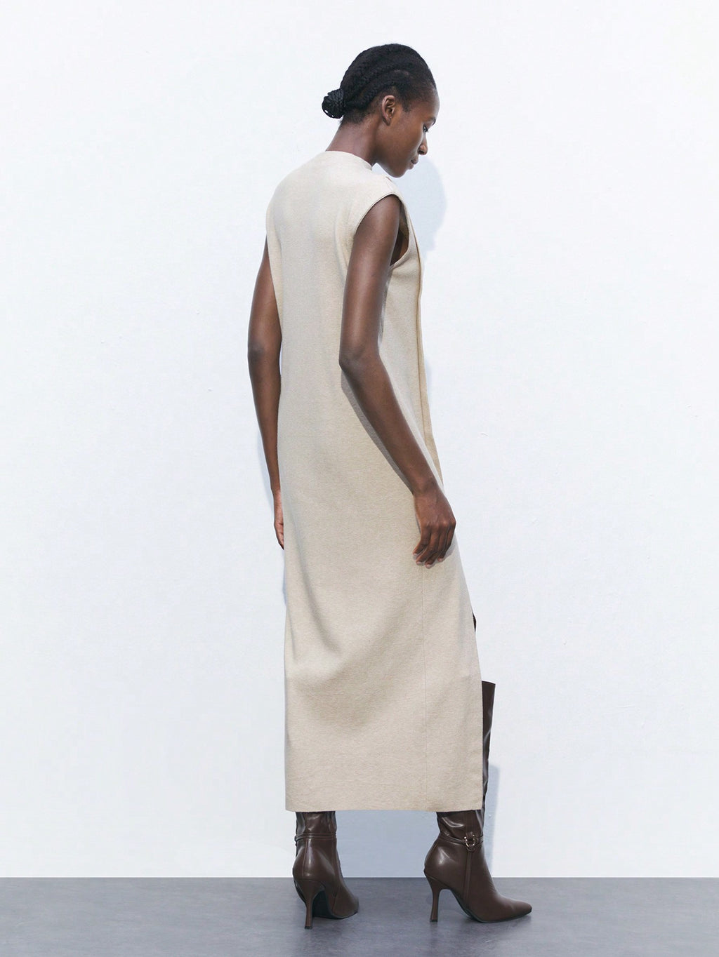 BELLAVOG Women's Solid Color Mandarin Collar Sleeveless Split Hem Casual Knit Dress, Elegant Ladies Dress Suitable For St. Patrick's Day, Easter, Spring Festival, Music Festival