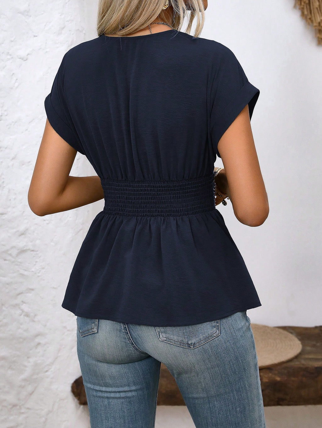 BELLAVOG Ženska jednobojna jednostavna svakodnevna košulja s V-izrezom i kratkim rukavima, peplum top