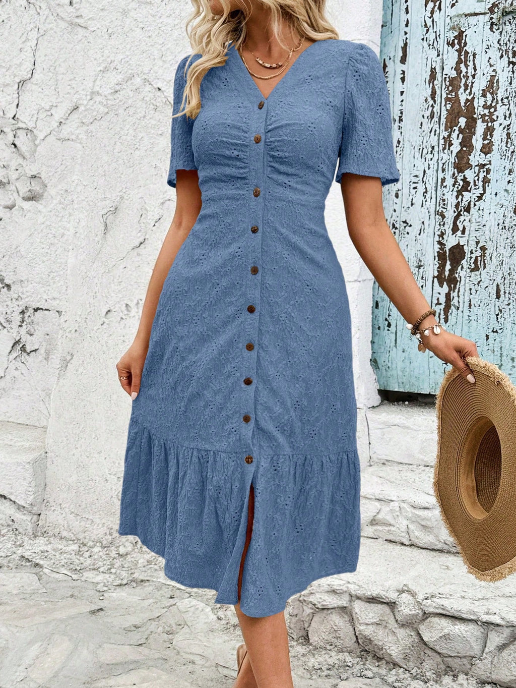 BELLAVOG Ženska jednobojna jednostavna svakodnevna haljina kratkih rukava, maksi ženska odjevna kombinacija