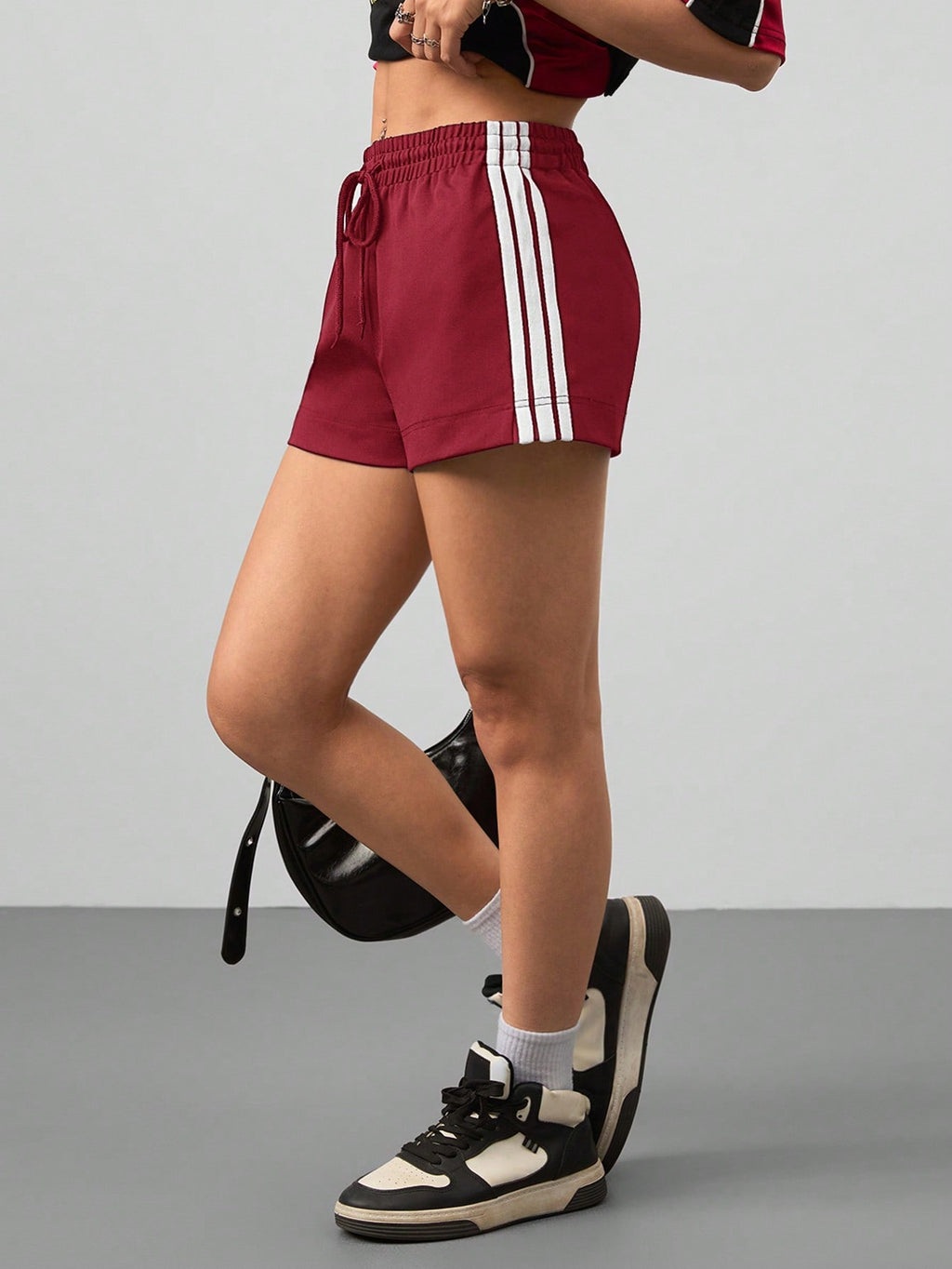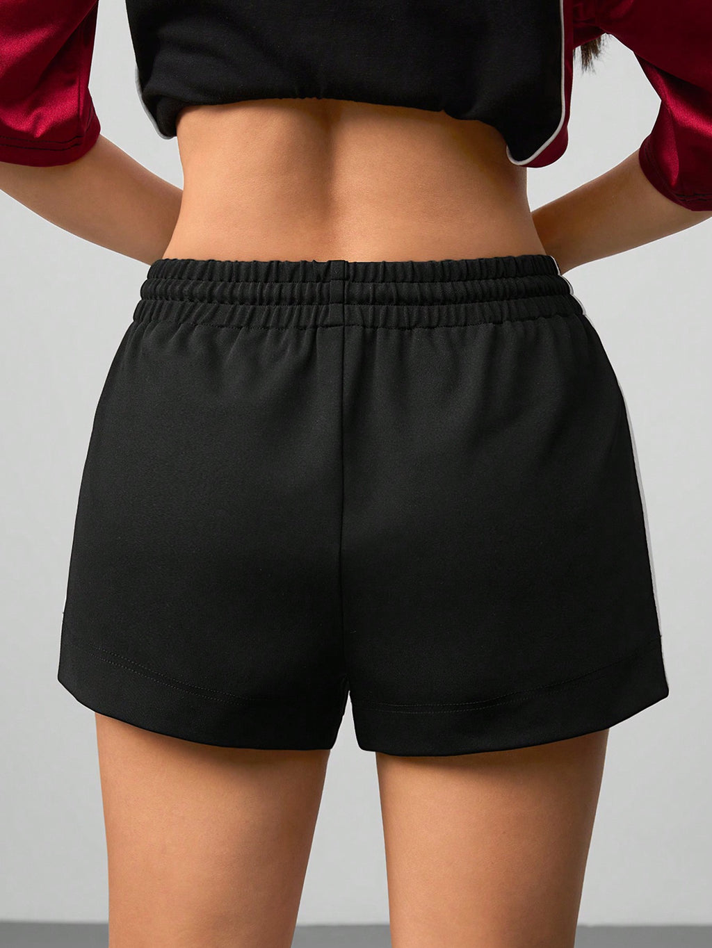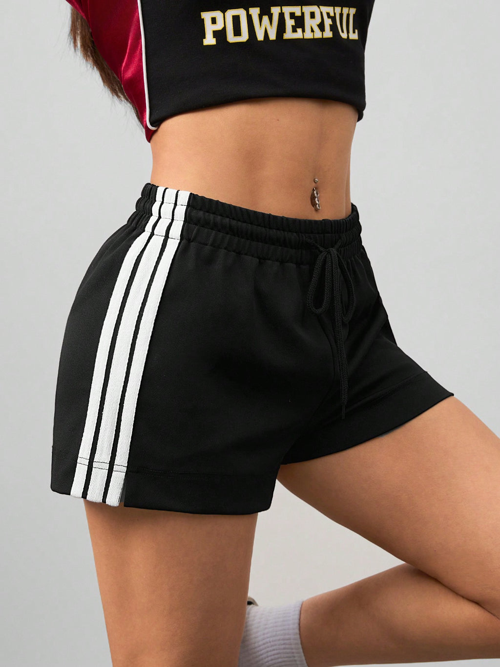 BELLAVOG Ženske proljetno/ljetne sportske kratke hlače s blokovskim prugama, tkane i crne boje