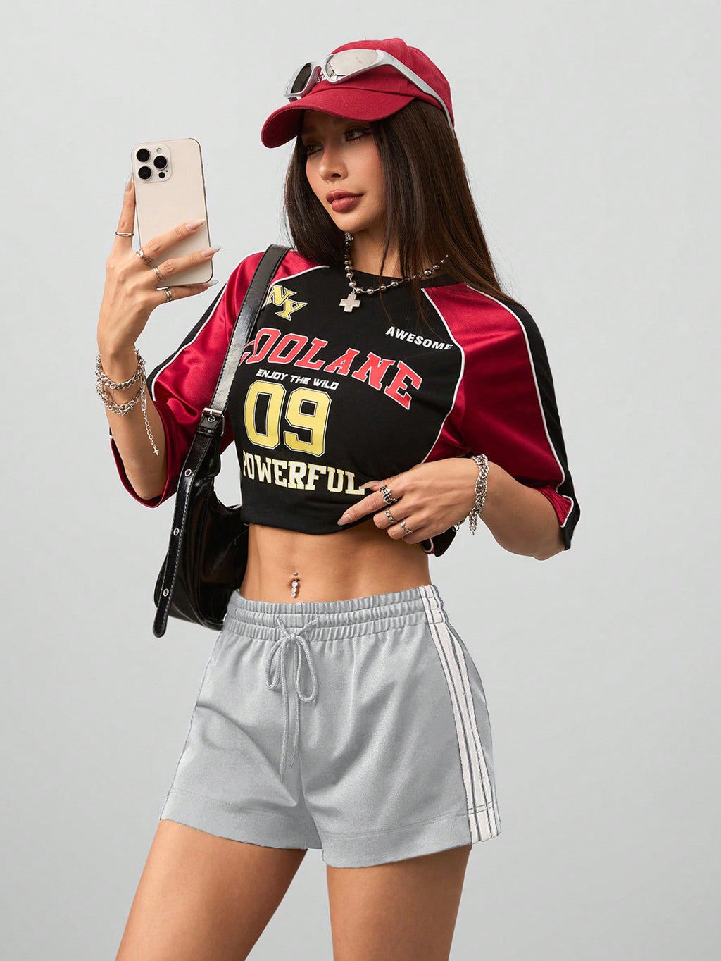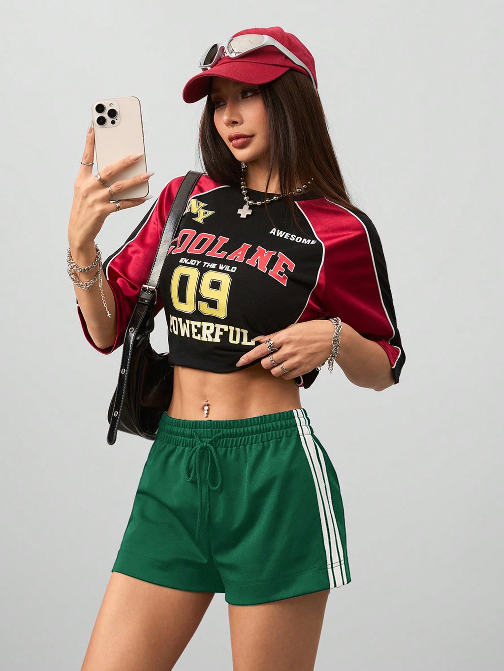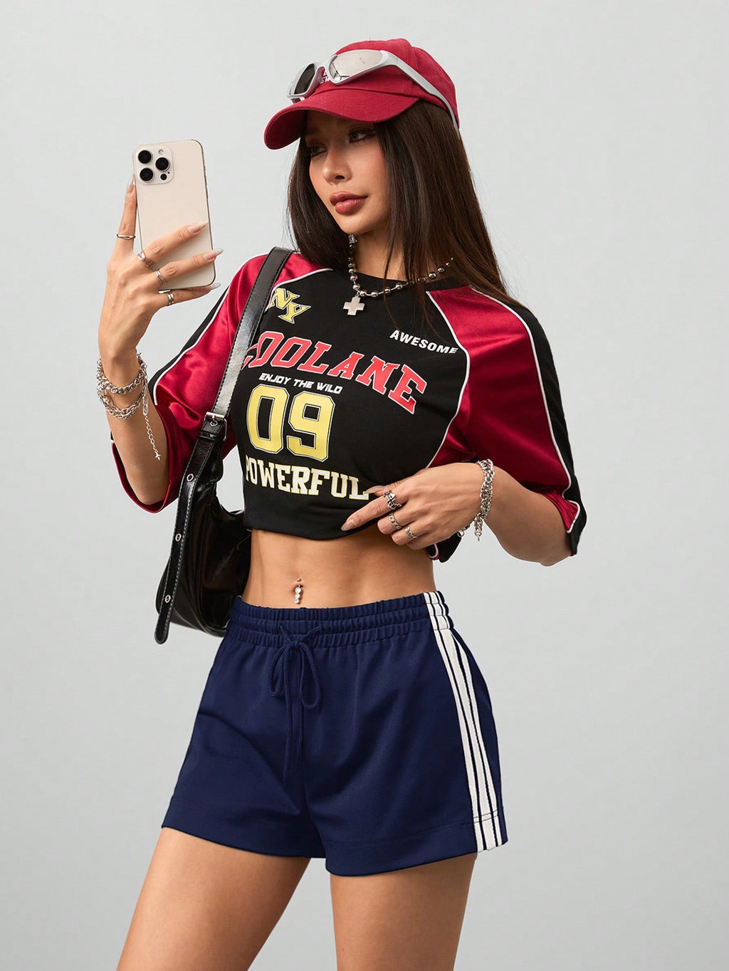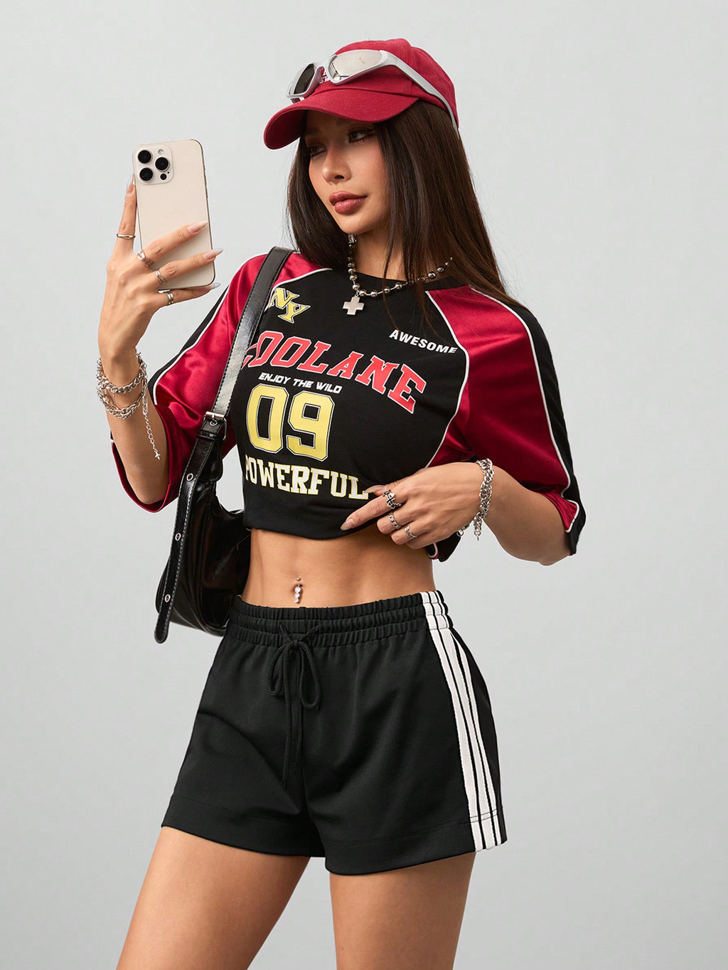 BELLAVOG Ženske proljetno/ljetne sportske kratke hlače s blokovskim prugama, tkane i crne boje