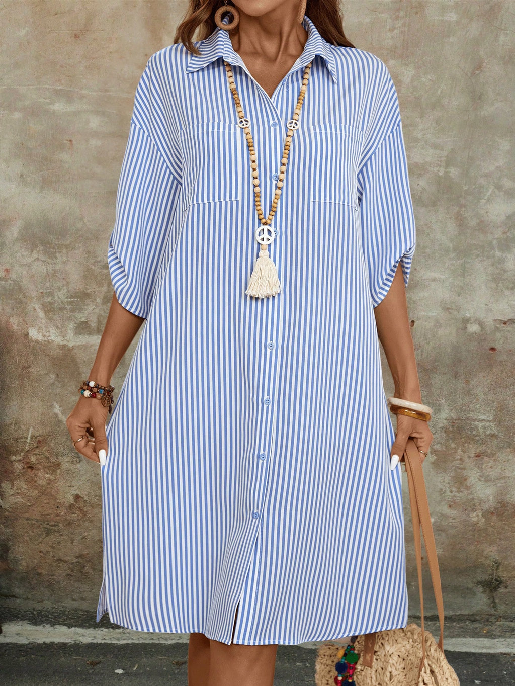 MIU AZRA Ženska Casual Prugasta Košulja sa Dugmadima