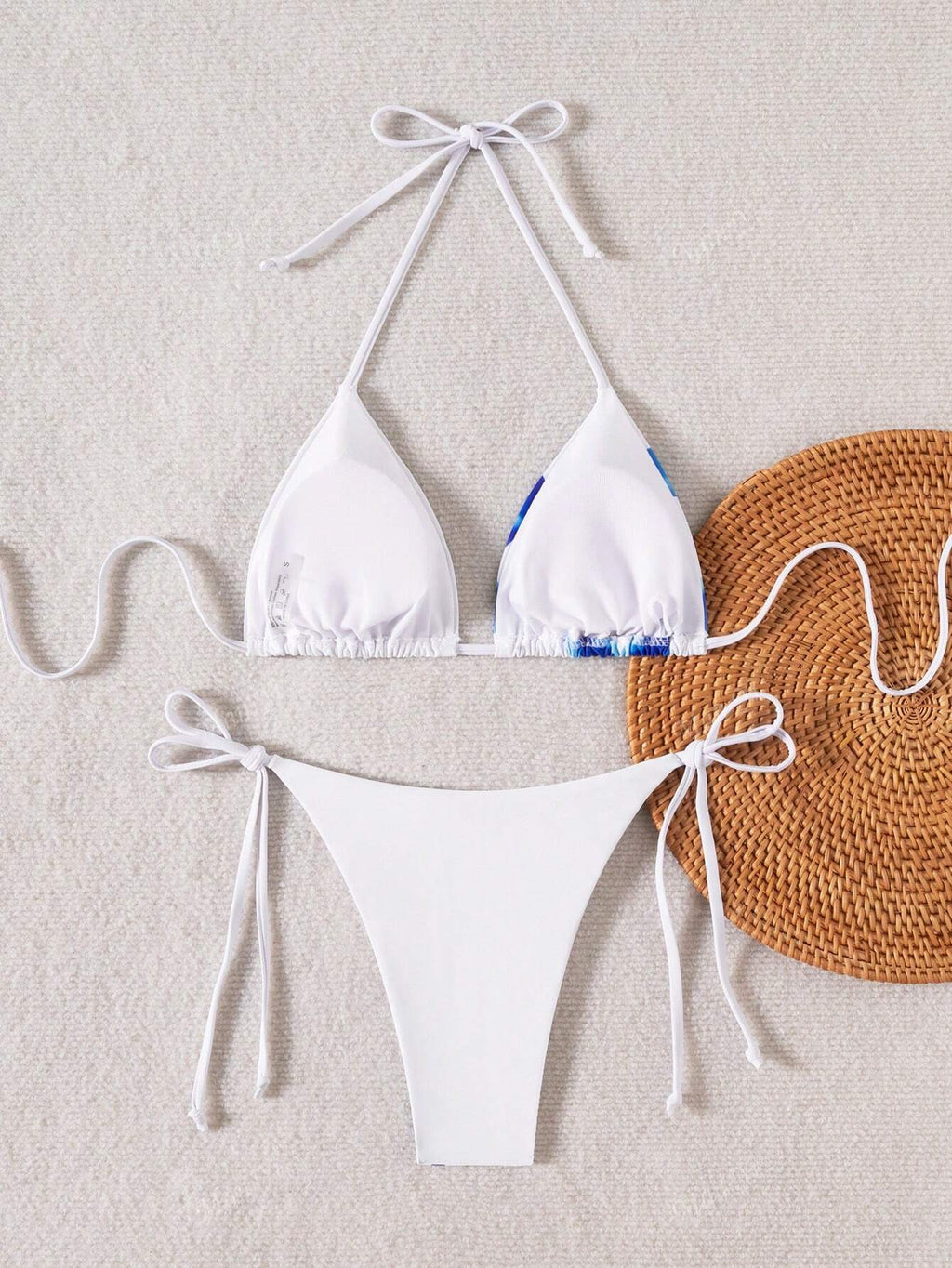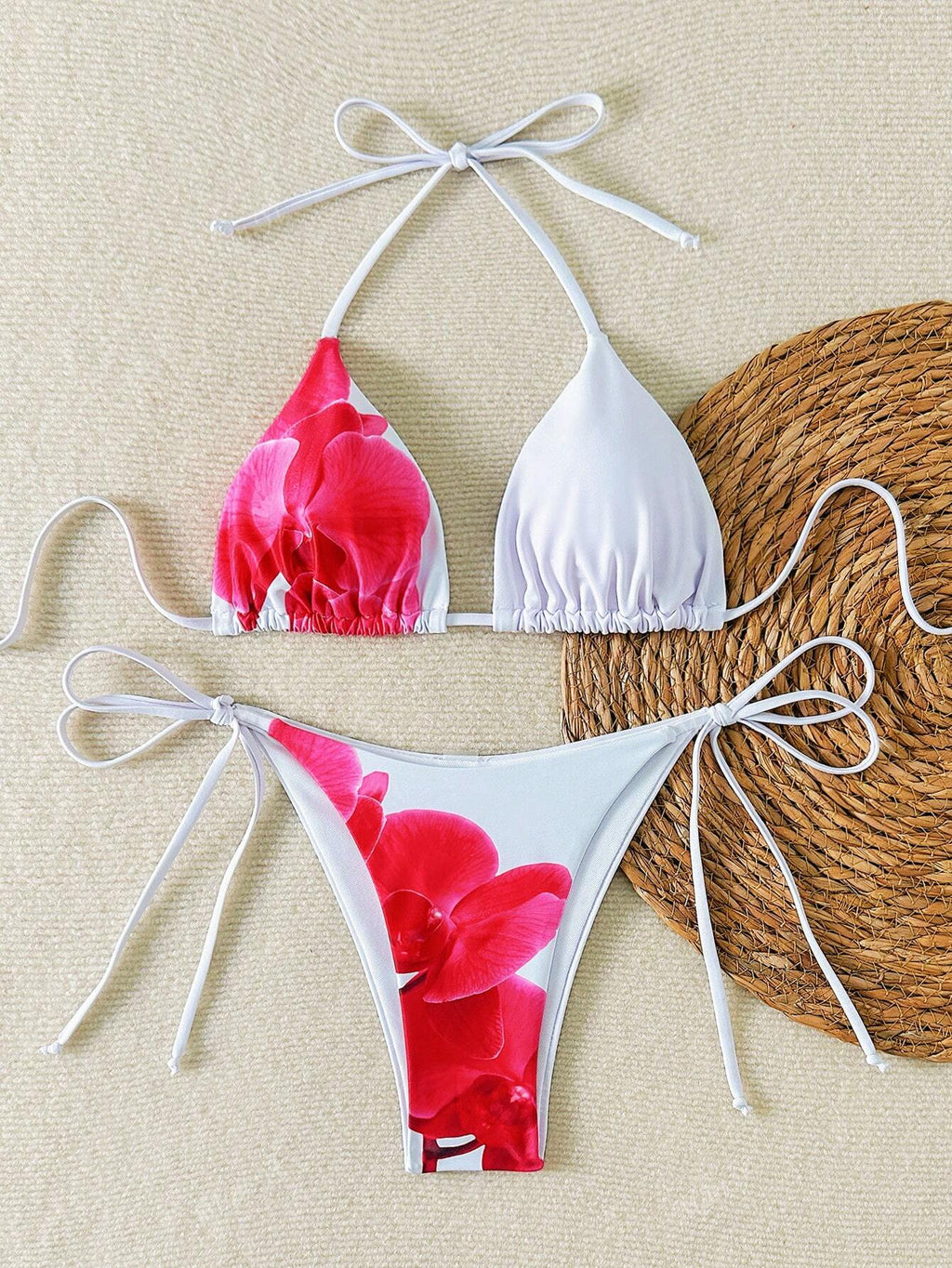 Ženski ljetni bikini set s cvjetnim printom BELLAVOG, gornji dio s trokutastim vezanjem i donji dio s trokutastim vezanjem sa strane
