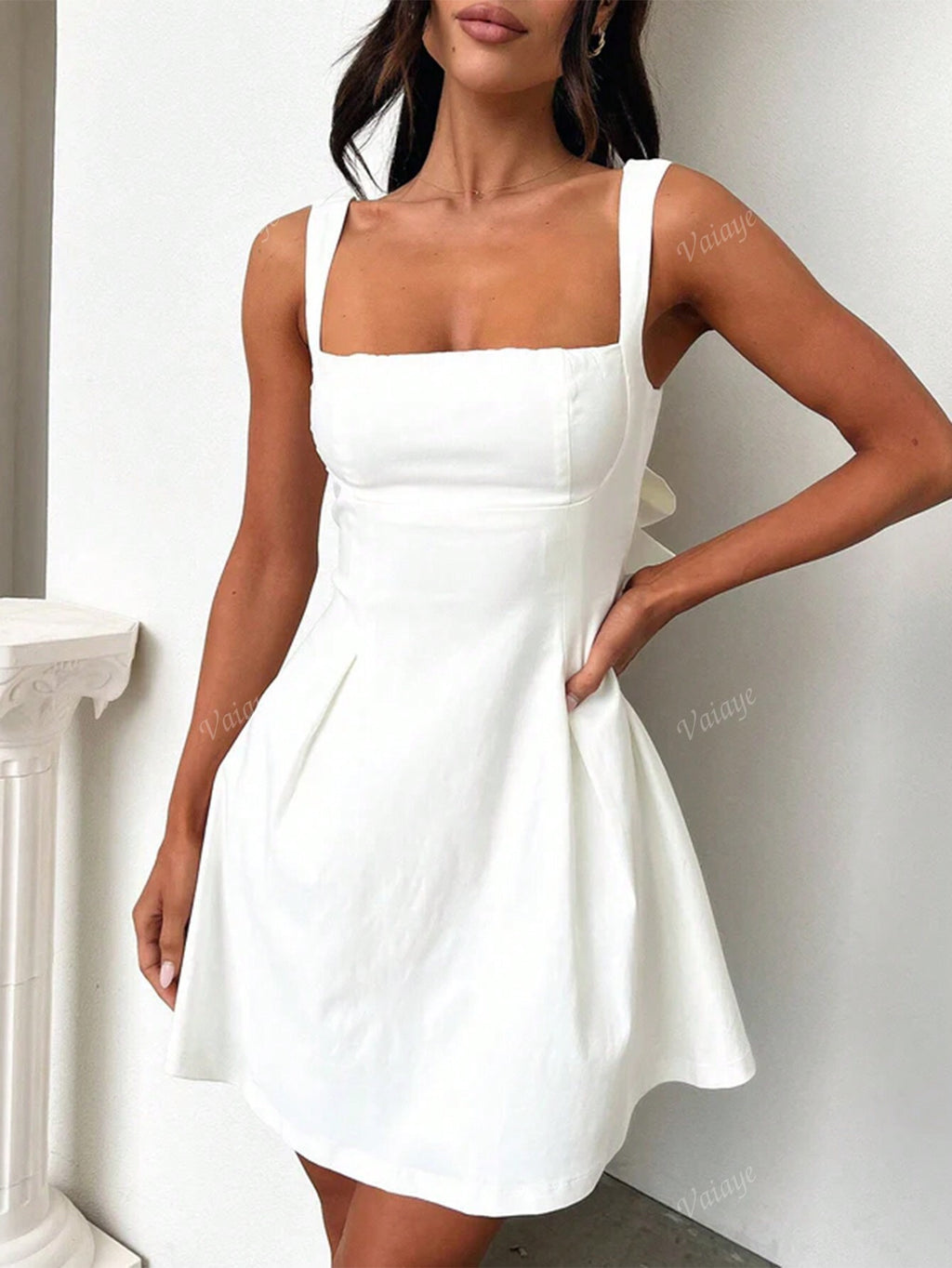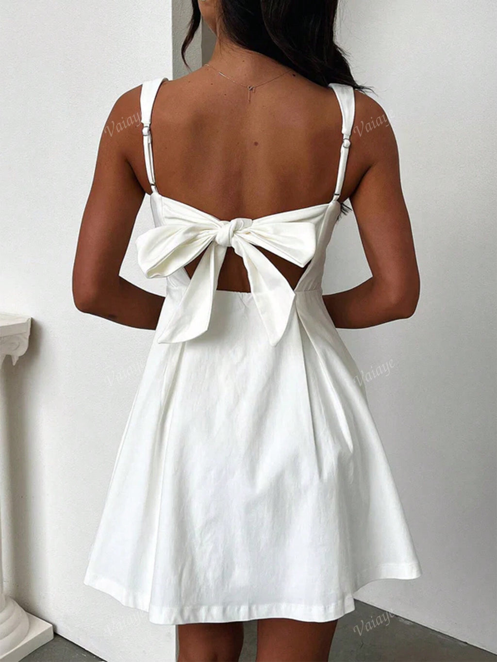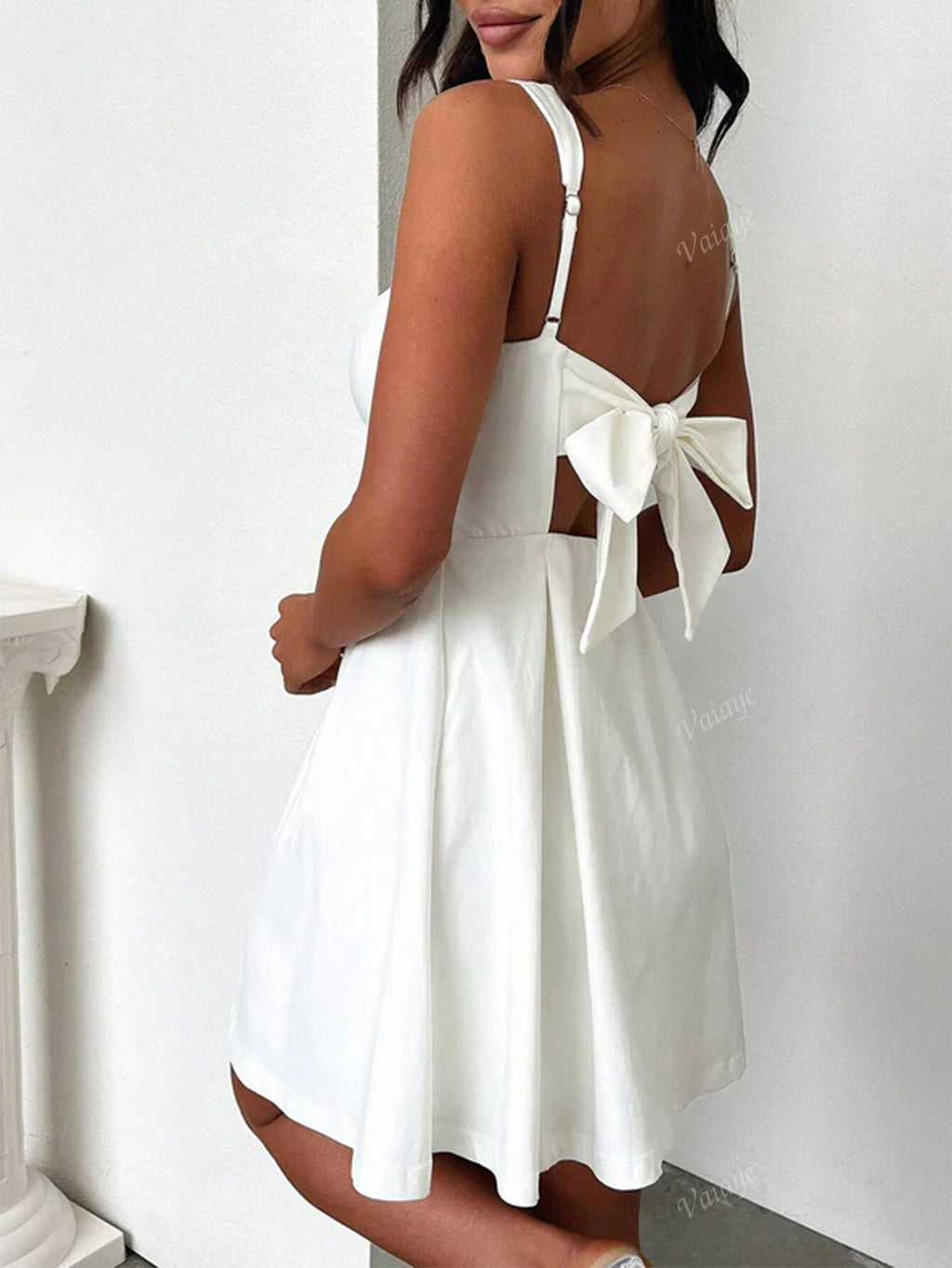 BELLAVOG Ženska ljetna haljina za maturu, kvadratni izrez, luksuzna elegantna haljina s mašnom, otvorenih leđa, za odmor, u jednoj boji