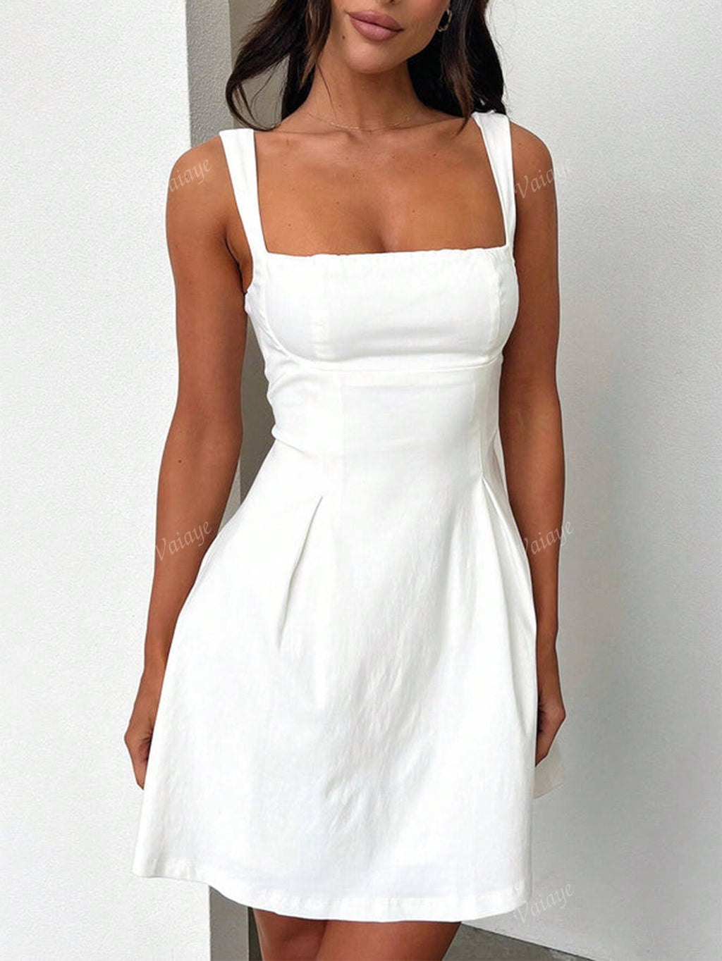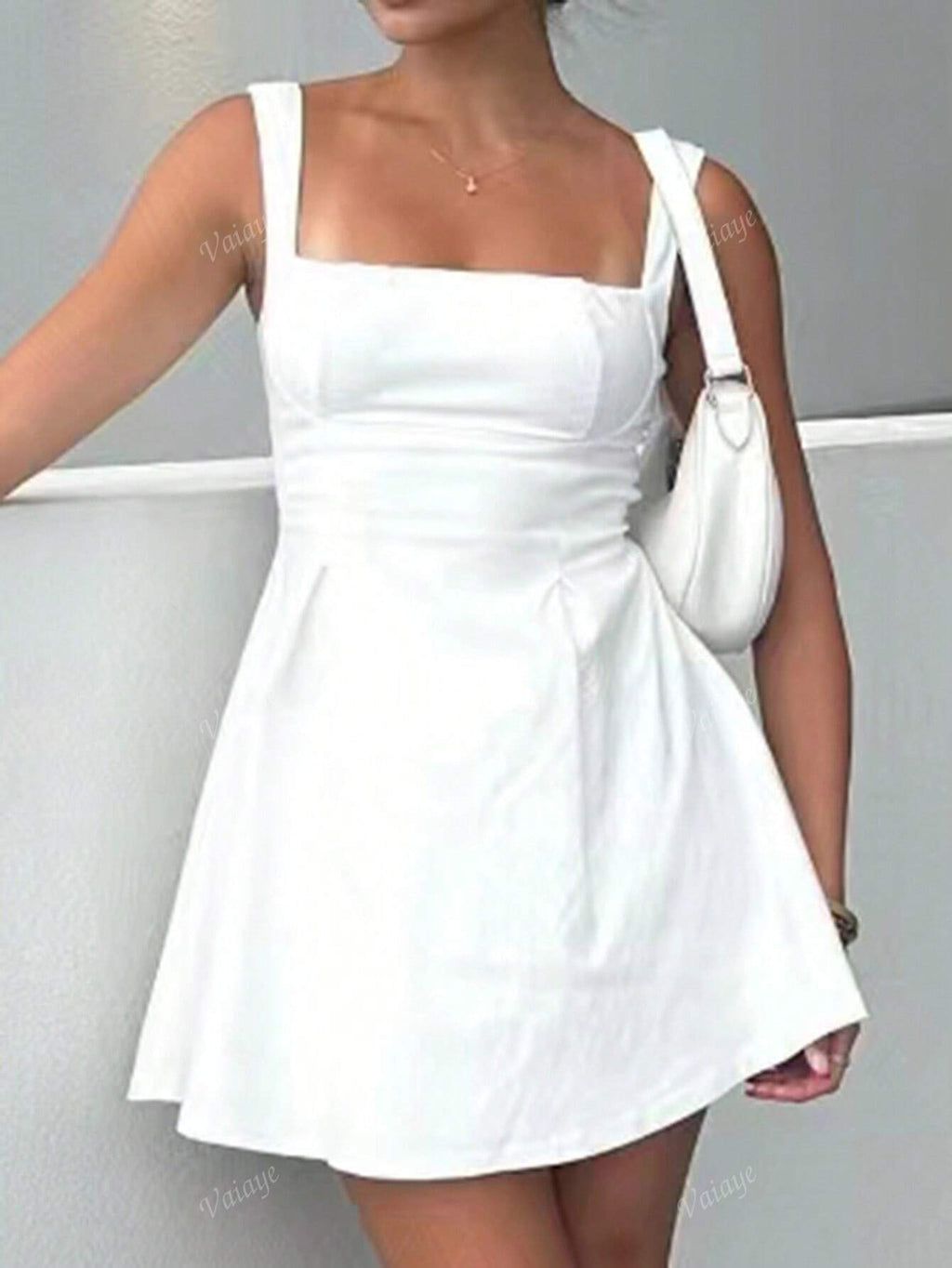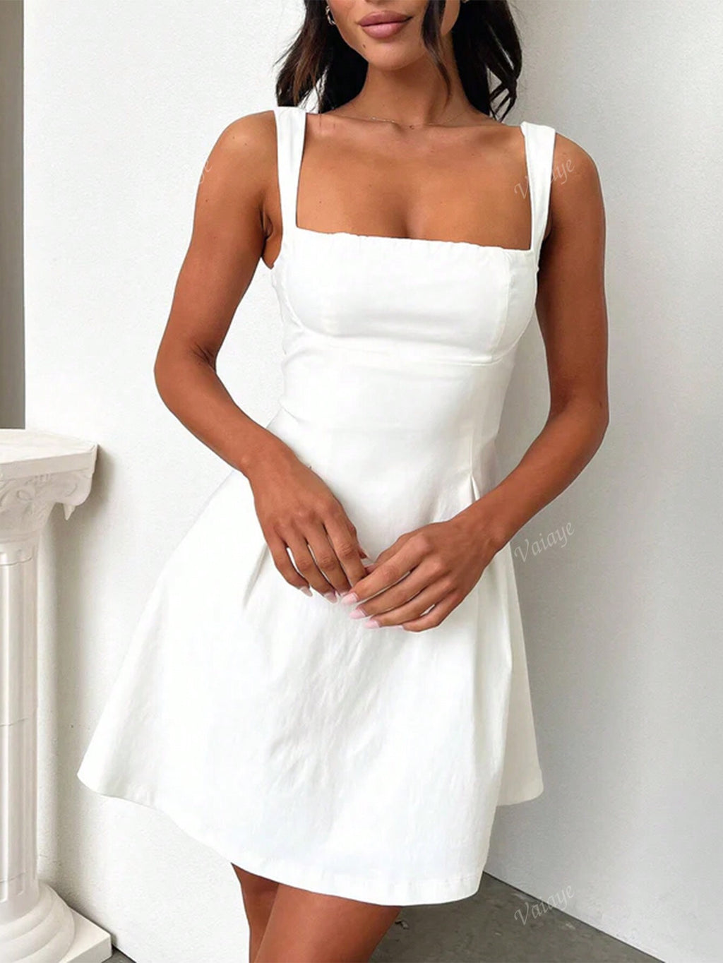 BELLAVOG Ženska ljetna haljina za maturu, kvadratni izrez, luksuzna elegantna haljina s mašnom, otvorenih leđa, za odmor, u jednoj boji