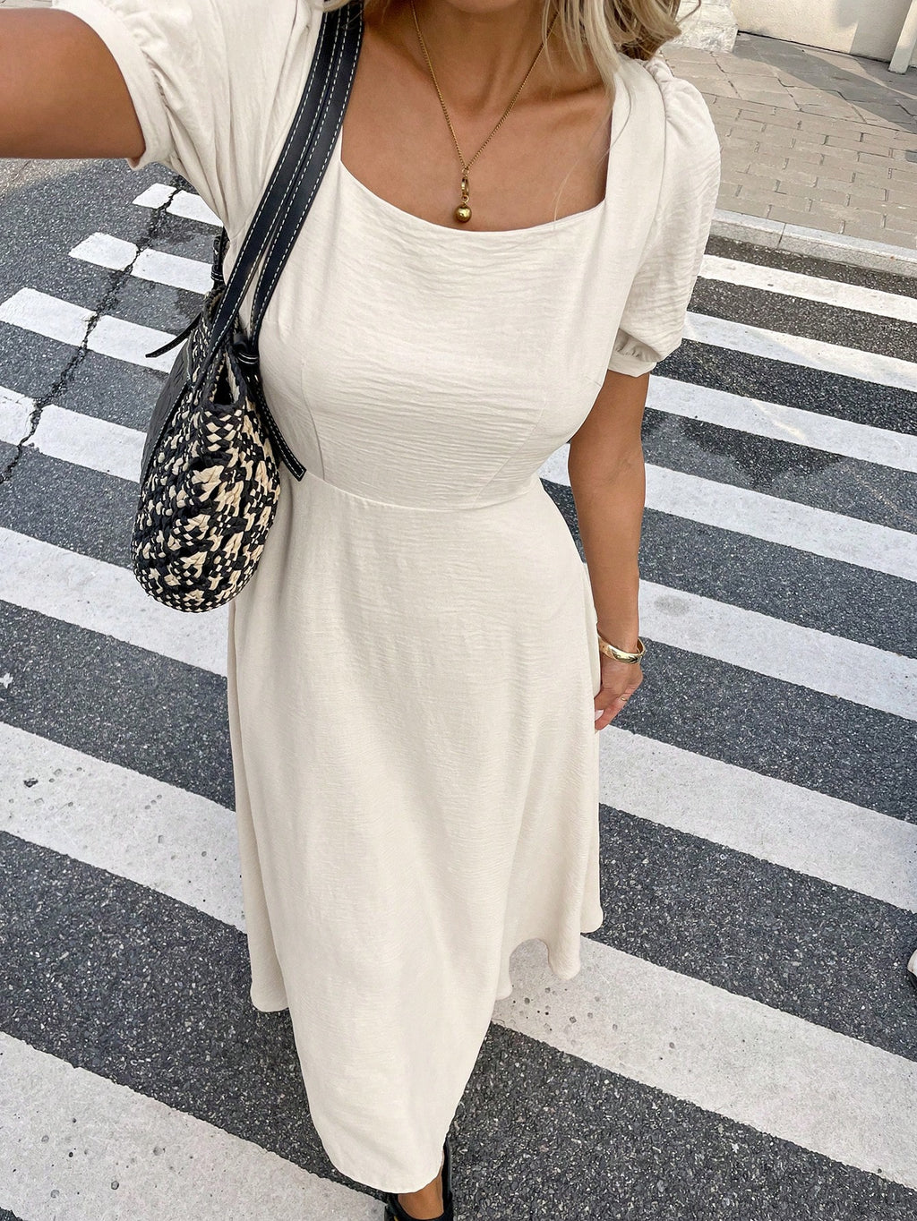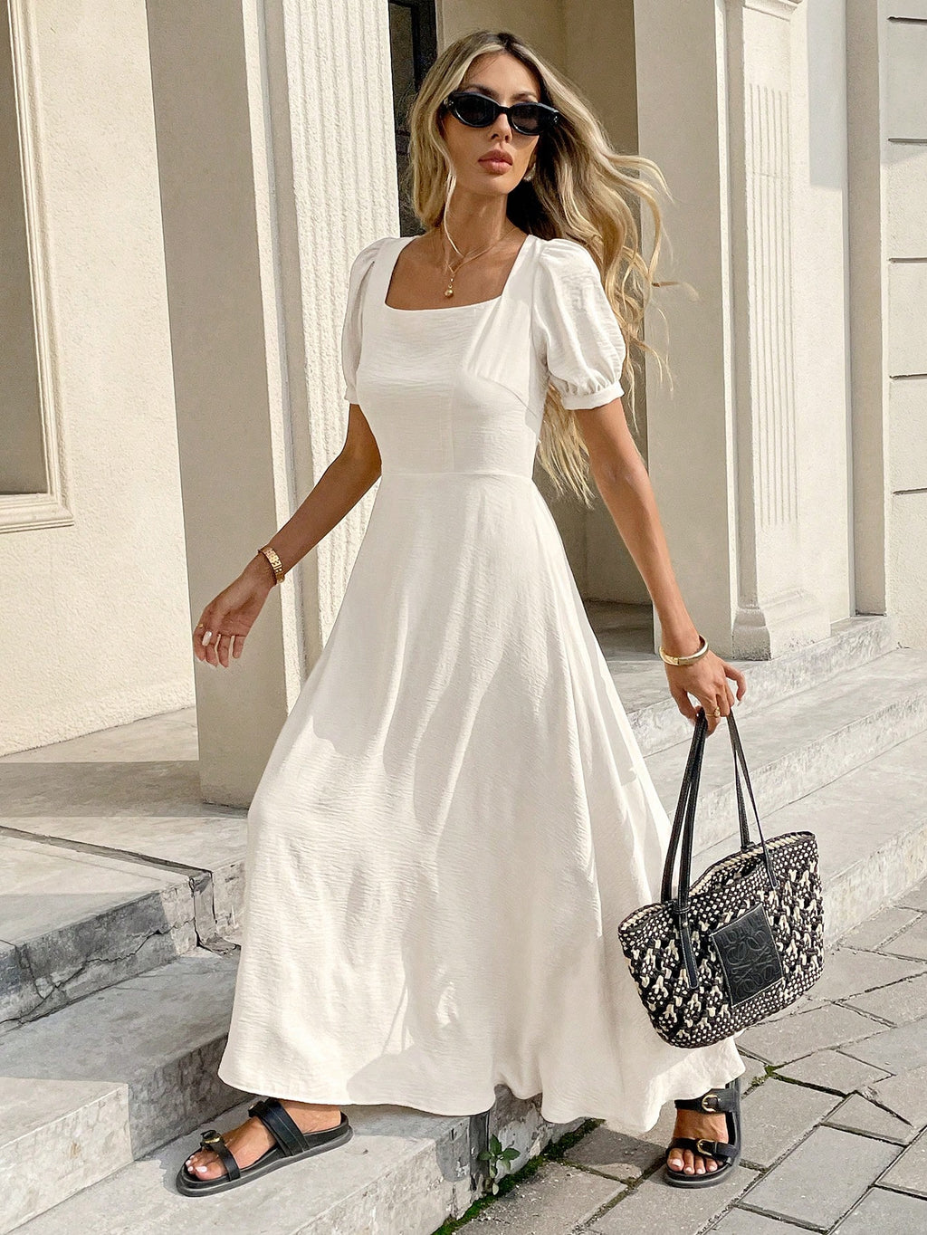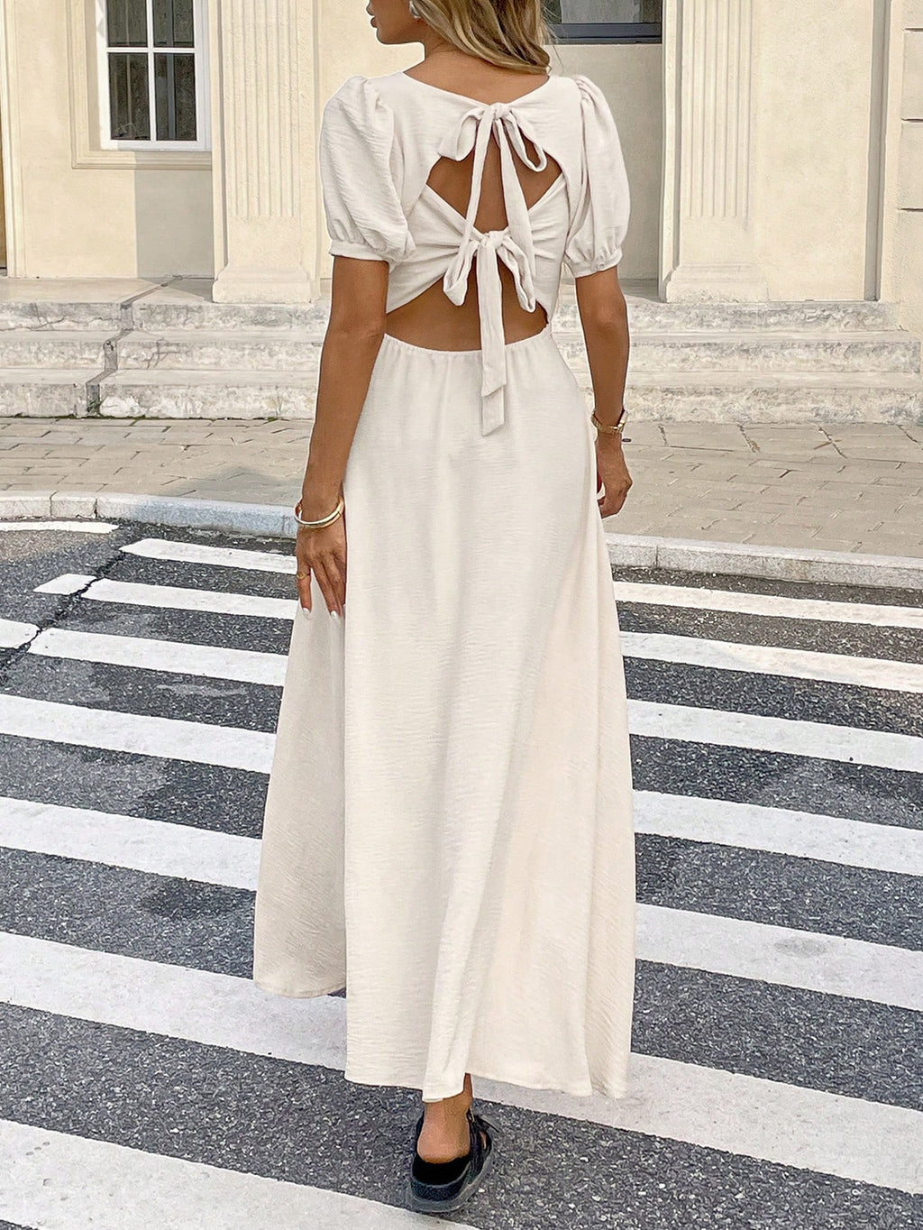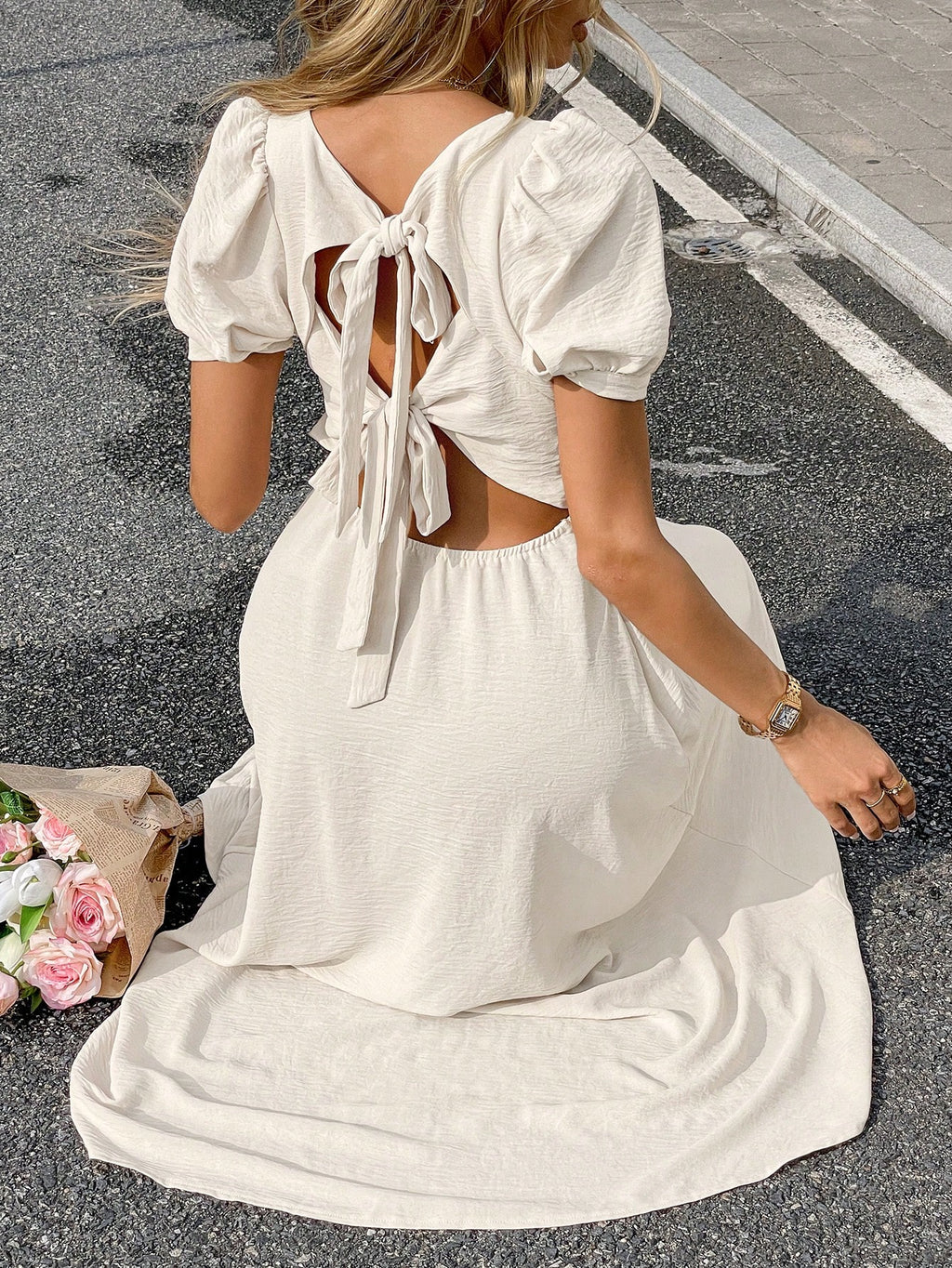 BELLAVOG Women's Summer Square Neck Backless Tie Long Dress