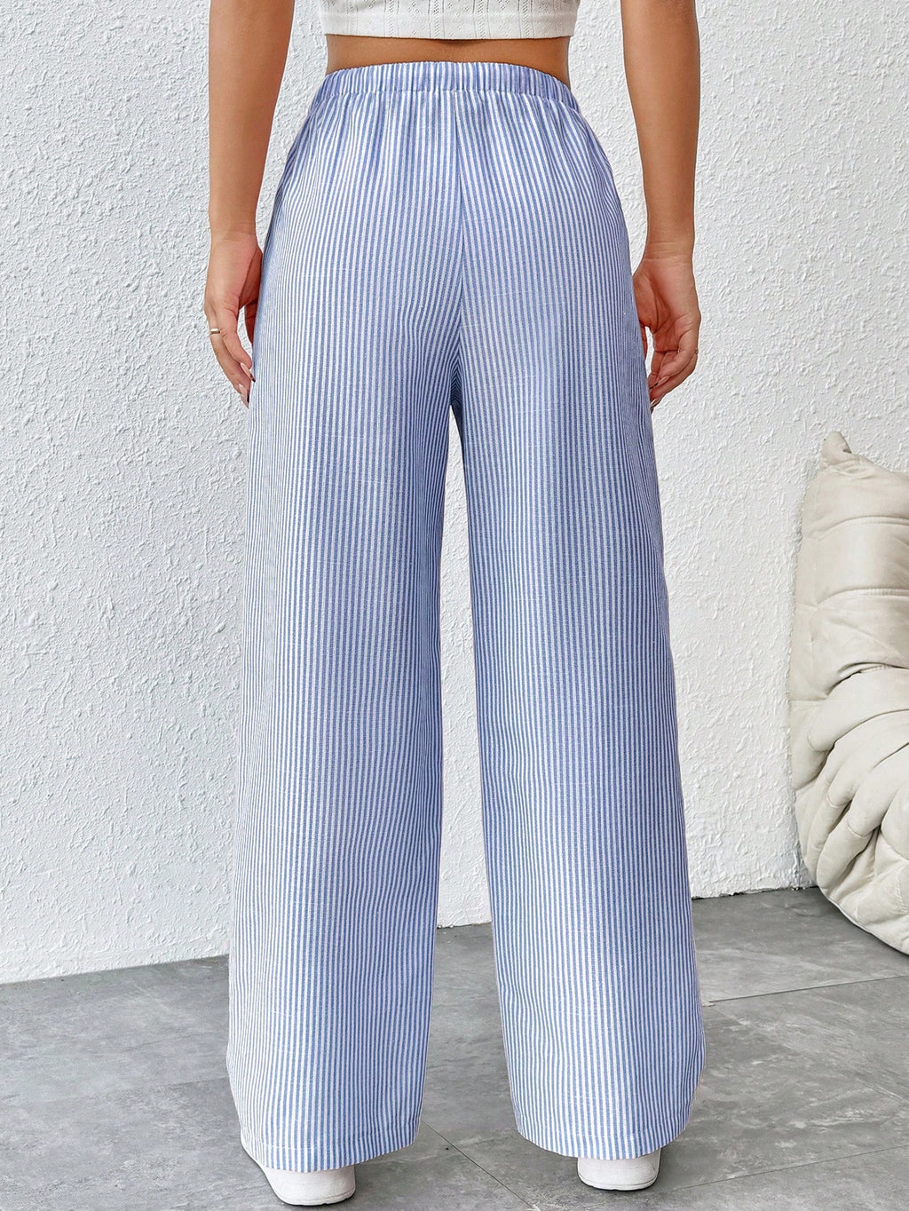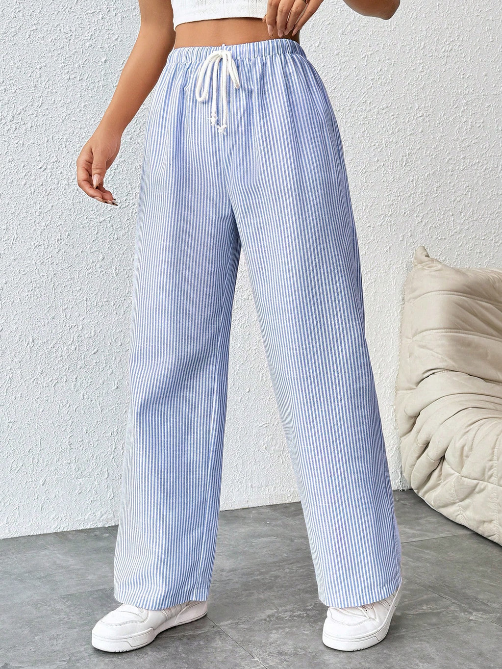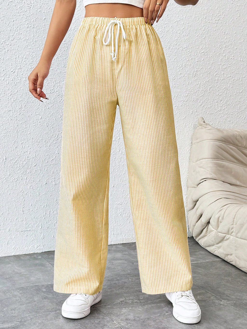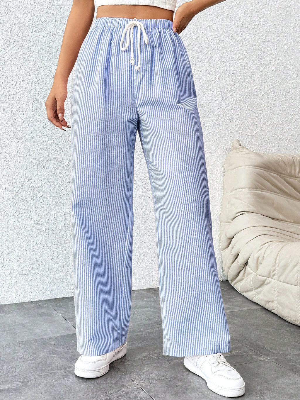 BELLAVOG Ženske ravne hlače s prugastim strukom i vezivanjem