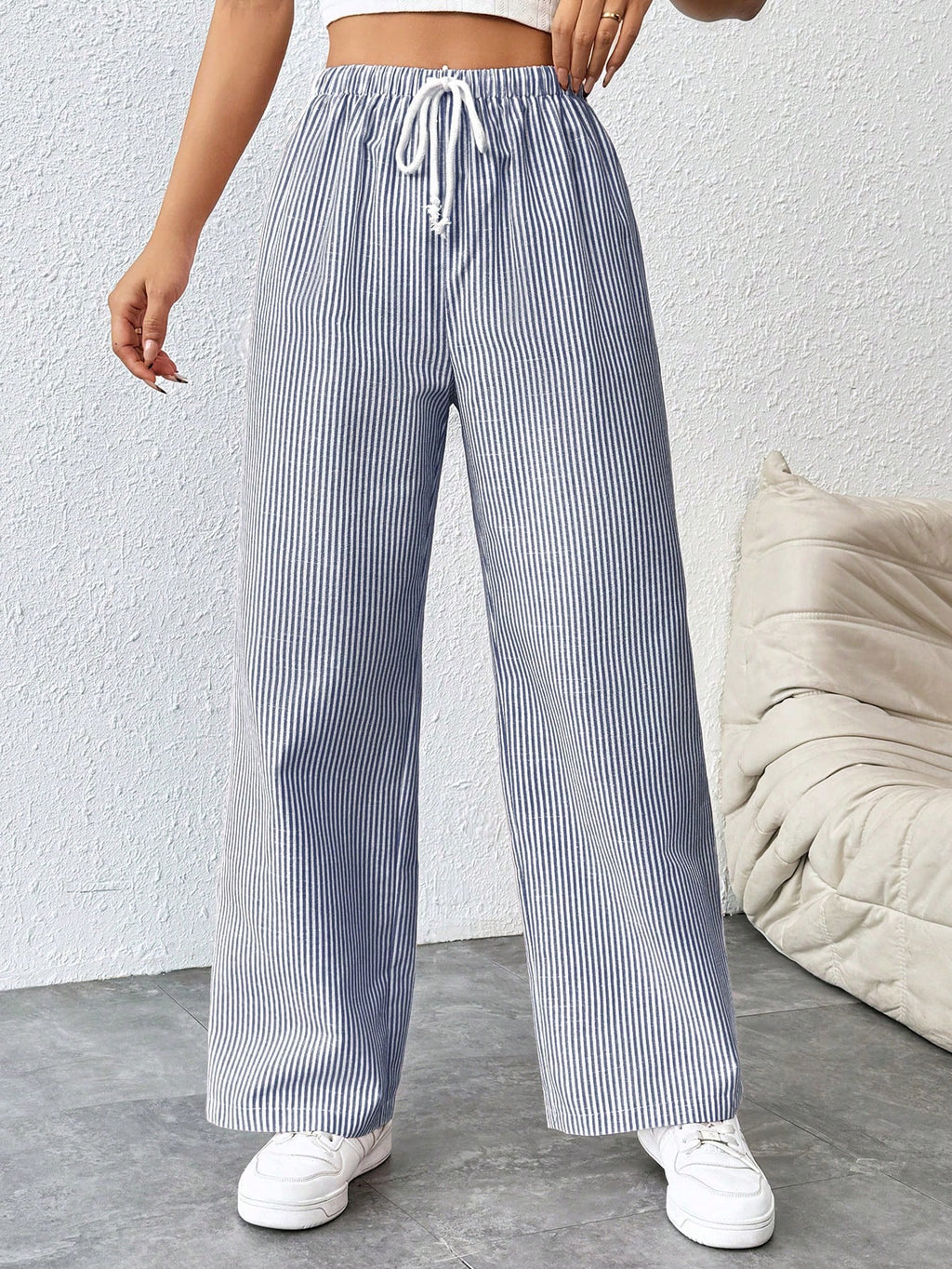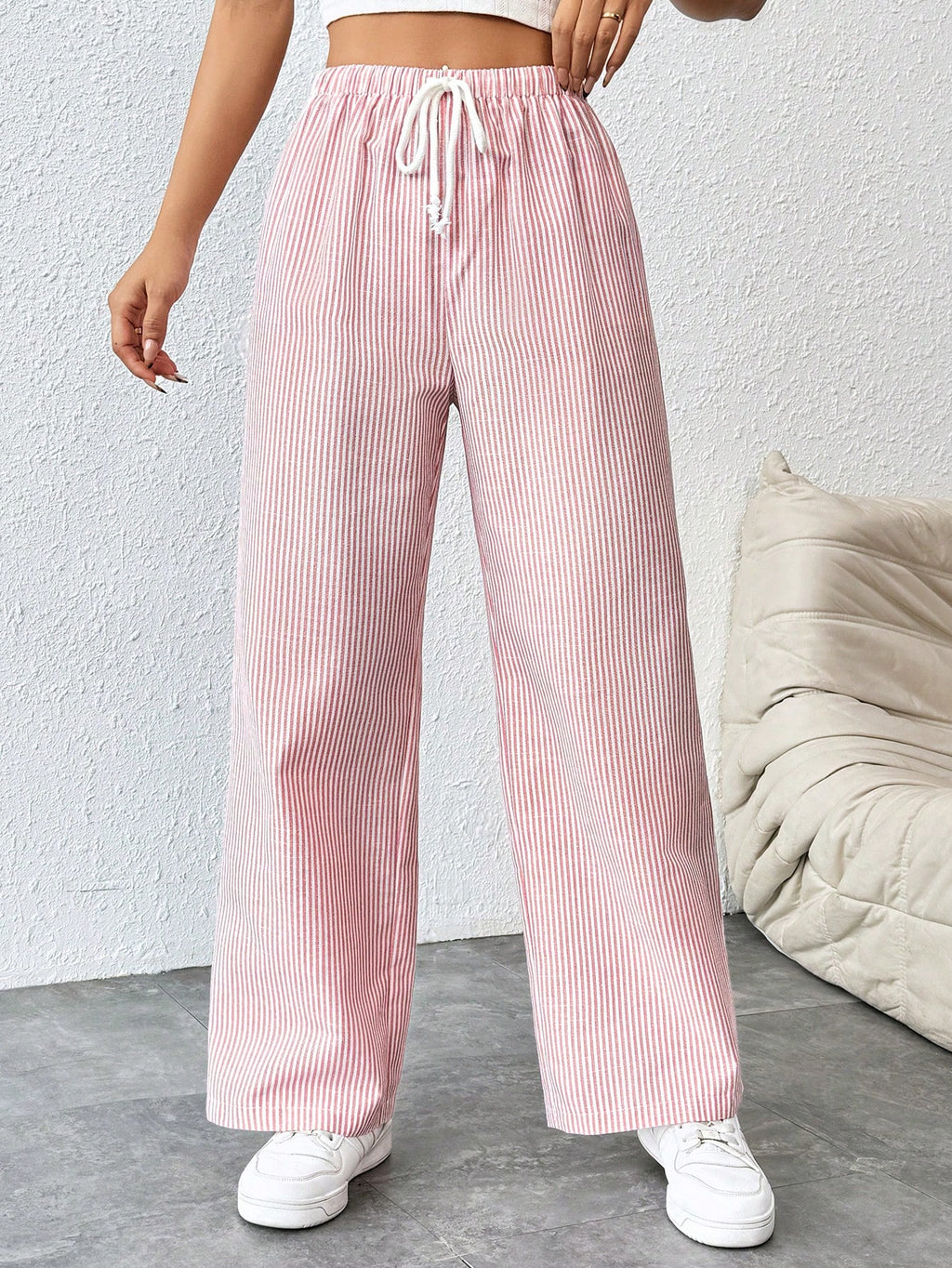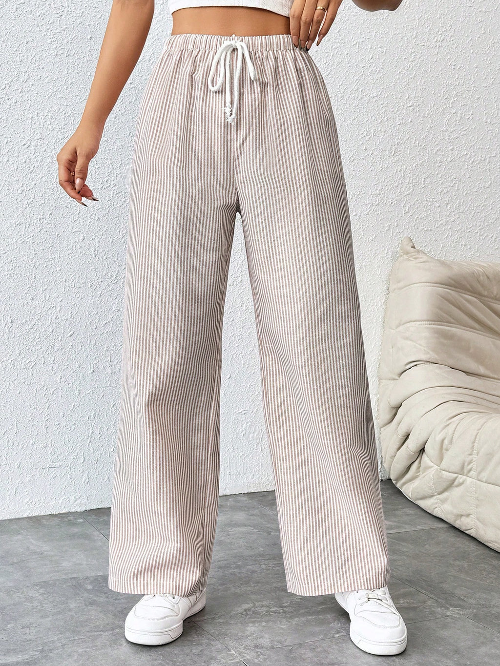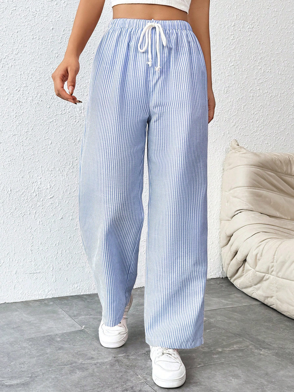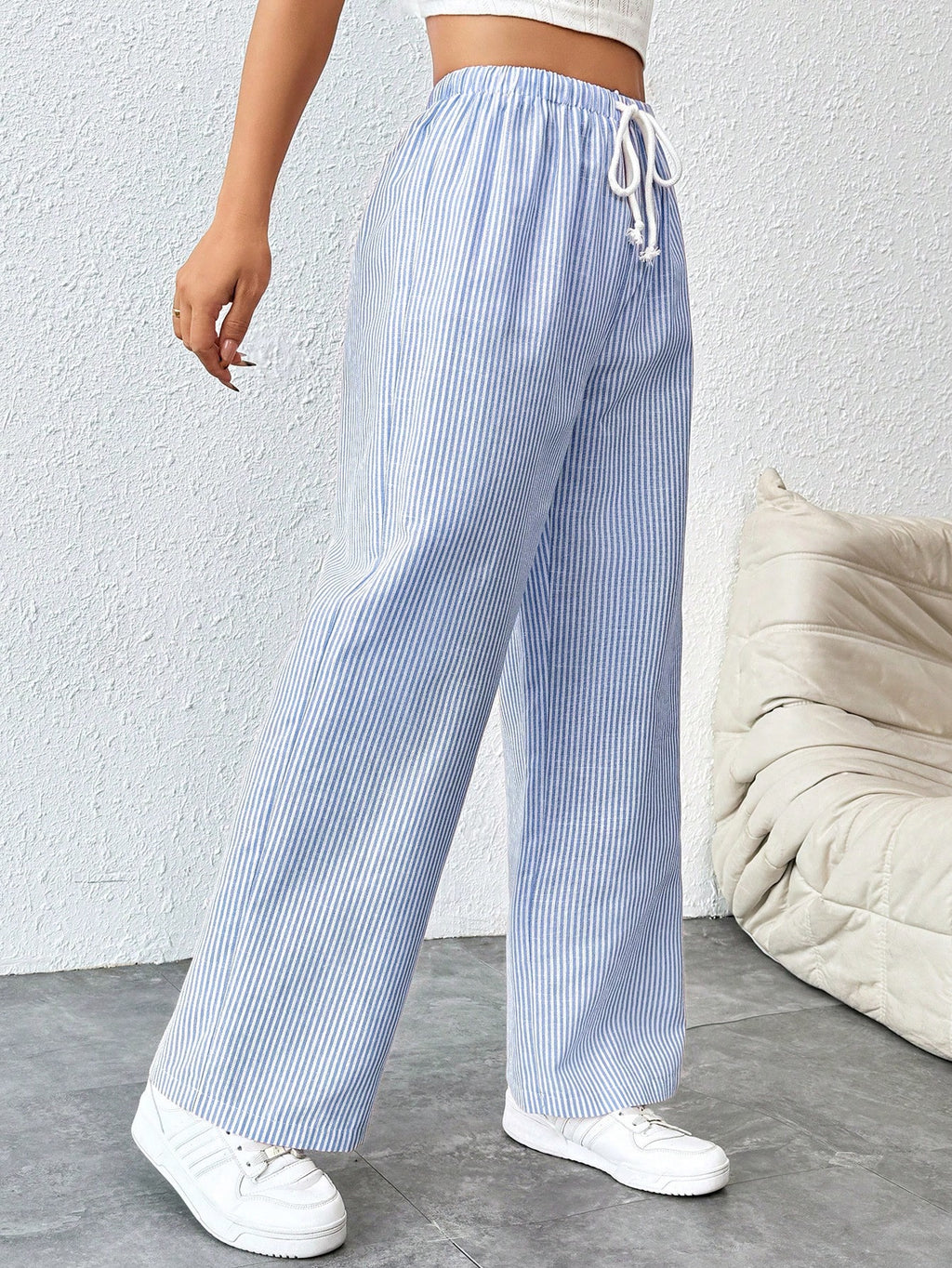 BELLAVOG Ženske ravne hlače s prugastim strukom i vezivanjem