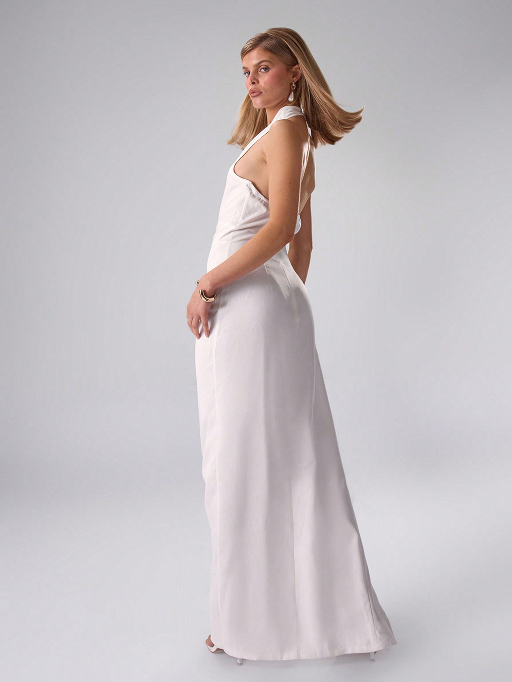BELLAVOG Woven Draped Asymmetric Maxi Dress Elegant Spring Summer Vacation Party