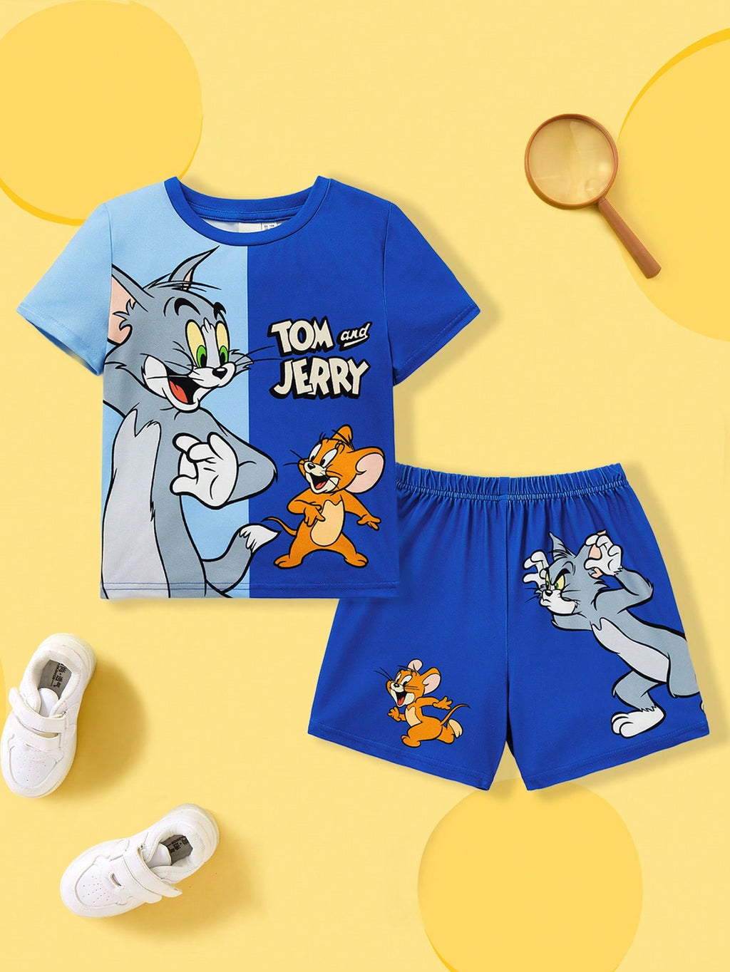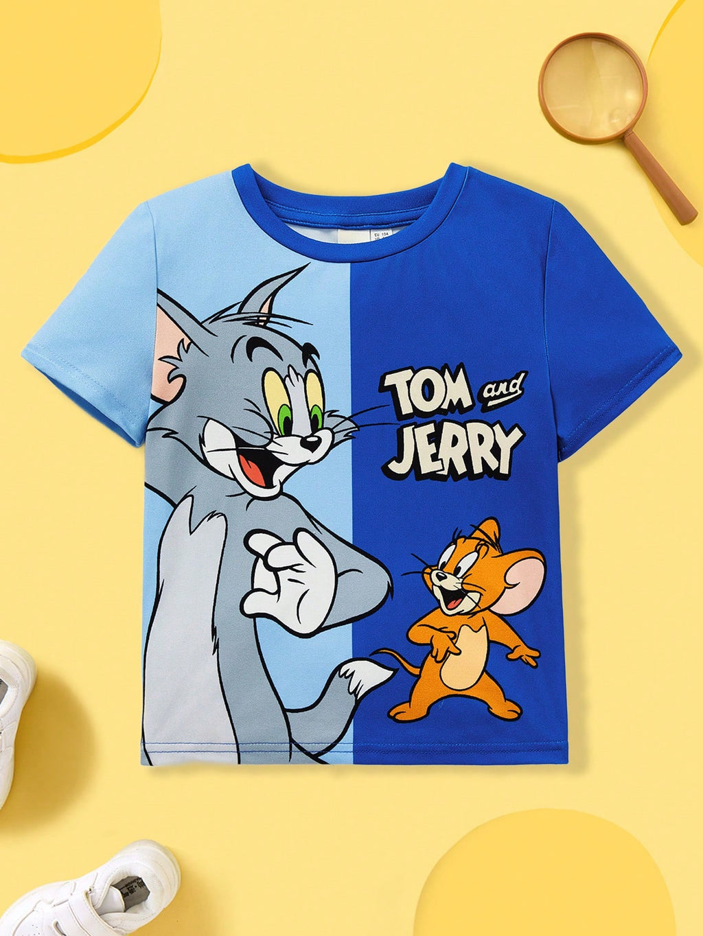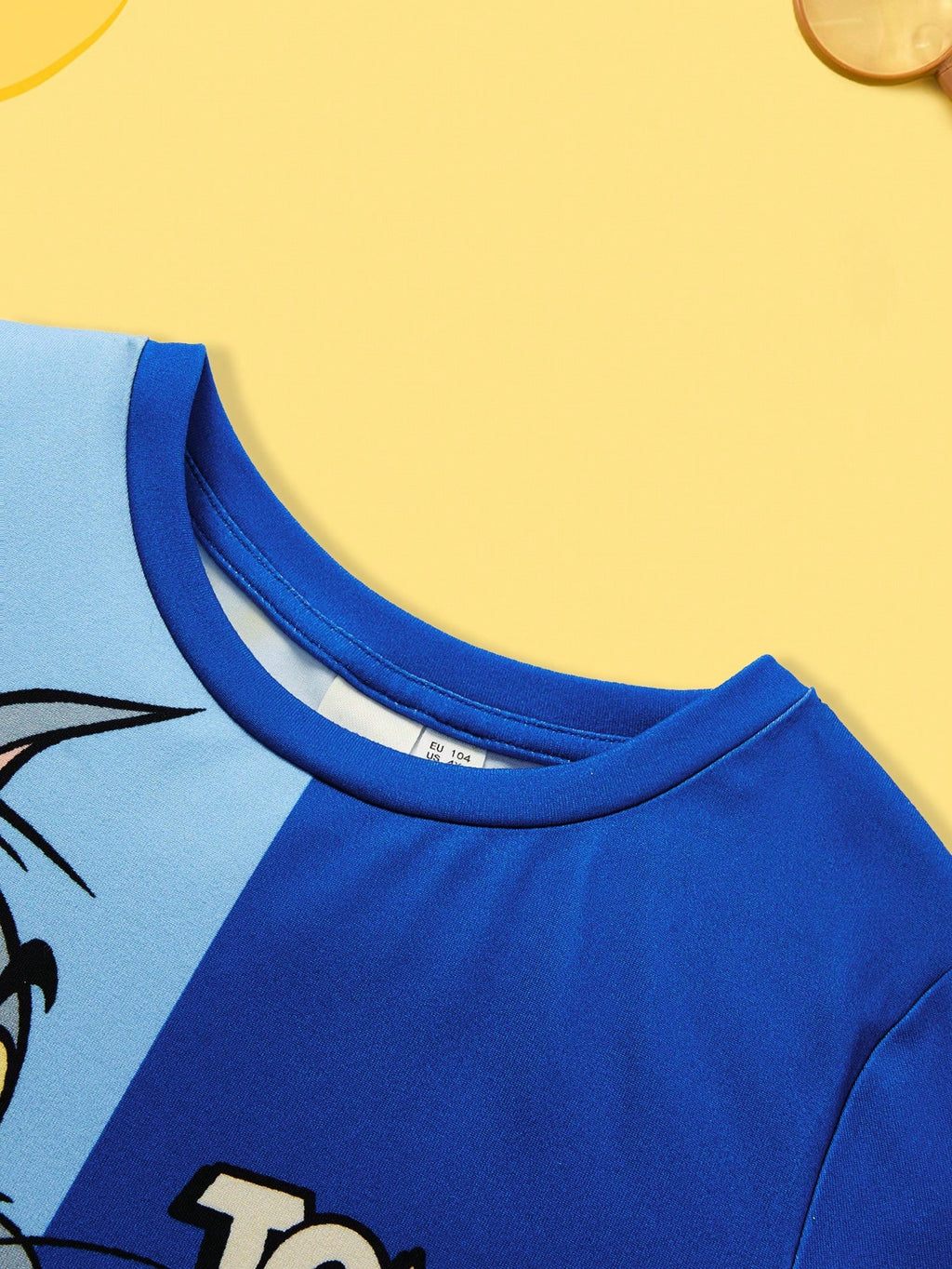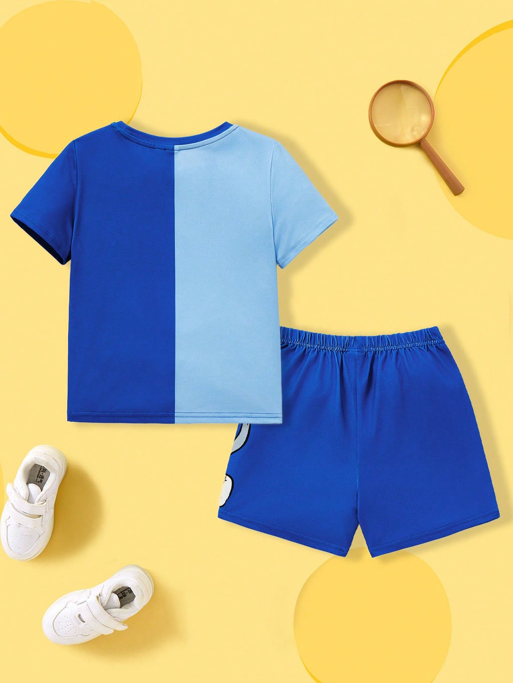 BELLAVOG Majica kratkih rukava za dječake s 2 komada/setom, ležerna, s crtanim grafičkim blokovima u boji