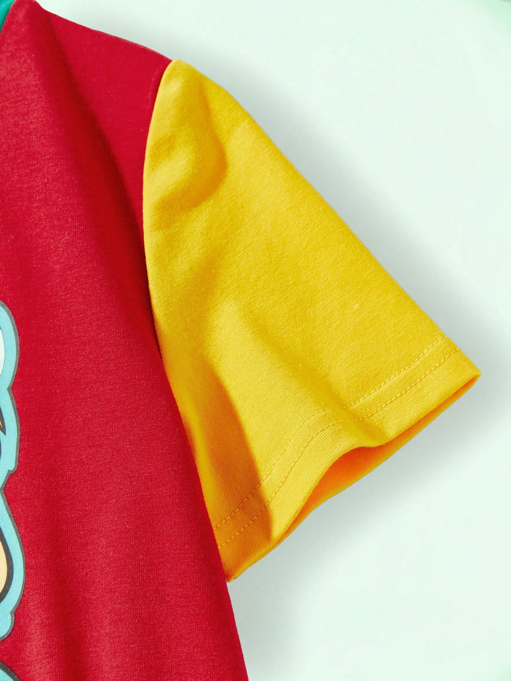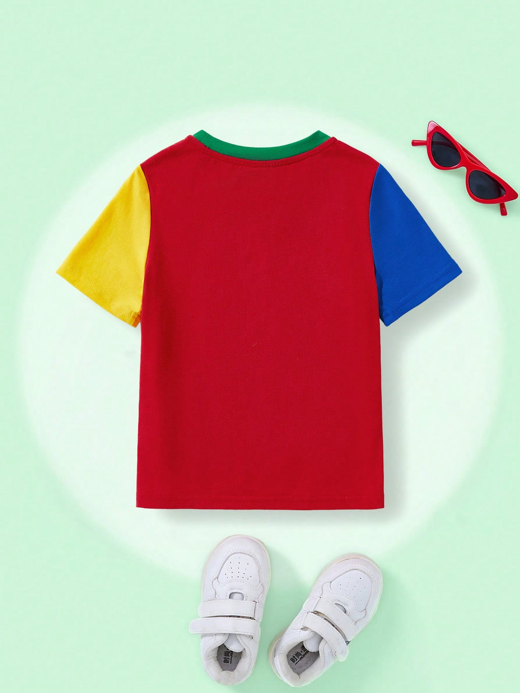 BELLAVOG Svestrana kratka majica s blokovima boja za dječake, ležerna, raglan majica s kratkim slovima