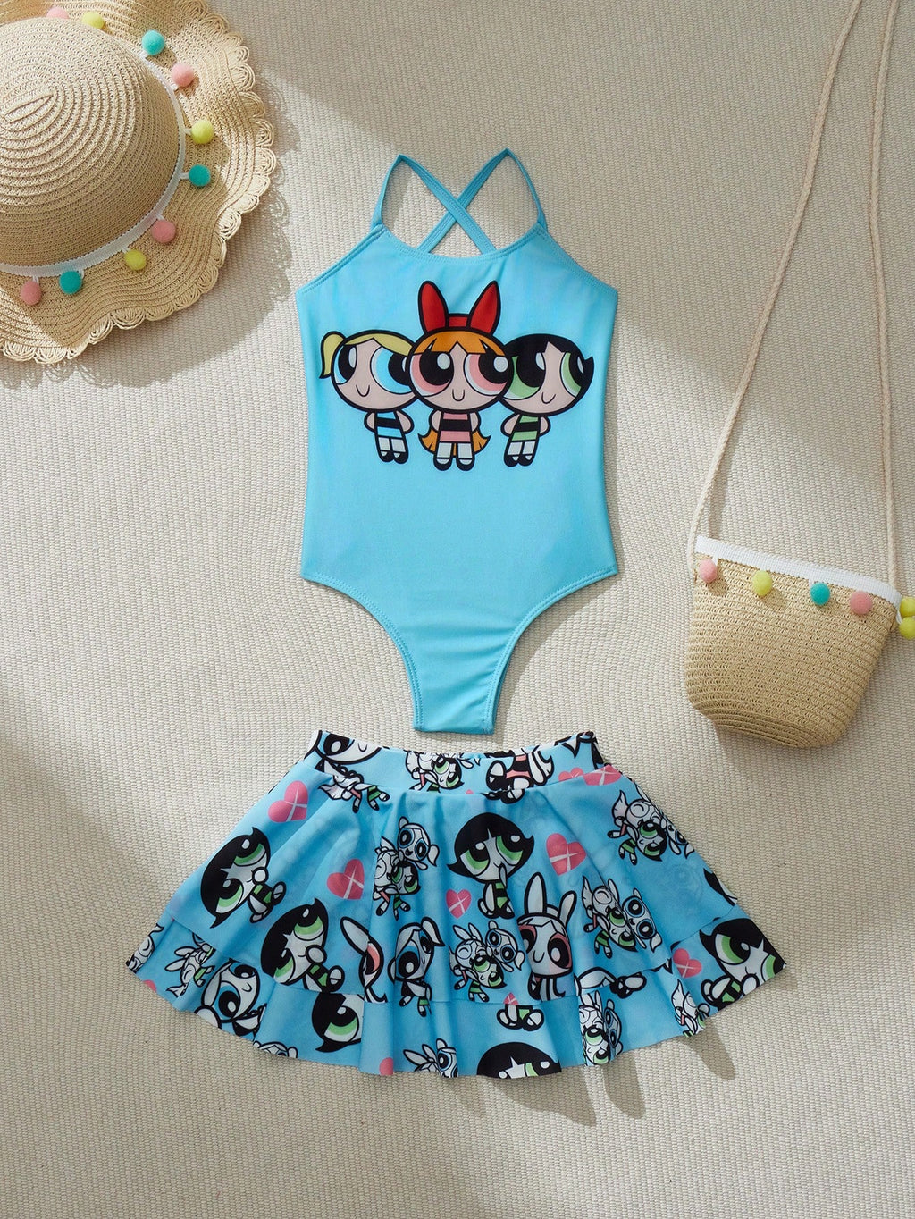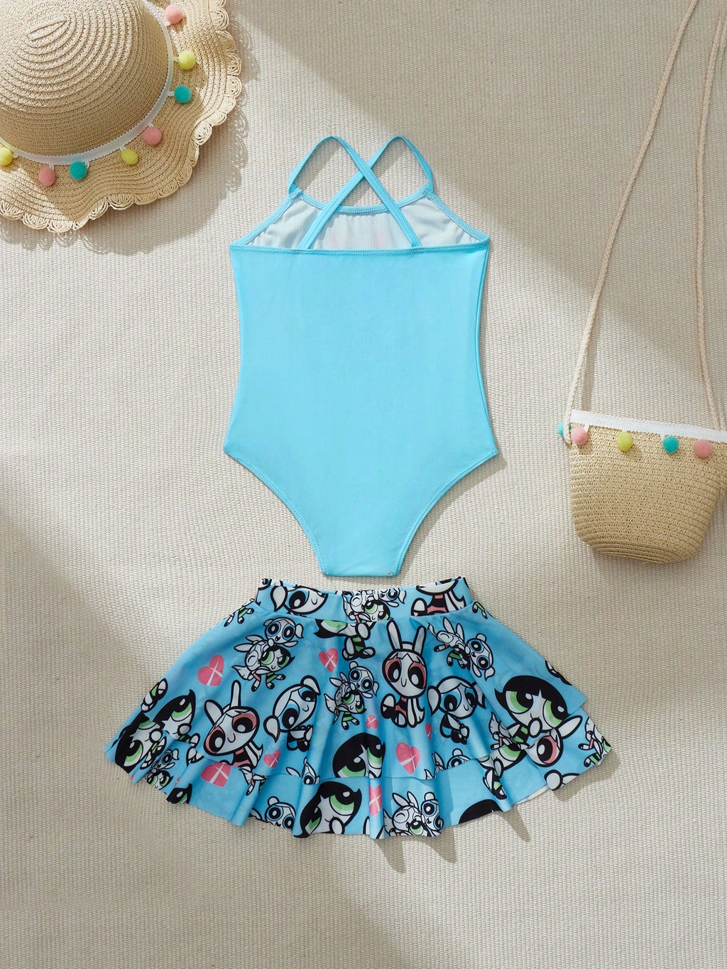 BELLAVOG Jednodijelni kupaći kostim za djevojčice s uzorkom 2 dijela, plavi cvijet, mjehurići i ljutića
