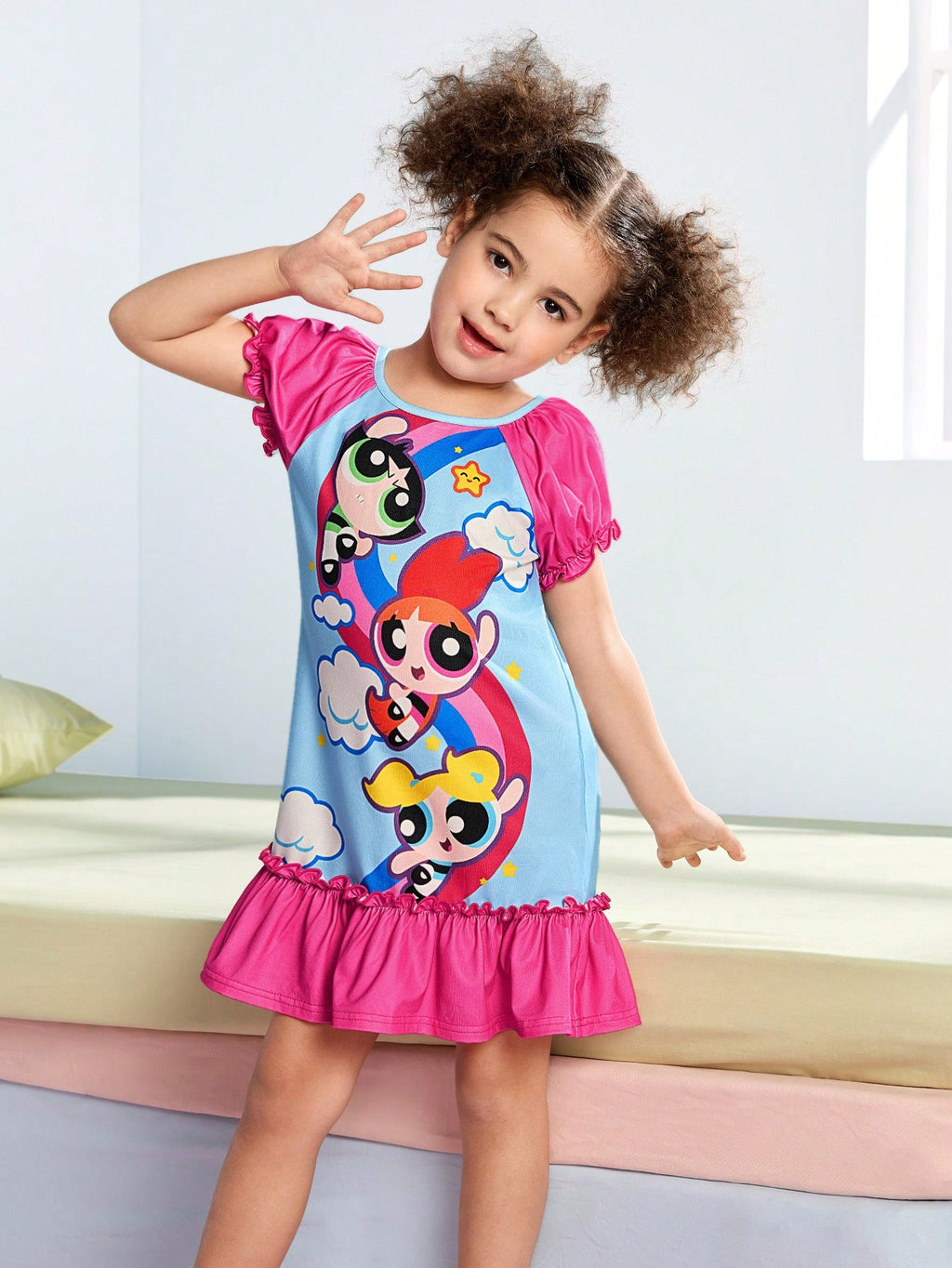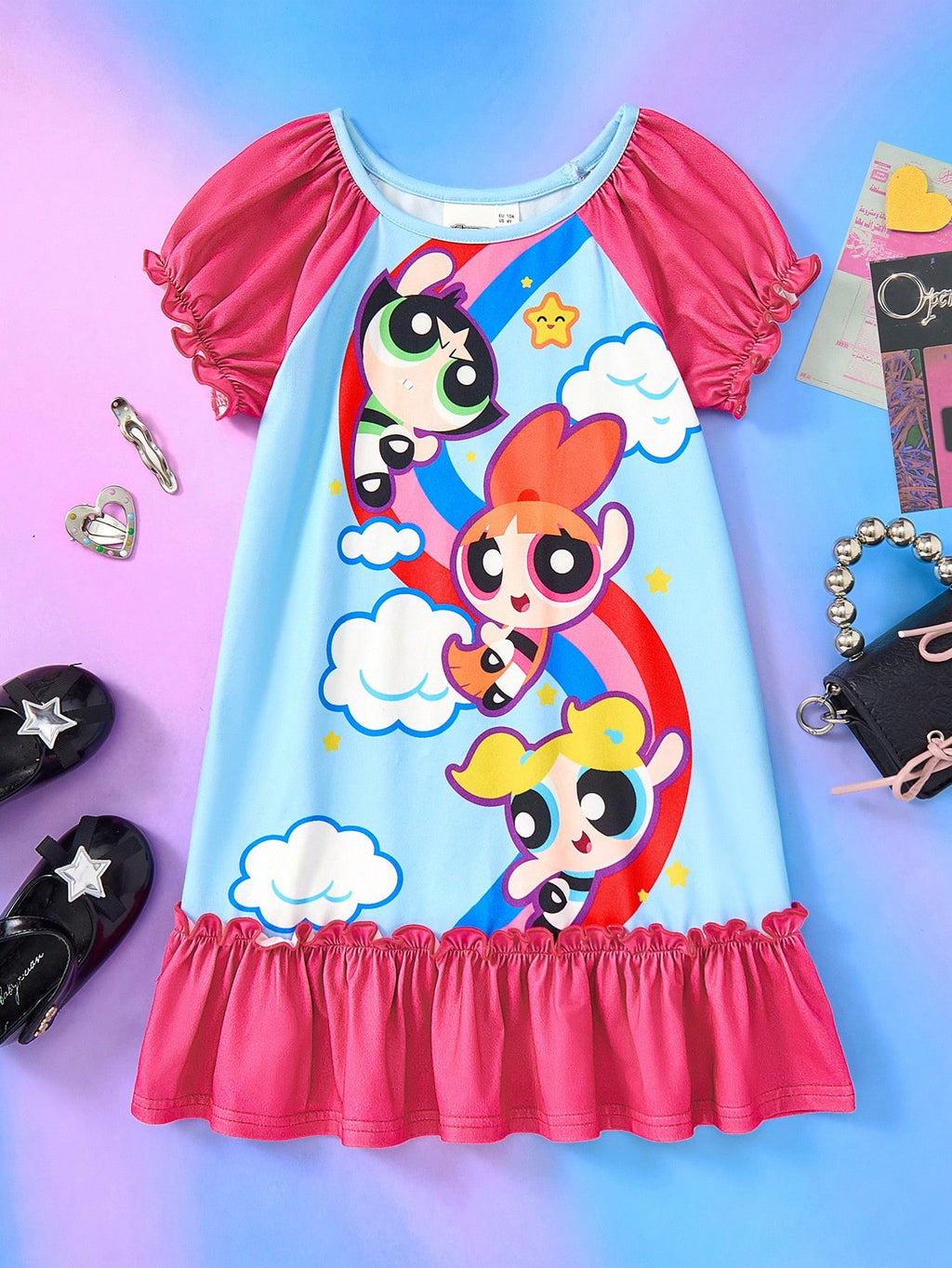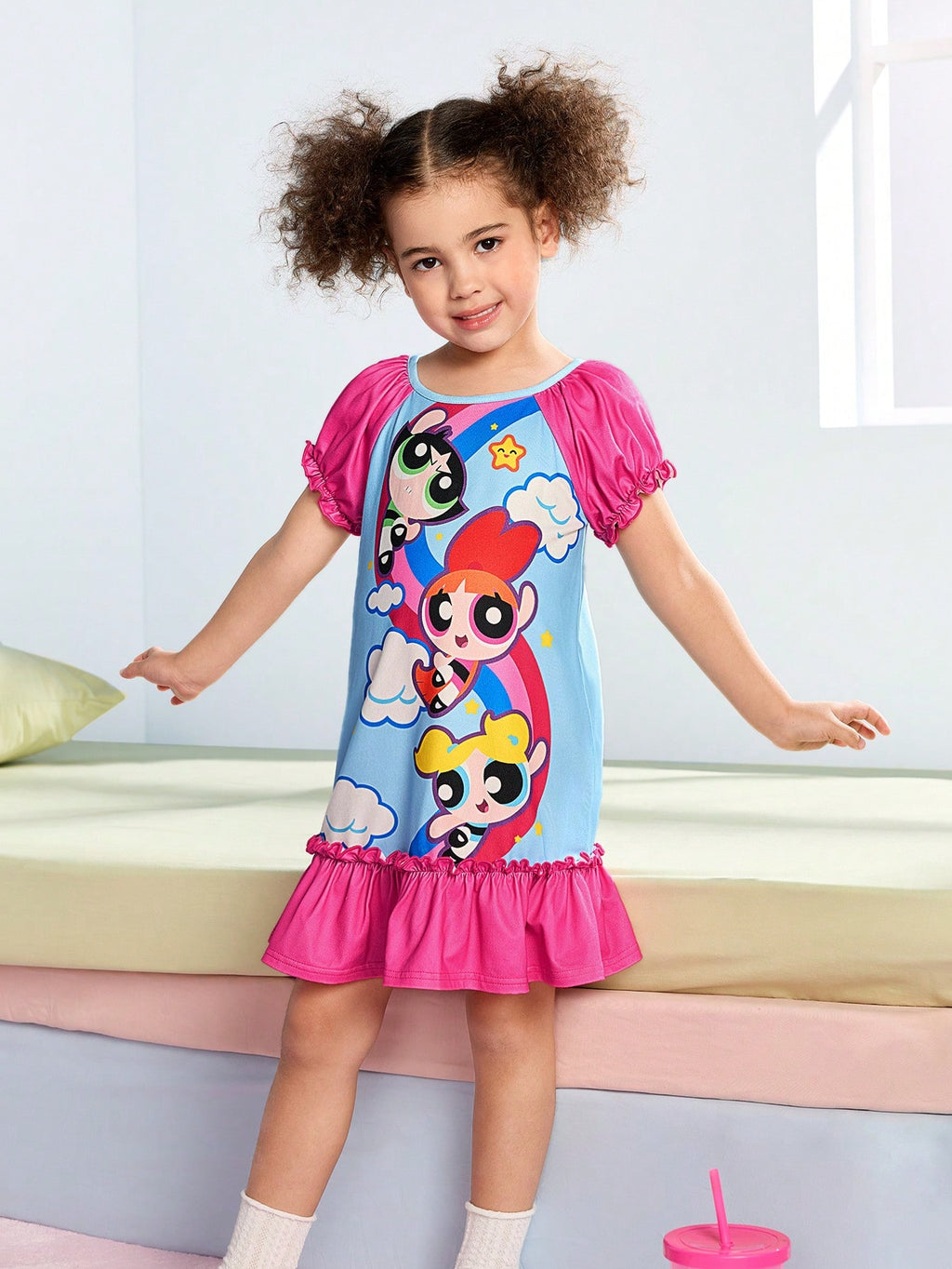 BELLAVOG Slatka ležerna spavaćica za djevojčice s printom cvijeća, mjehurića i ljutića u kontrastnoj boji s volanima i rubom, pogodna za proljeće i ljeto