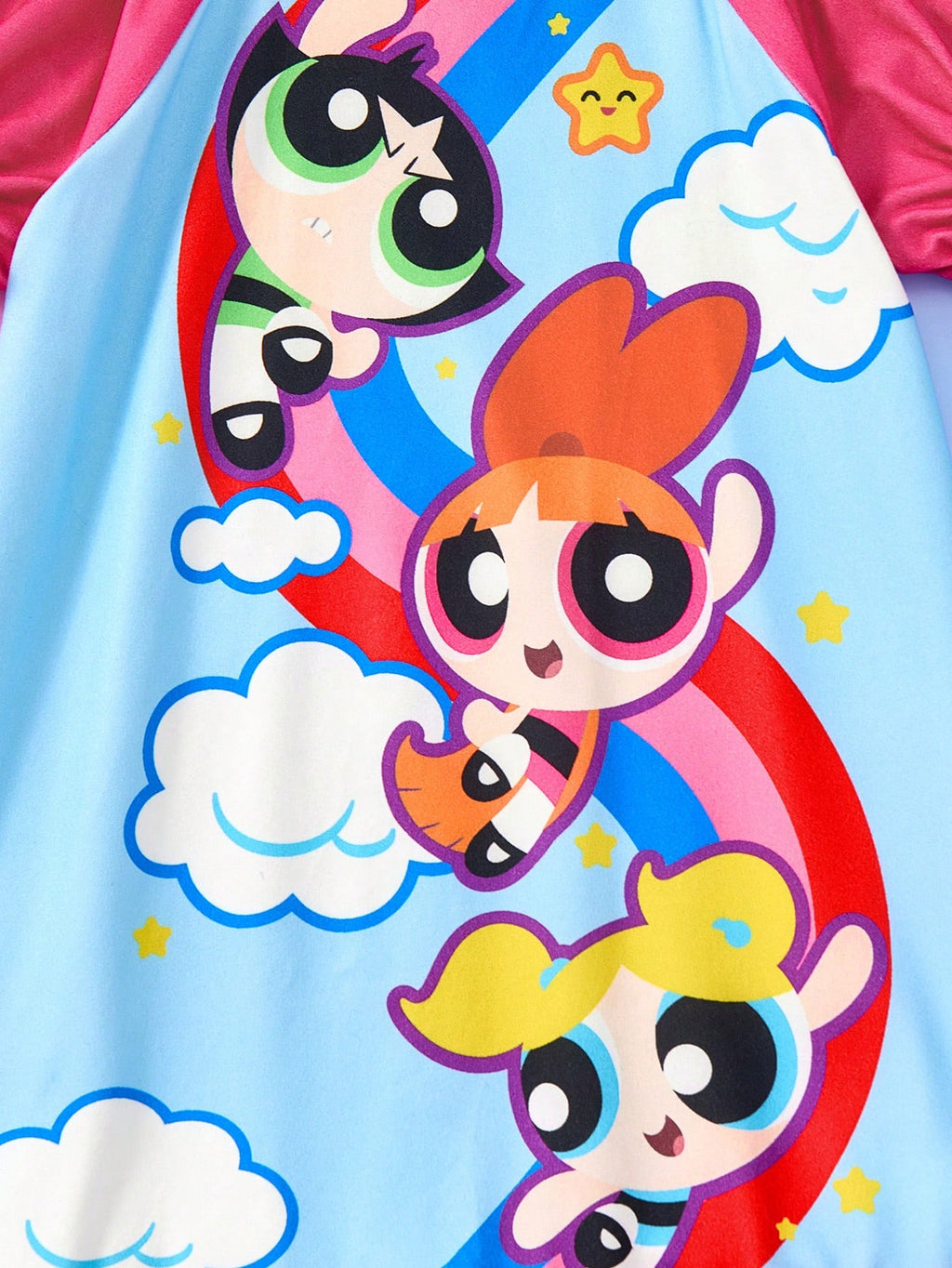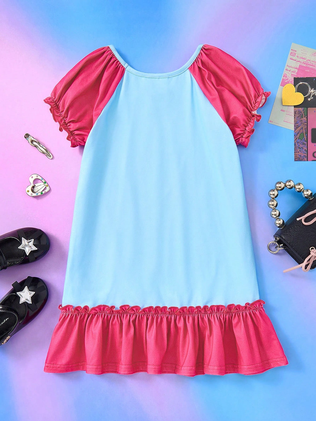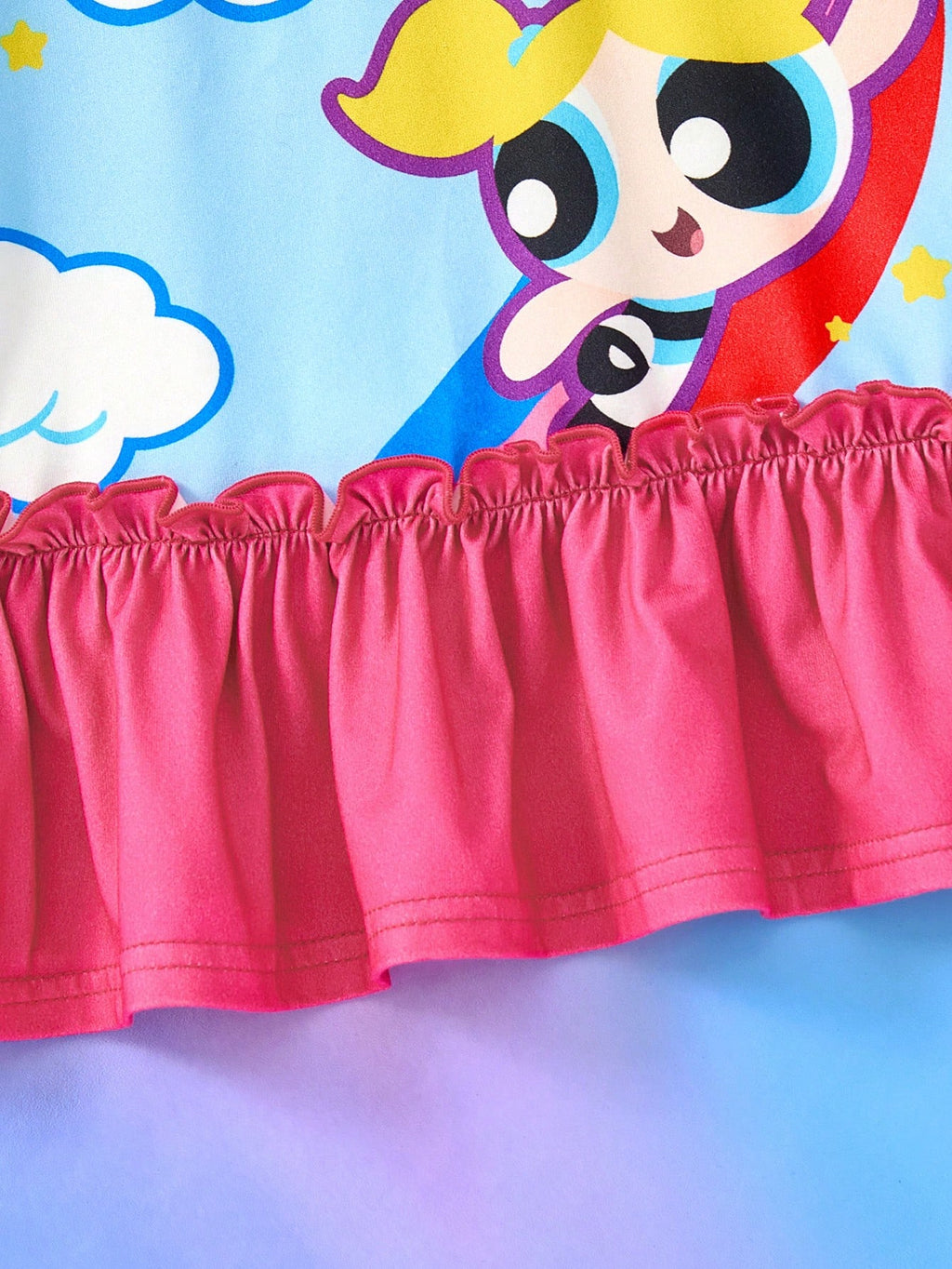 BELLAVOG Slatka ležerna spavaćica za djevojčice s printom cvijeća, mjehurića i ljutića u kontrastnoj boji s volanima i rubom, pogodna za proljeće i ljeto
