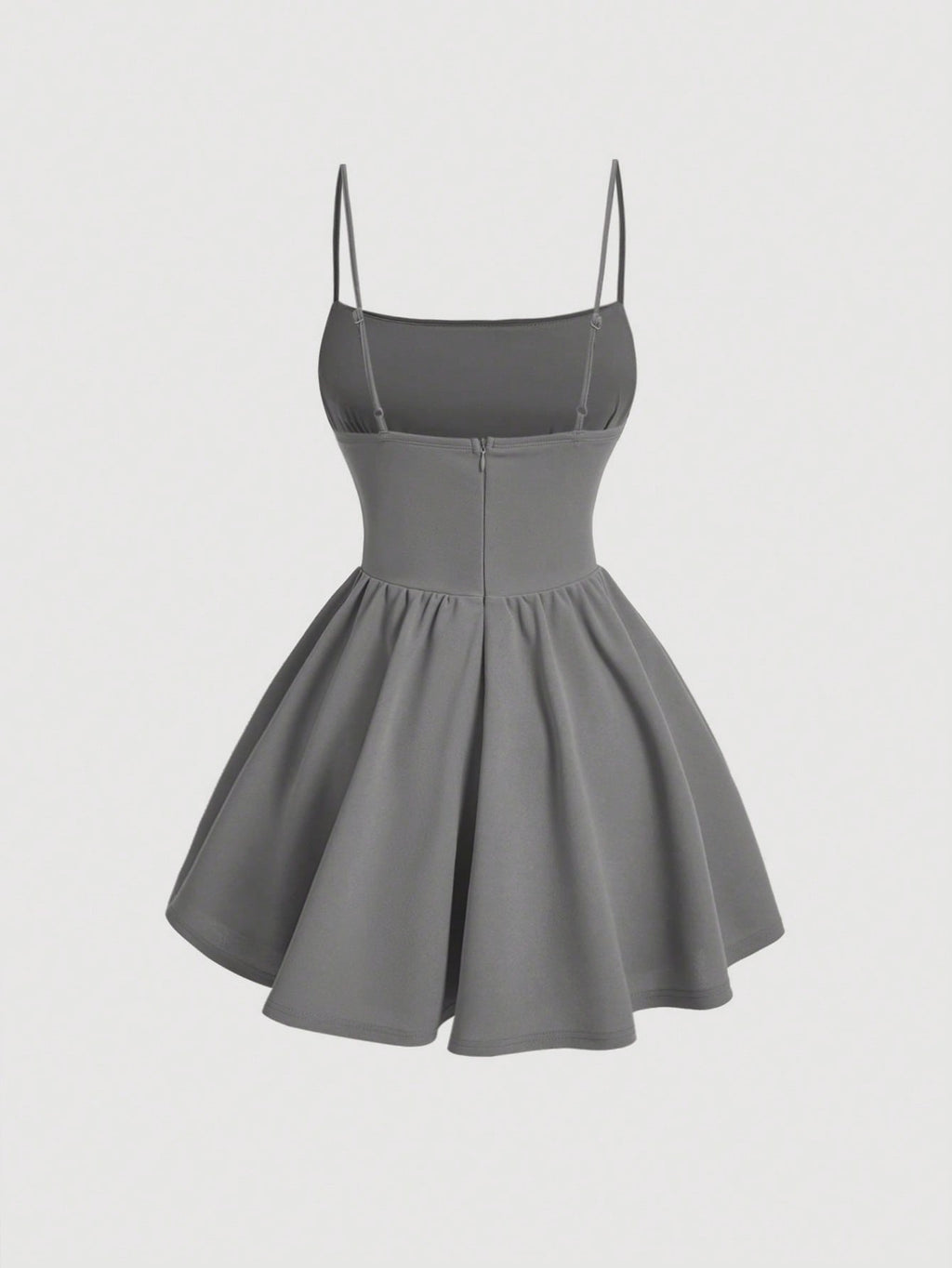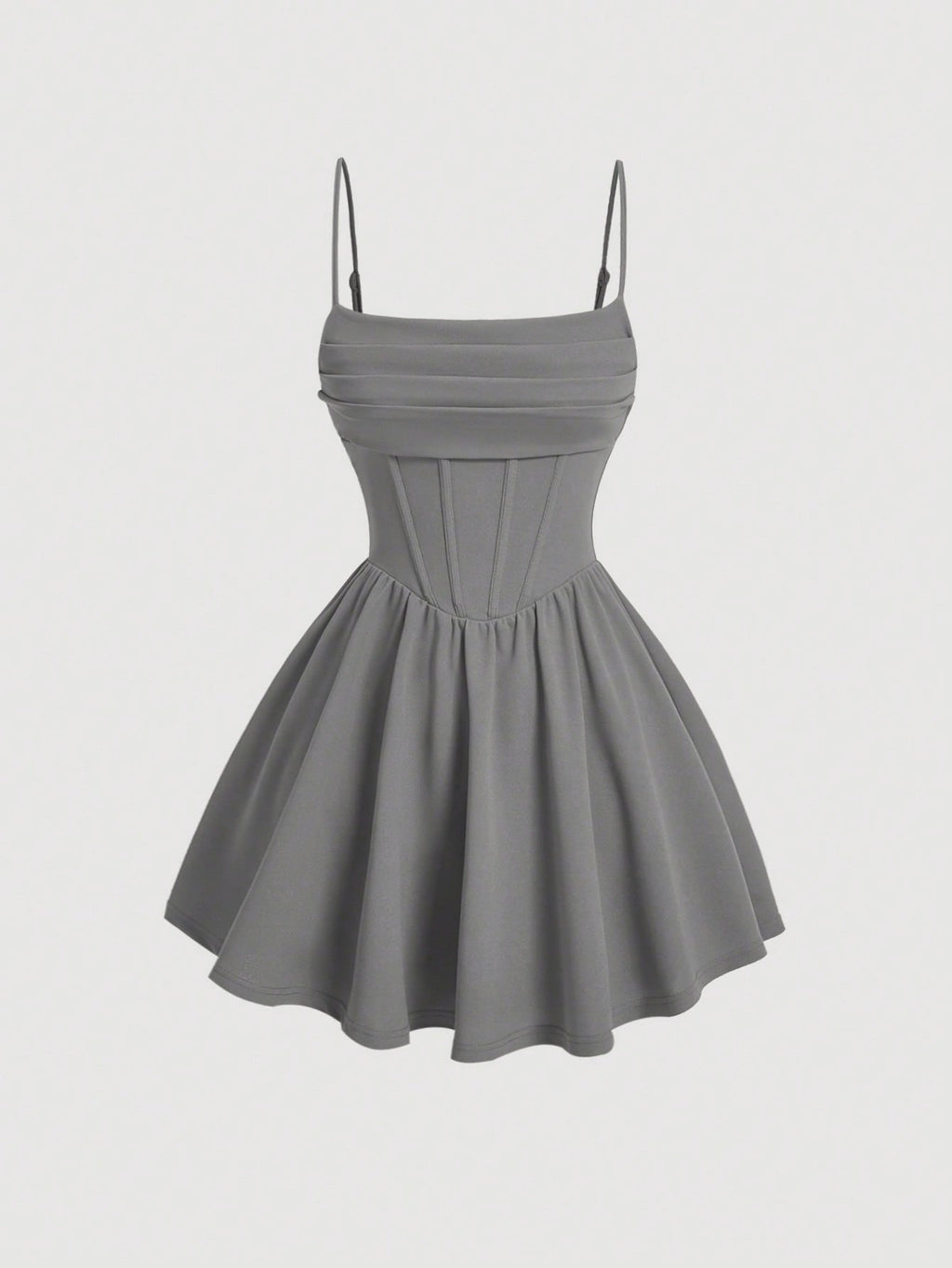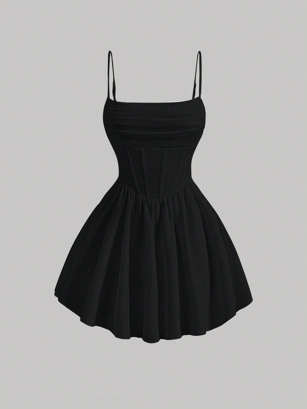 MIU AZRA Ženska Crna Crep Haljina sa Nabranom Ovratnikom i Rukavima u Zvonu