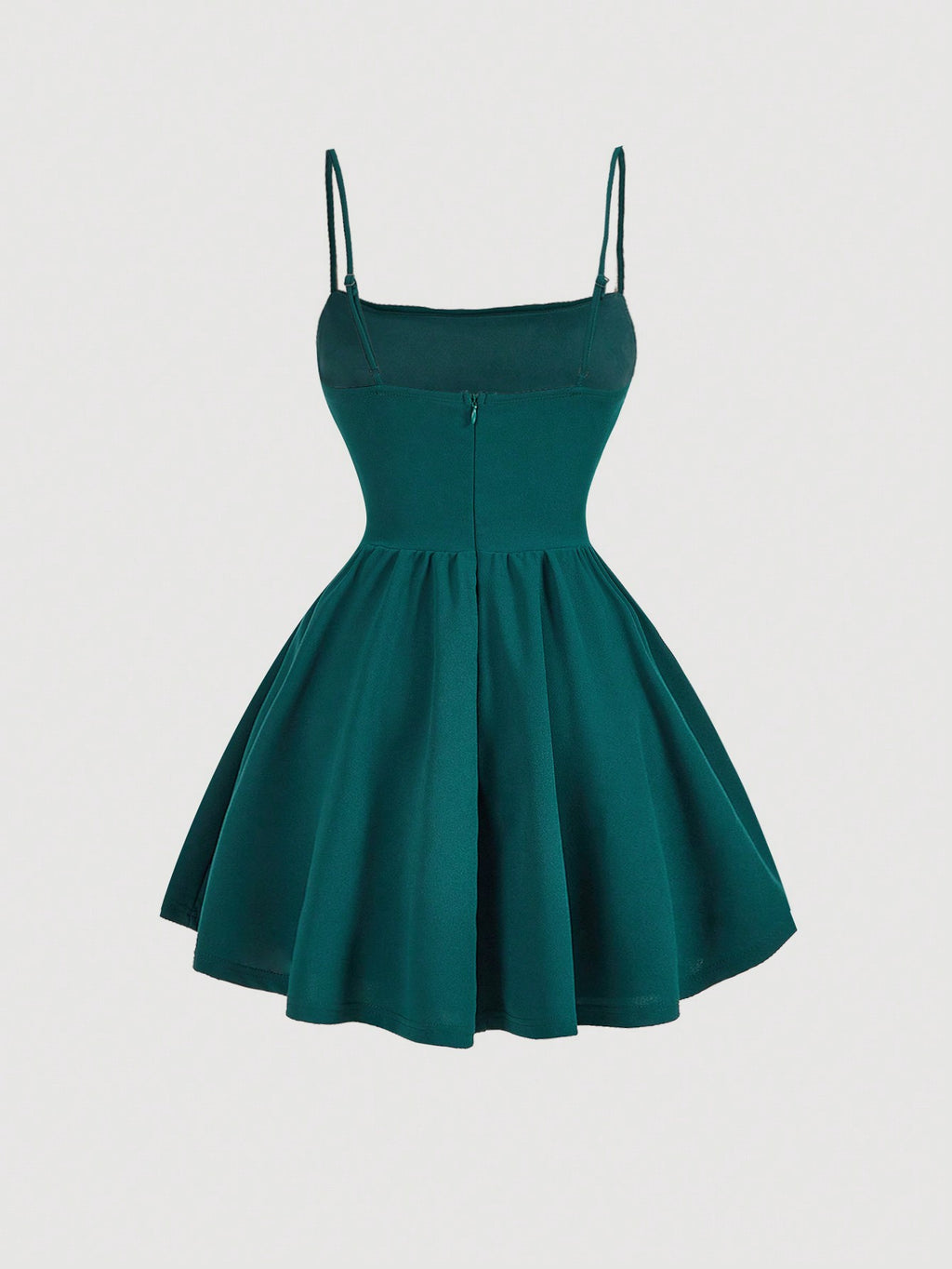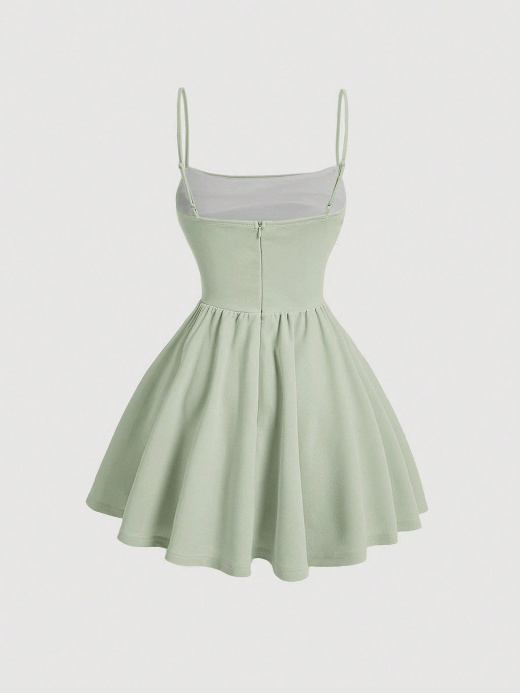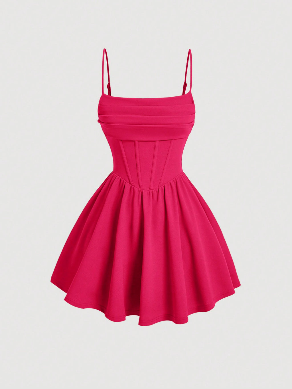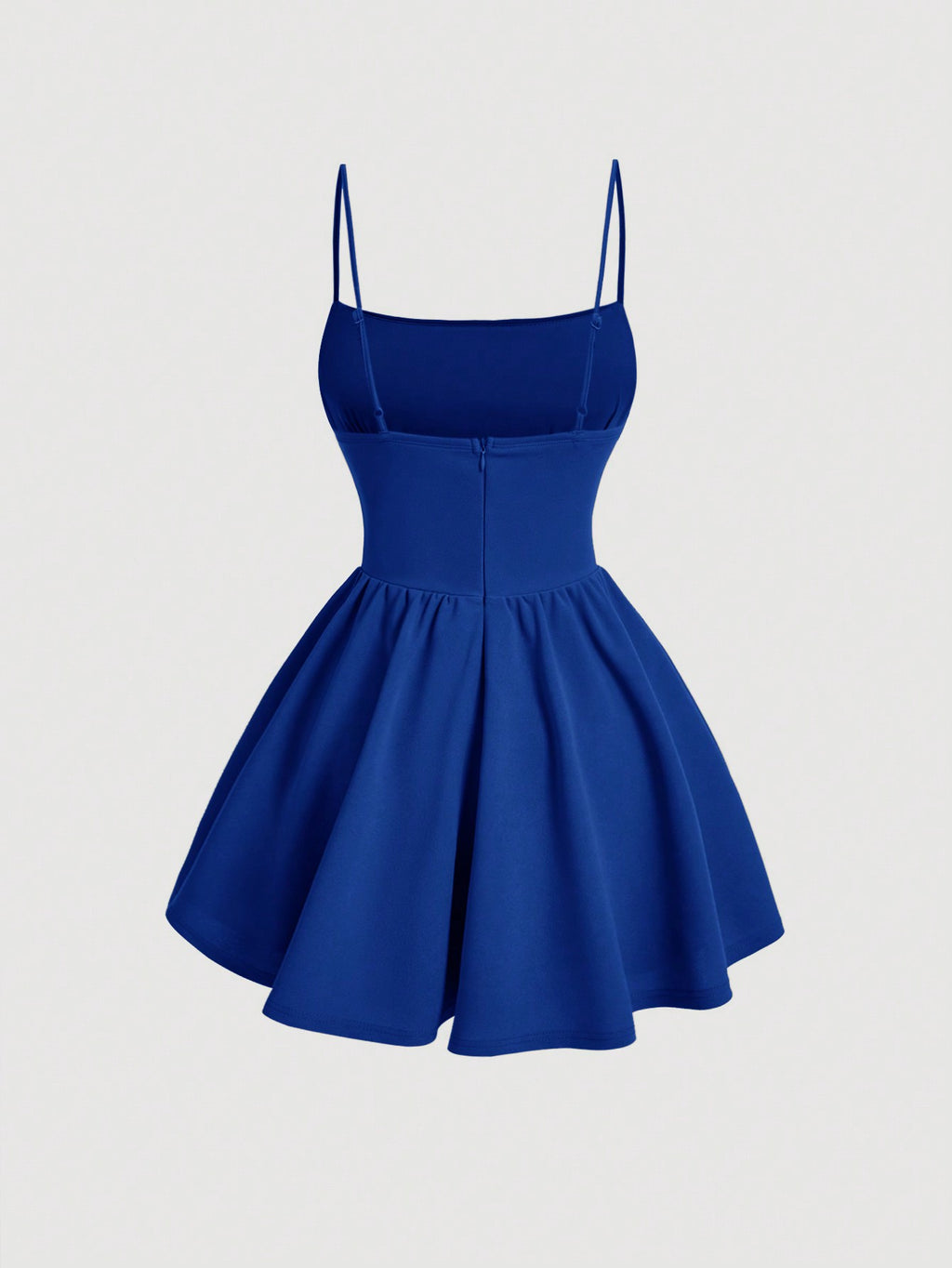 MIU AZRA Ženska Crna Crep Haljina sa Nabranom Ovratnikom i Rukavima u Zvonu