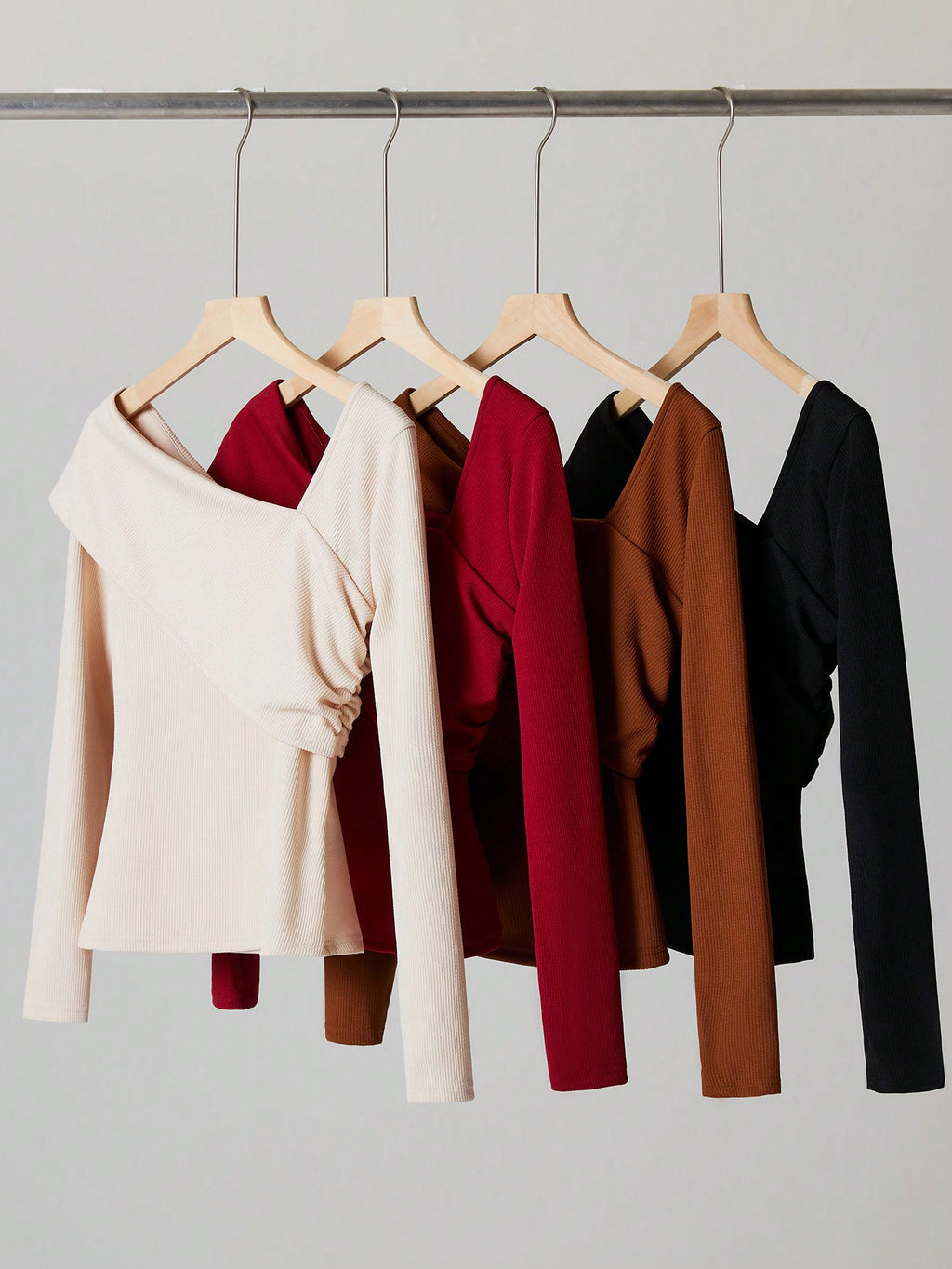 MIU AZRA Elenzya Asimetrična Prugasta Majica sa Dugim Rukavima za Žene, Elegantna Romantična, Casual i Komutna Odjeća, Haljina za Noć Veštica, Crna