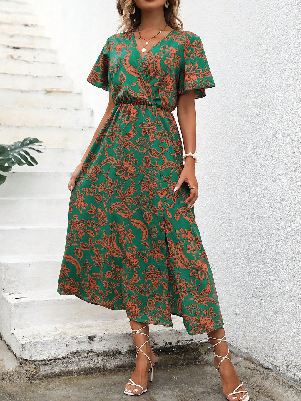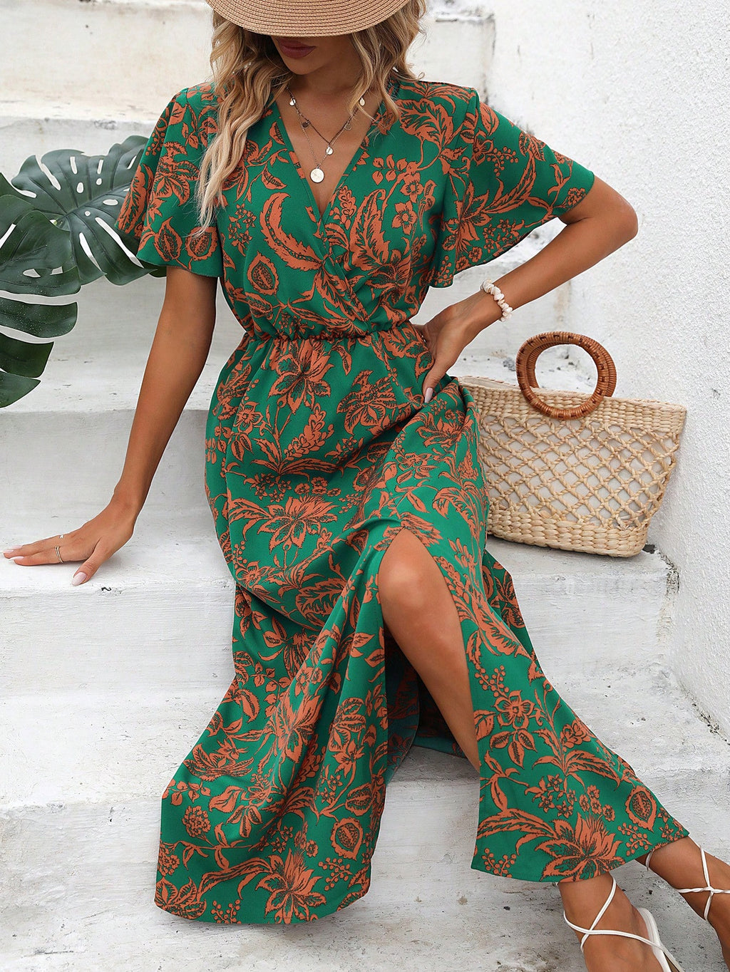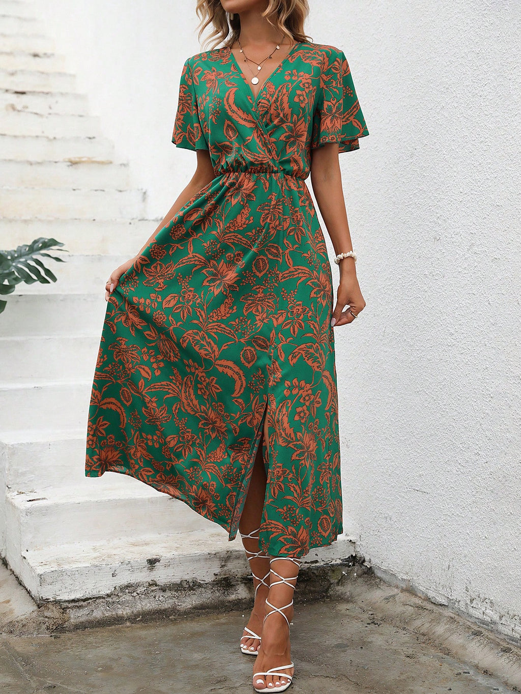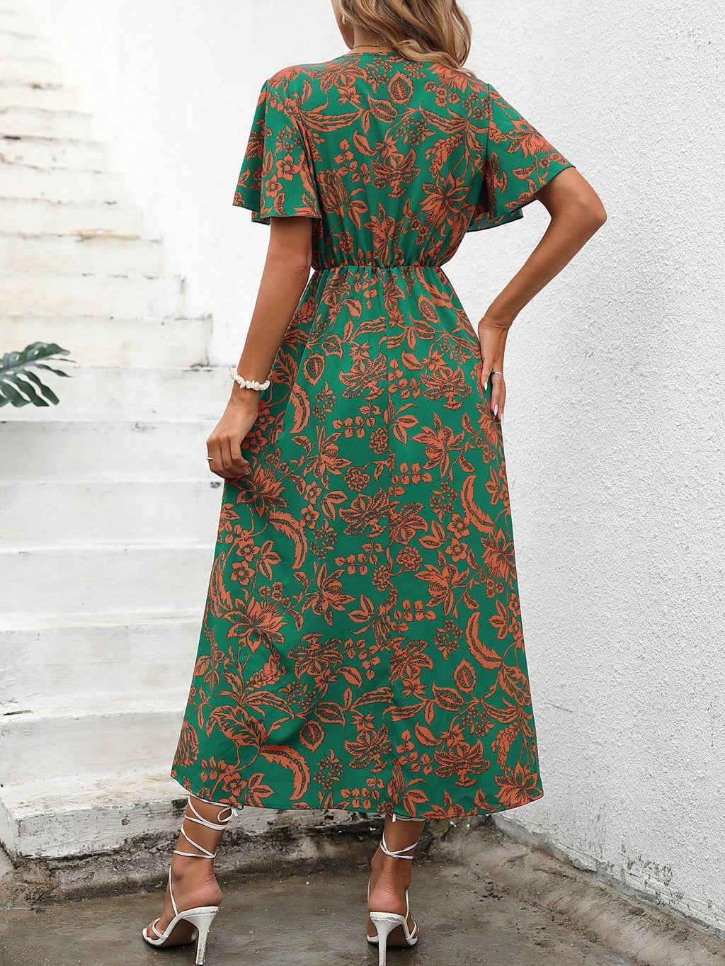 Ženska maksi haljina s leptir rukavima i printom preko cijele površine, Breezaya