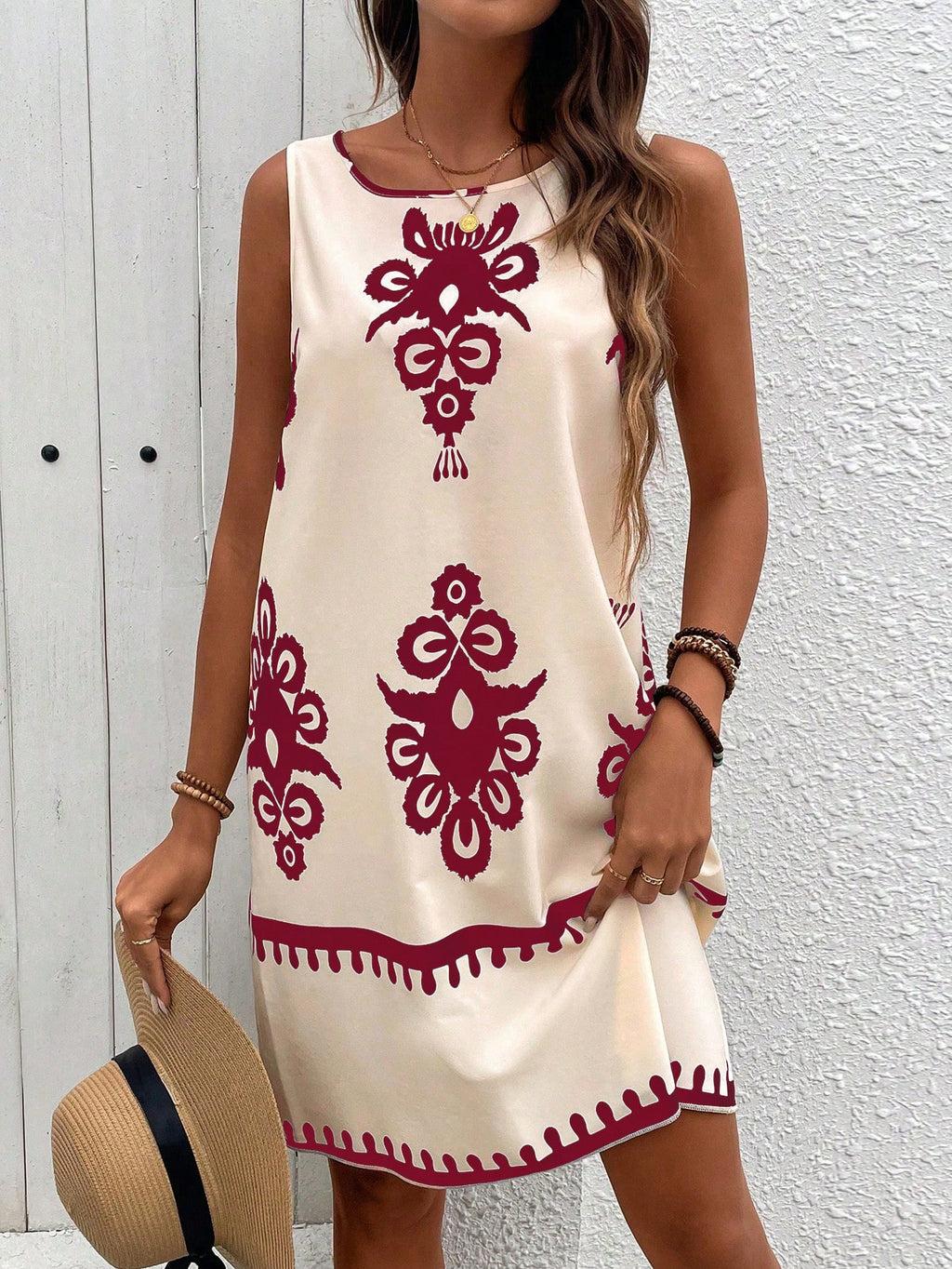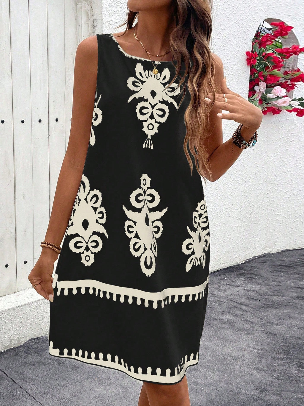 BELLAVOG Ženska ležerna ljetna haljina bez rukava s printom za odmor i plažu