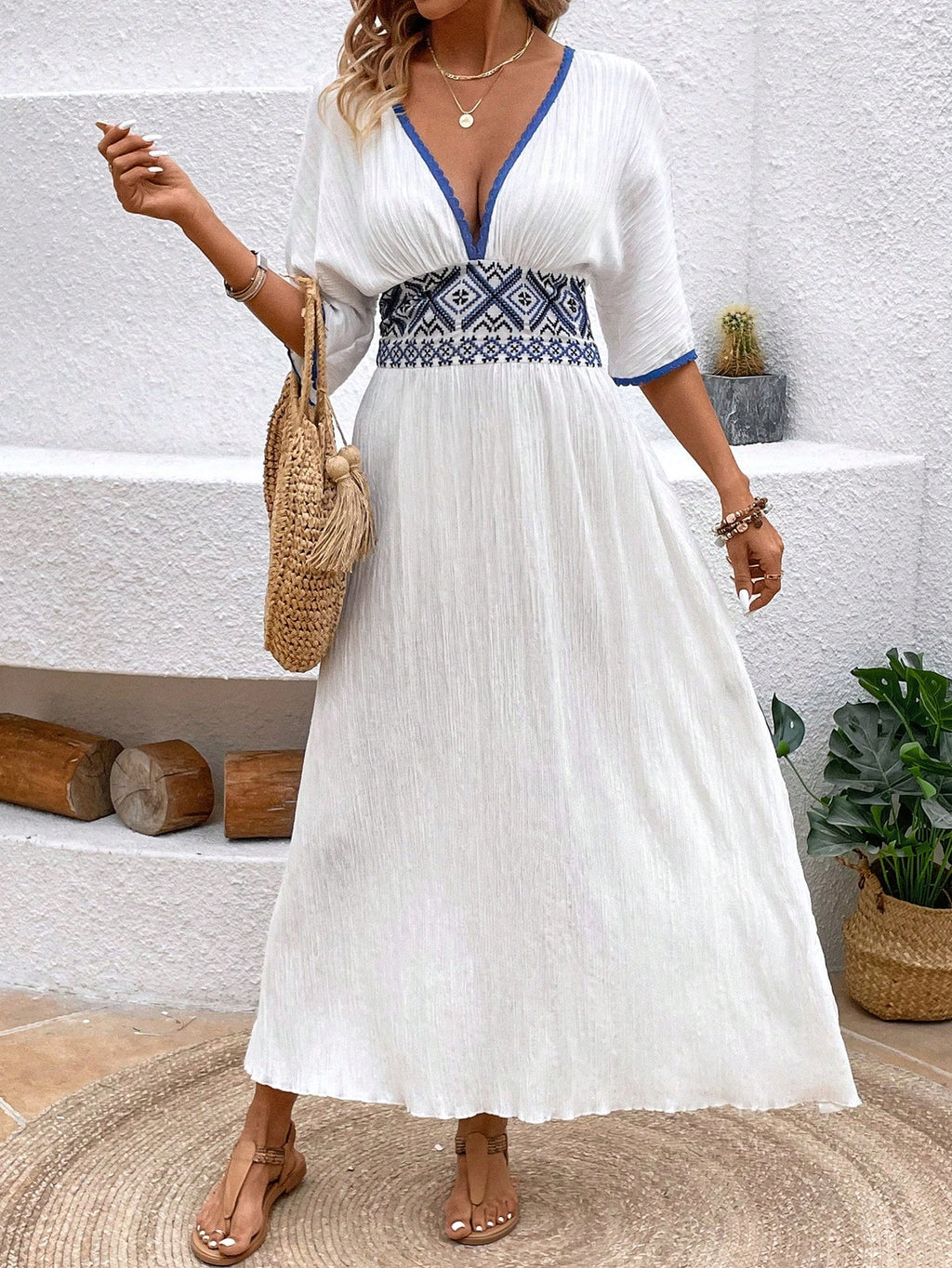 Ženska ljetna haljina s vezom i patchworkom BELLAVOG
