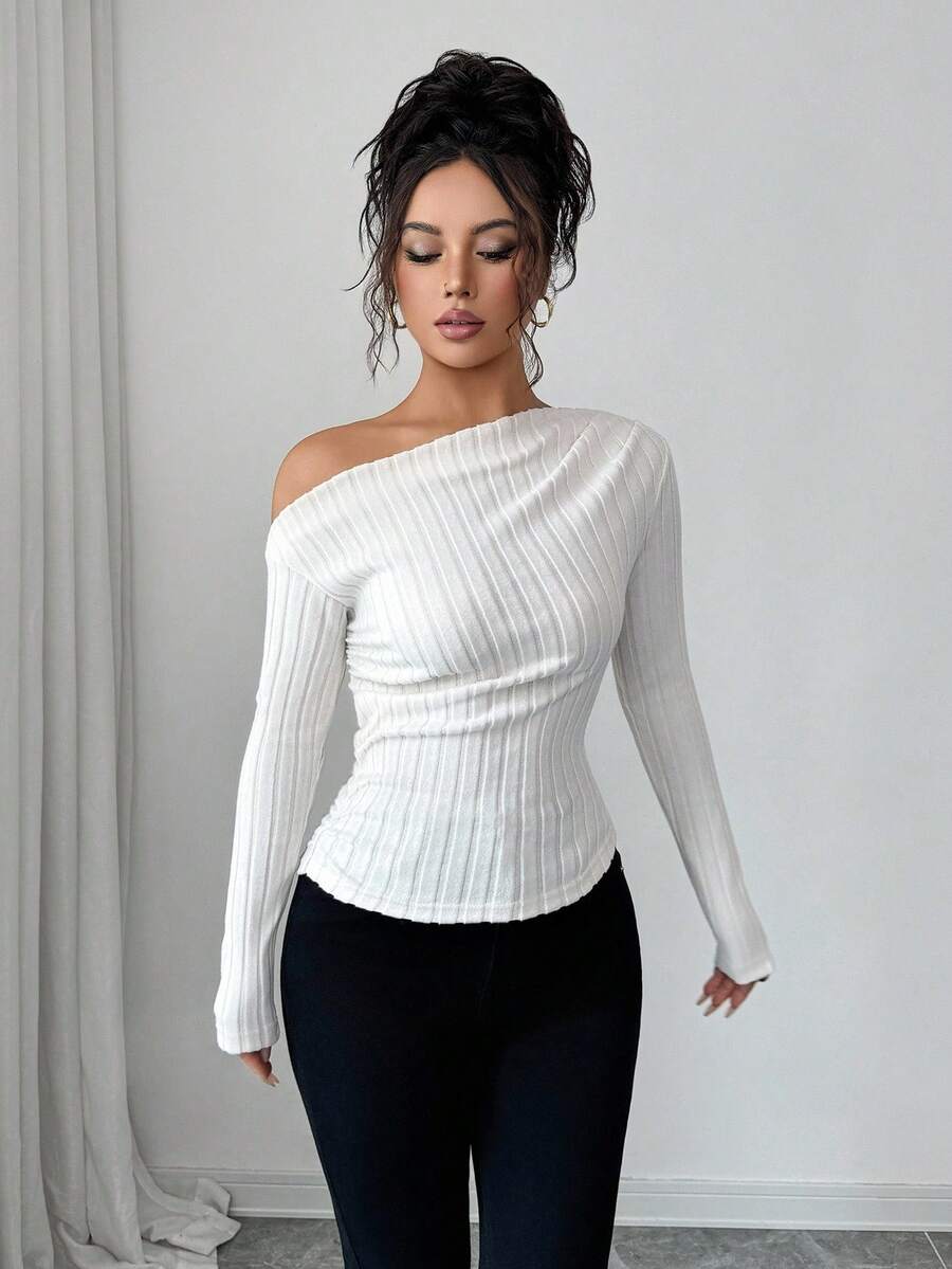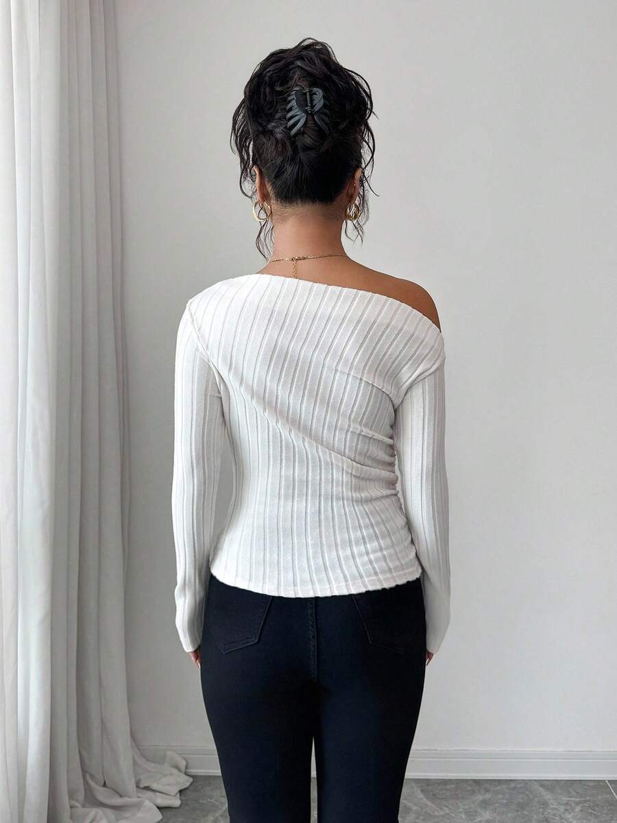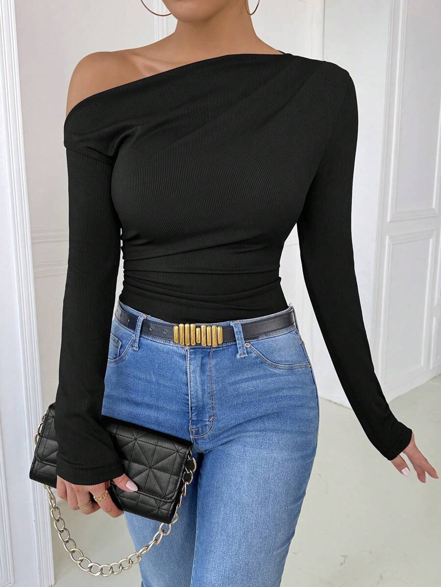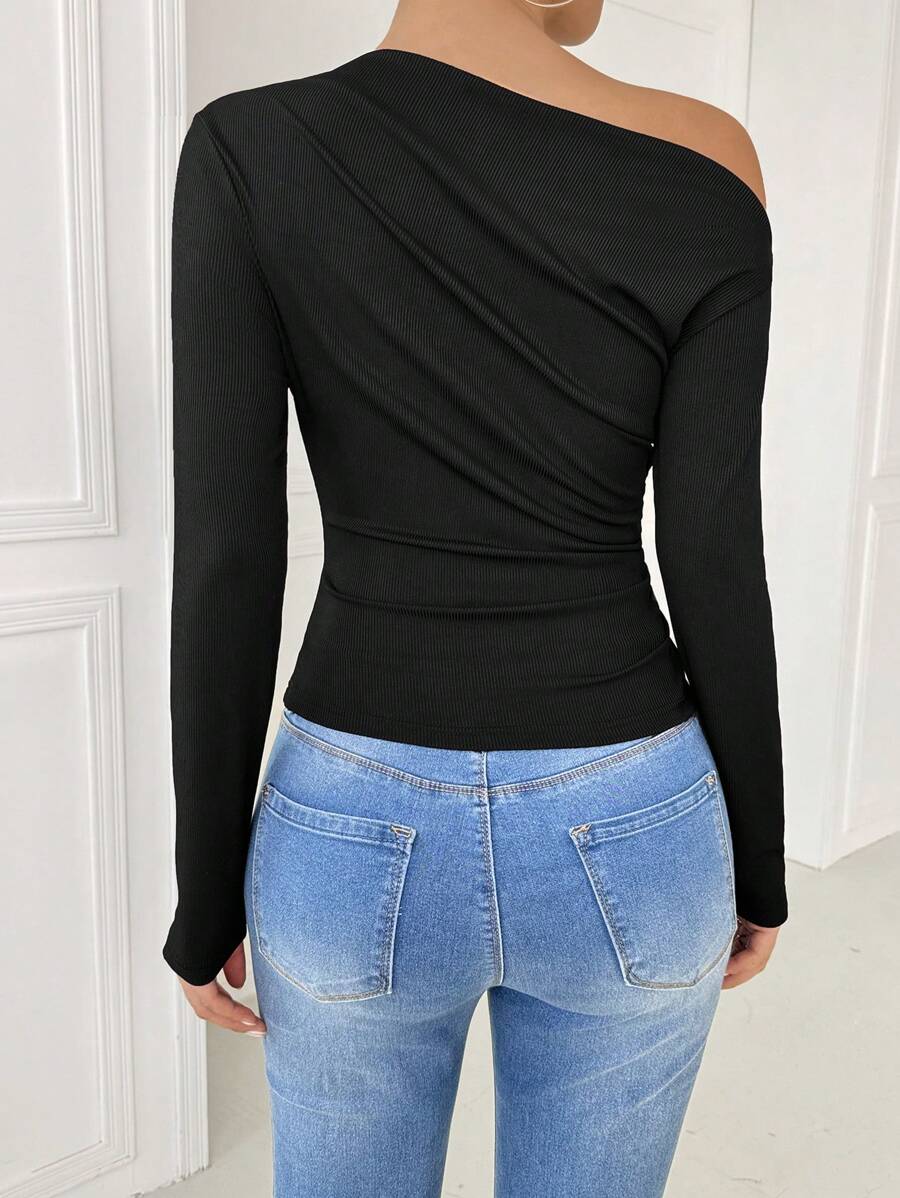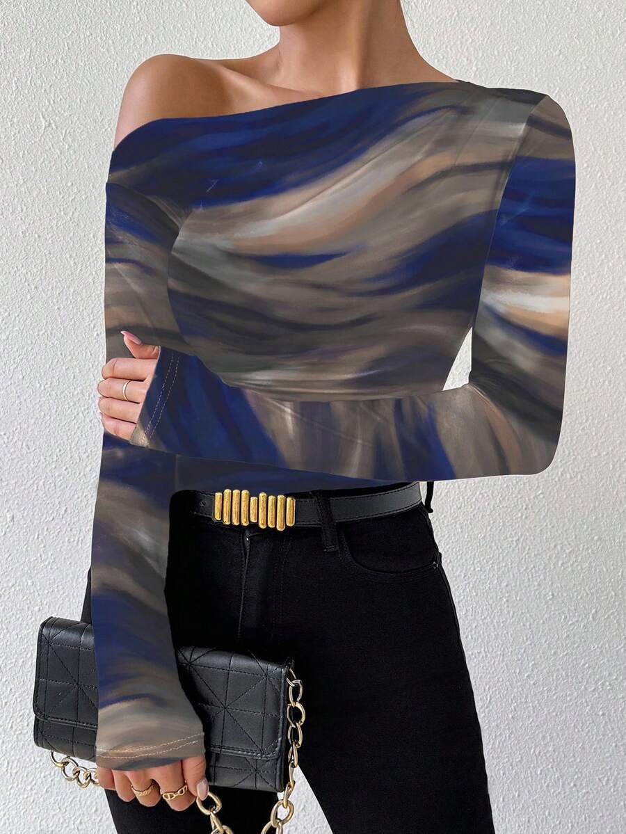 Chiquease Marble Ombre Print Asymmetric Ruched Long Sleeve Top For Spring Outfit Fall Cloth For Women
