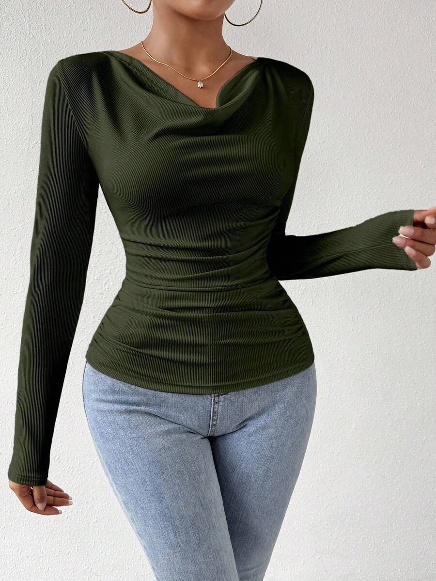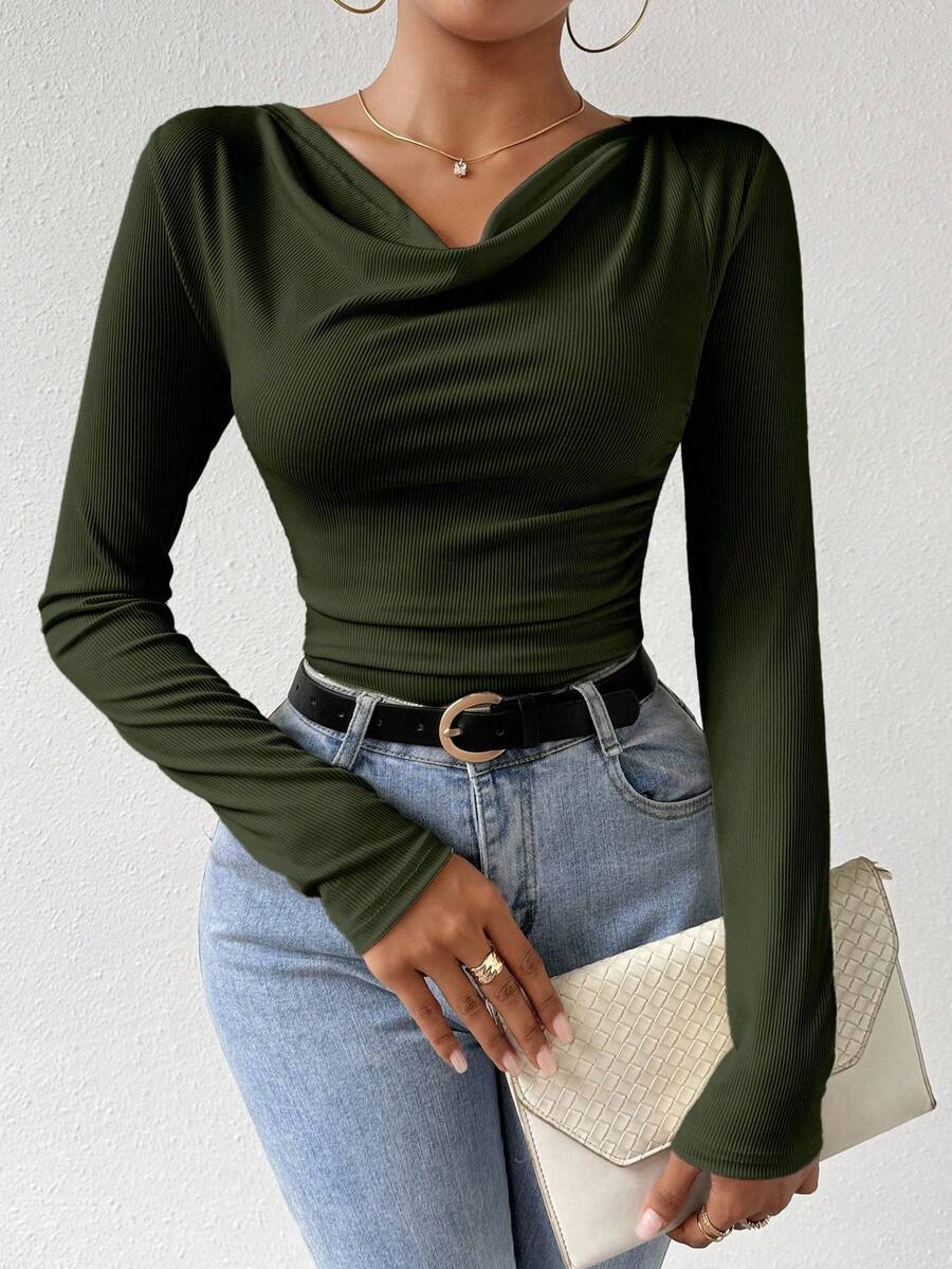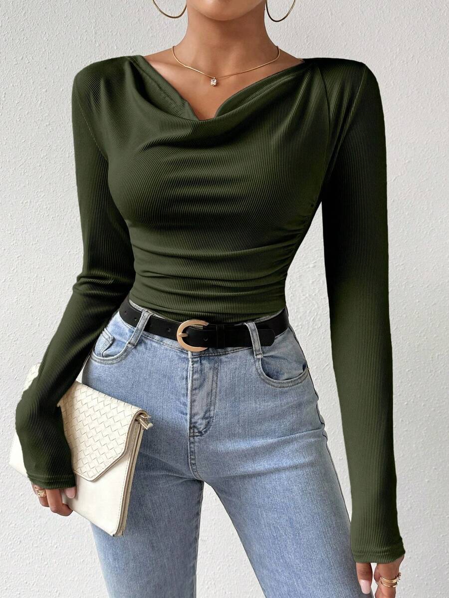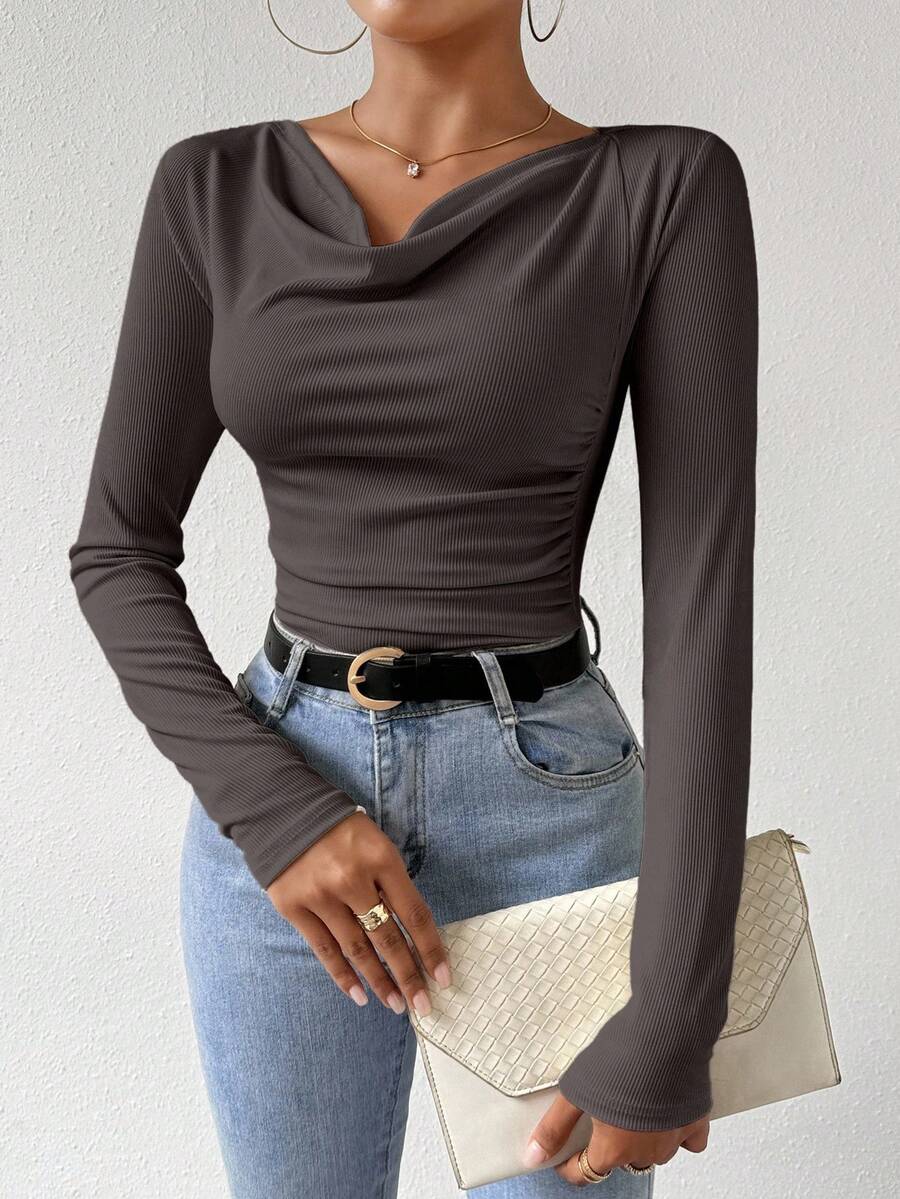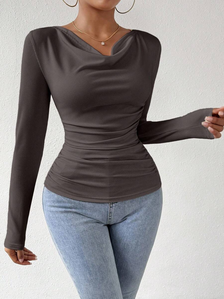 Chiquease Solid Color Draped Collar T-Shirt Fall Cloth For Women