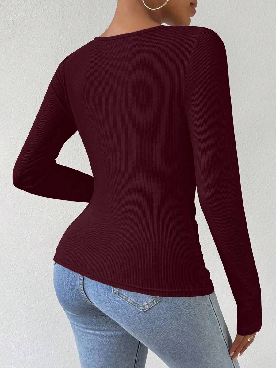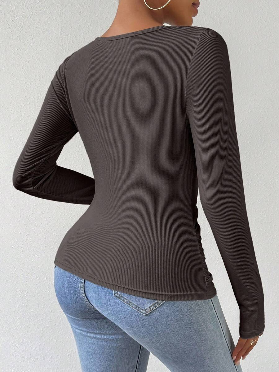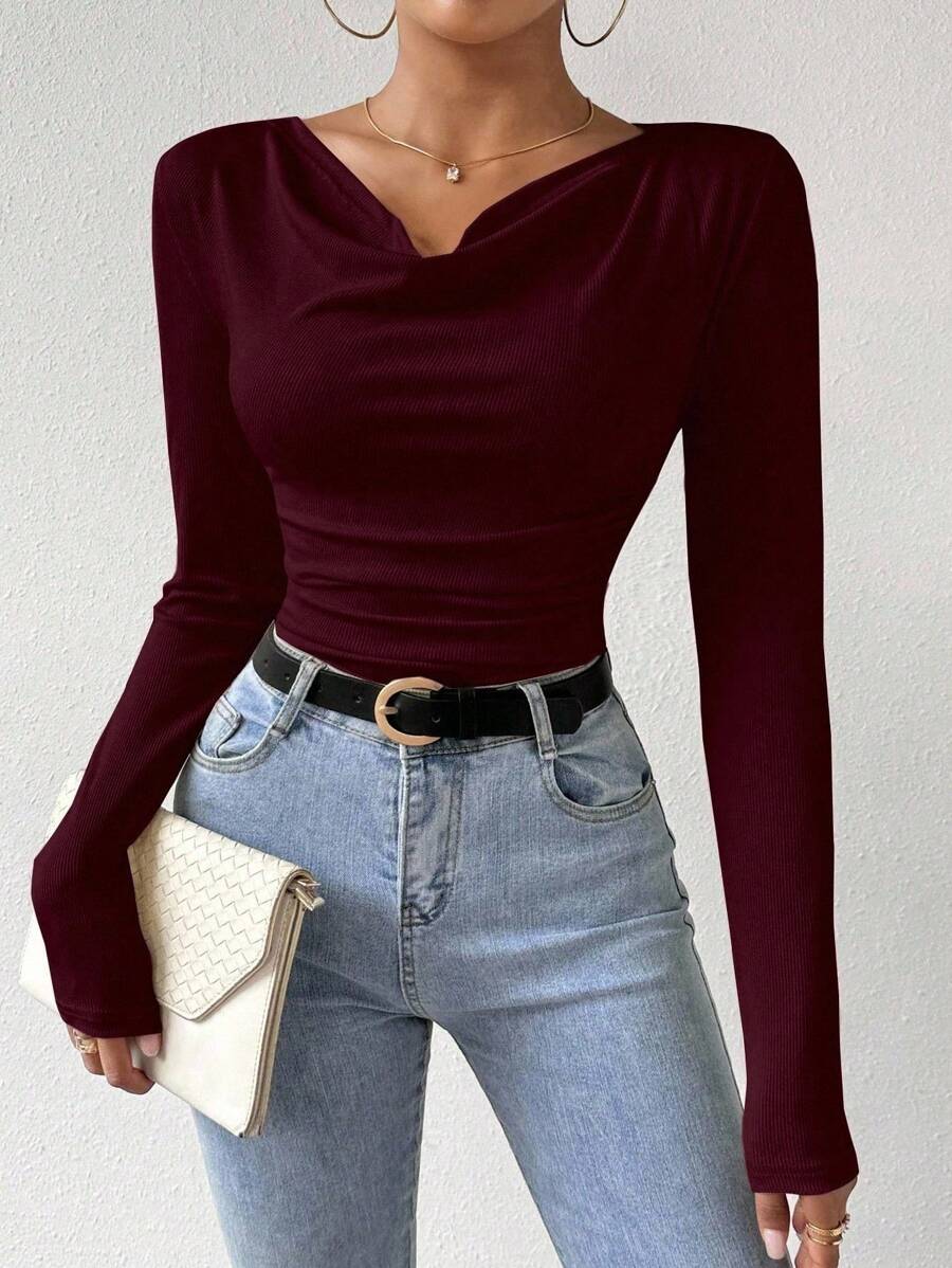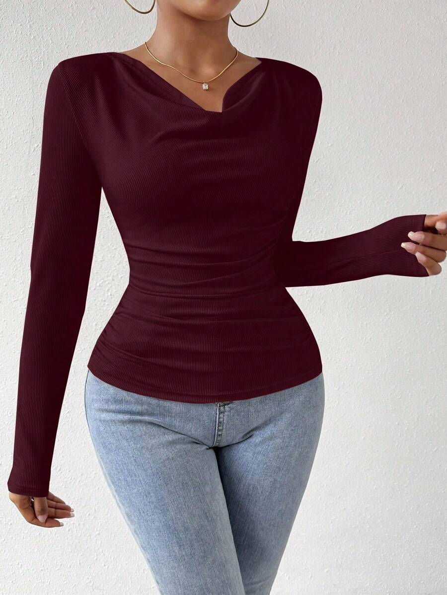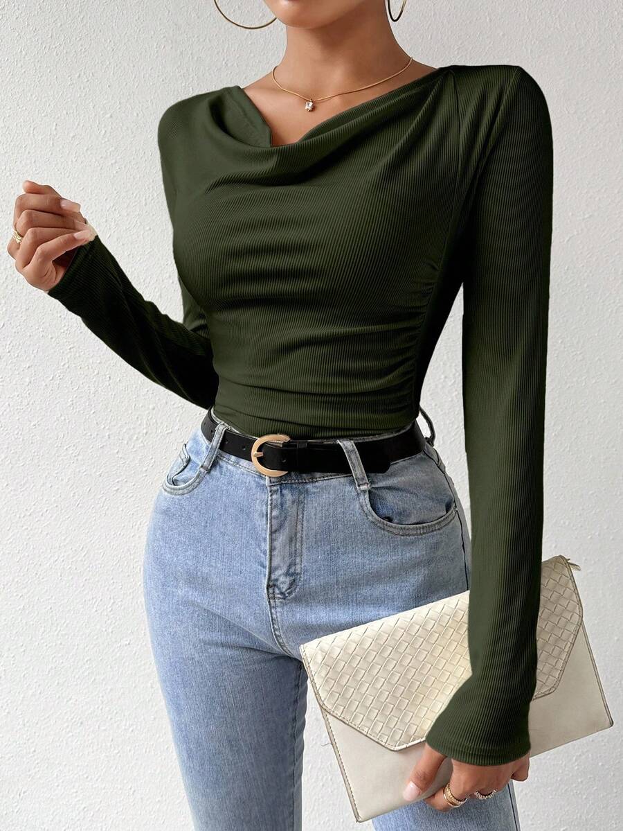 Chiquease Solid Color Draped Collar T-Shirt Fall Cloth For Women