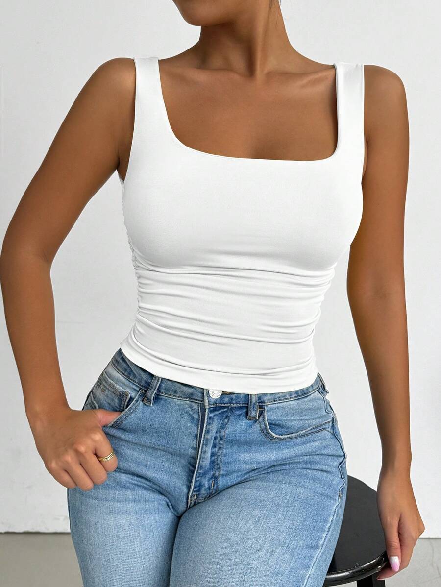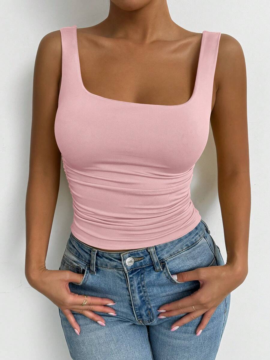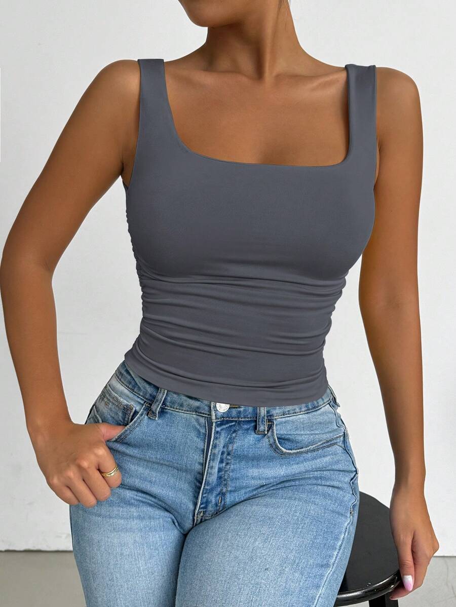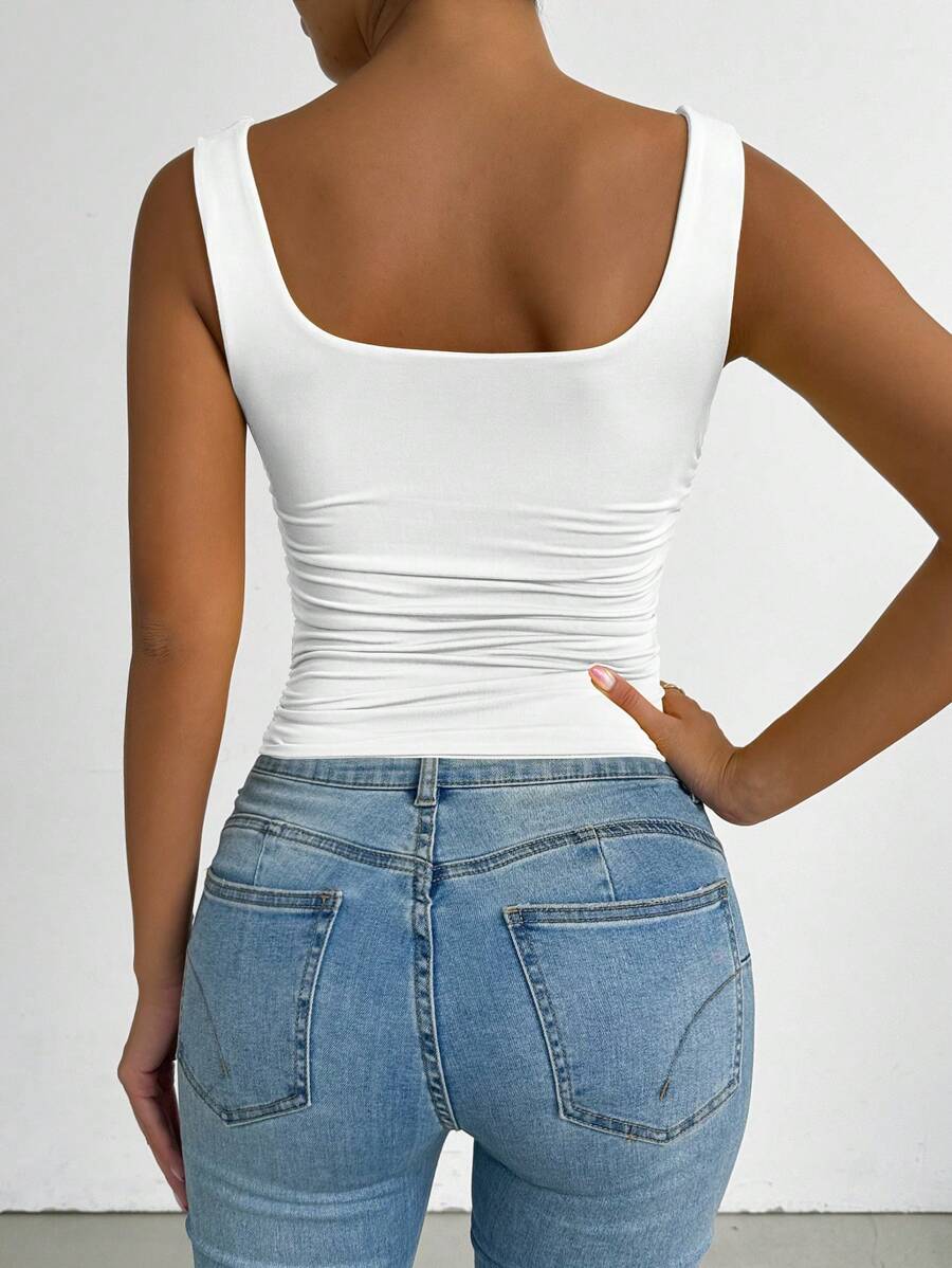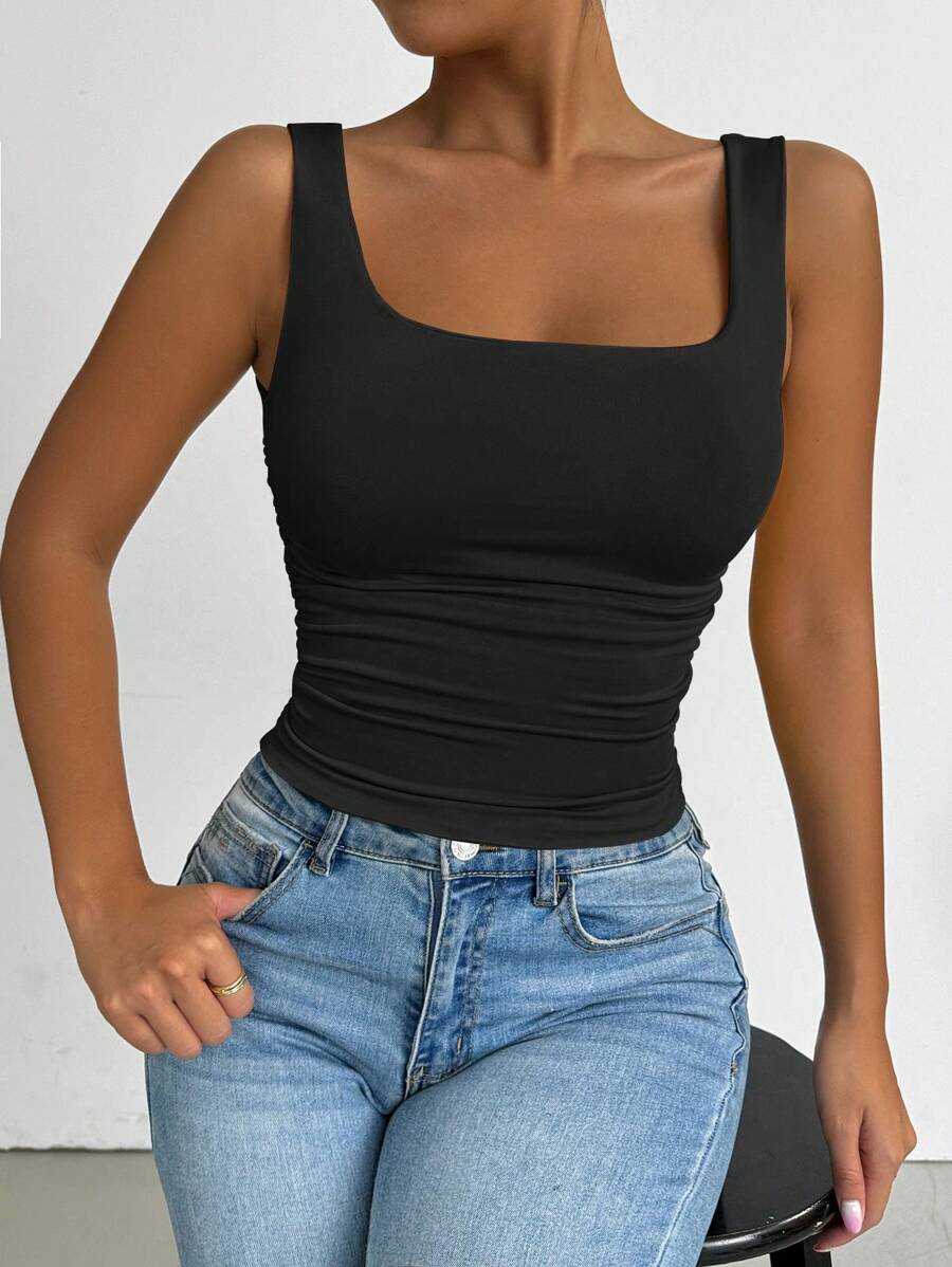 Chiquease Solid Color Minimalist Wide Strap Casual Tank Top