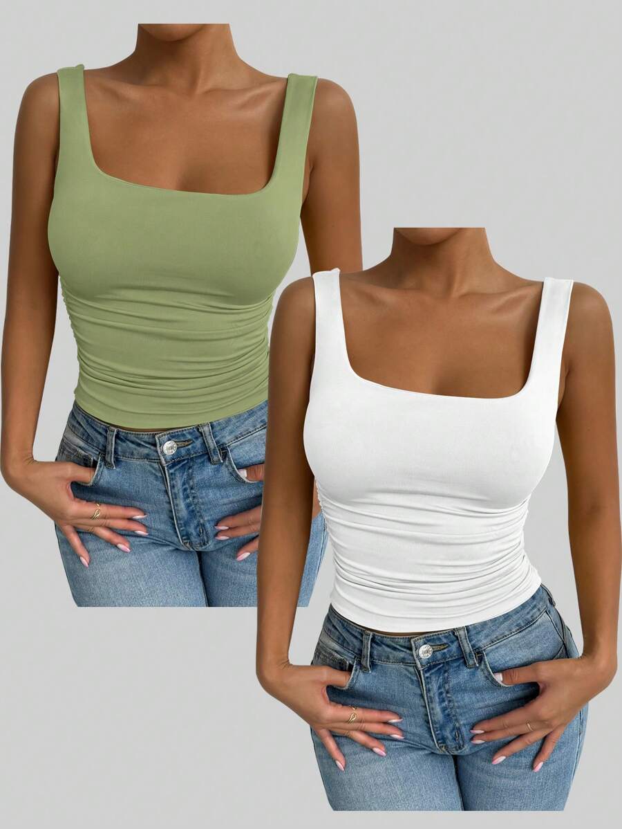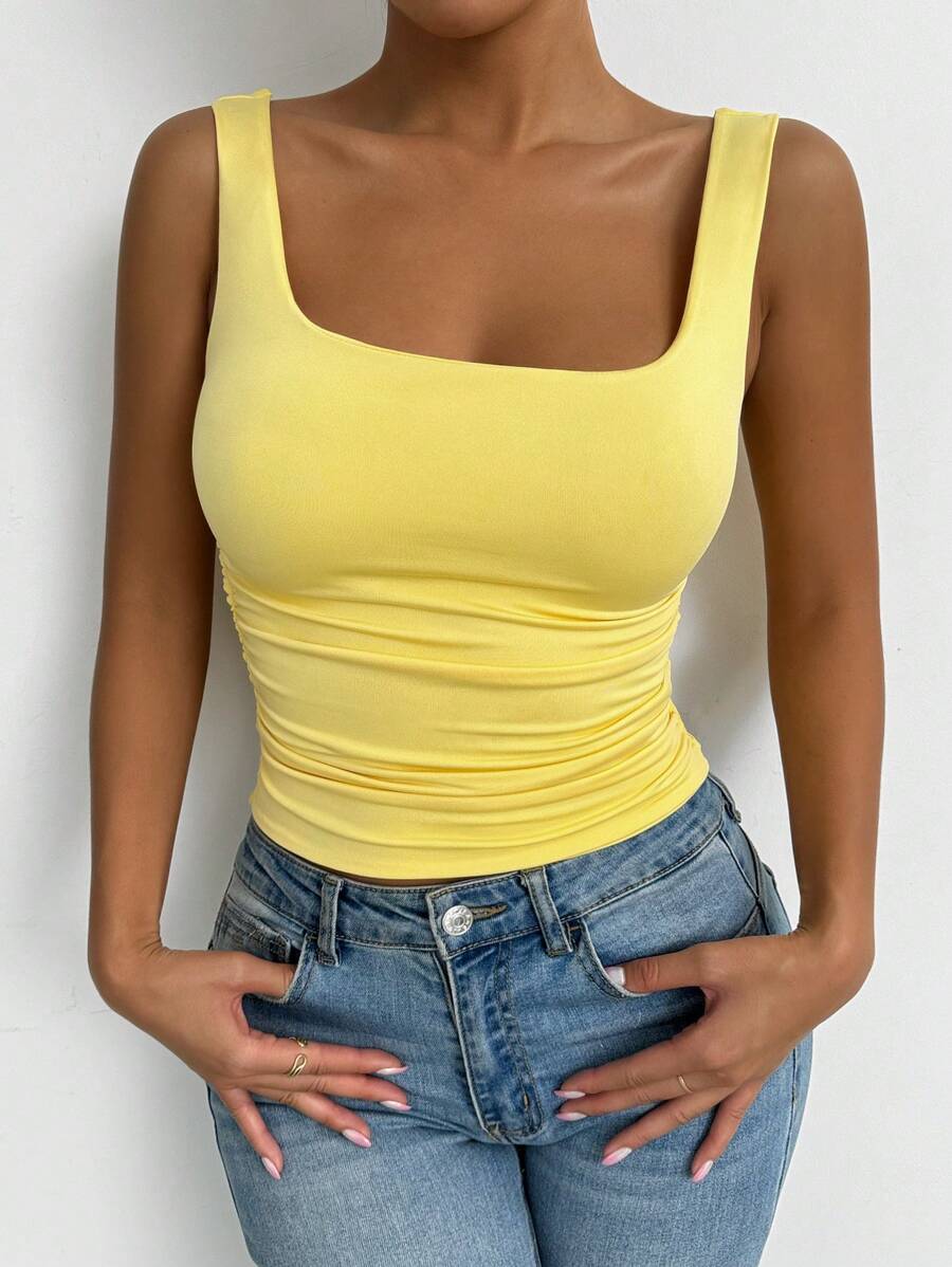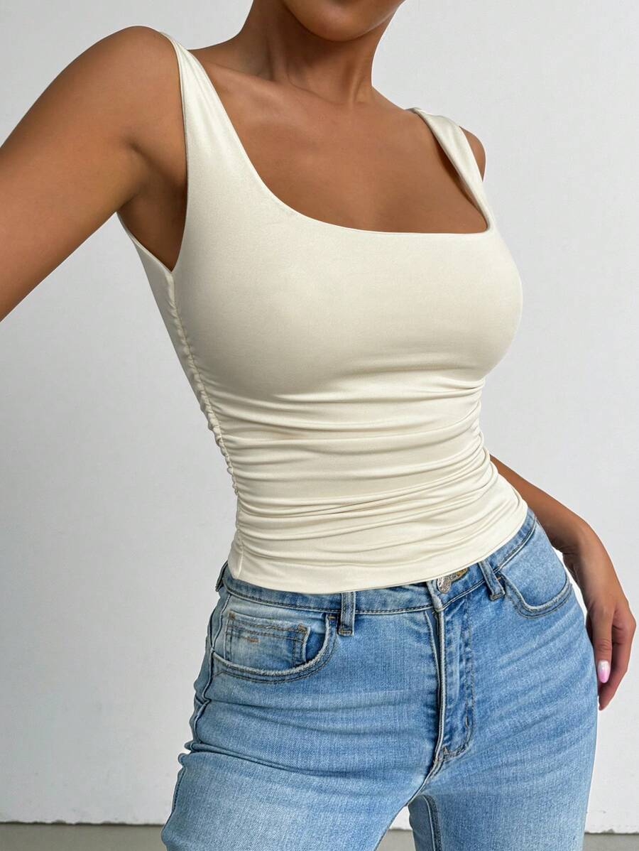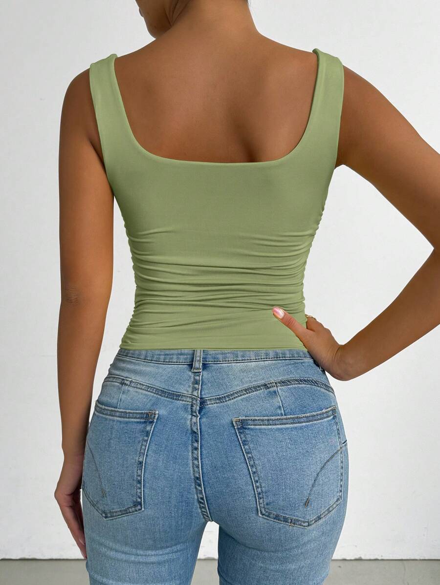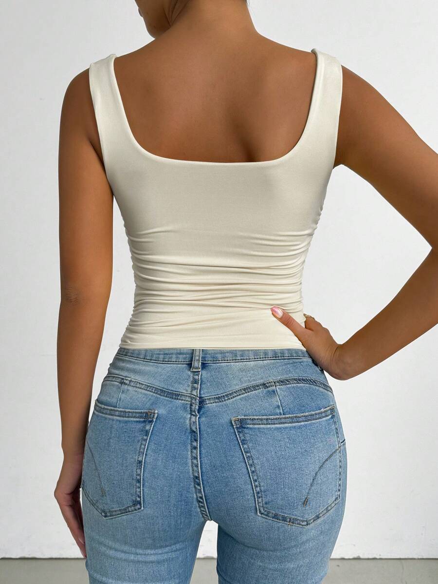 Chiquease Solid Color Minimalist Wide Strap Casual Tank Top