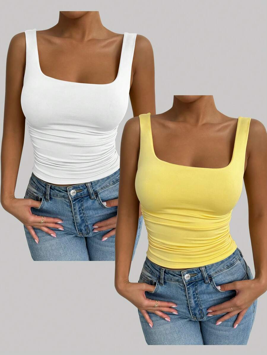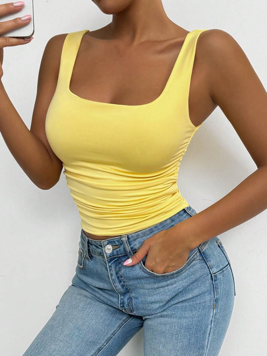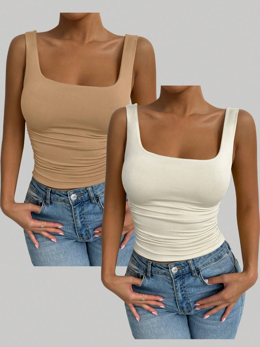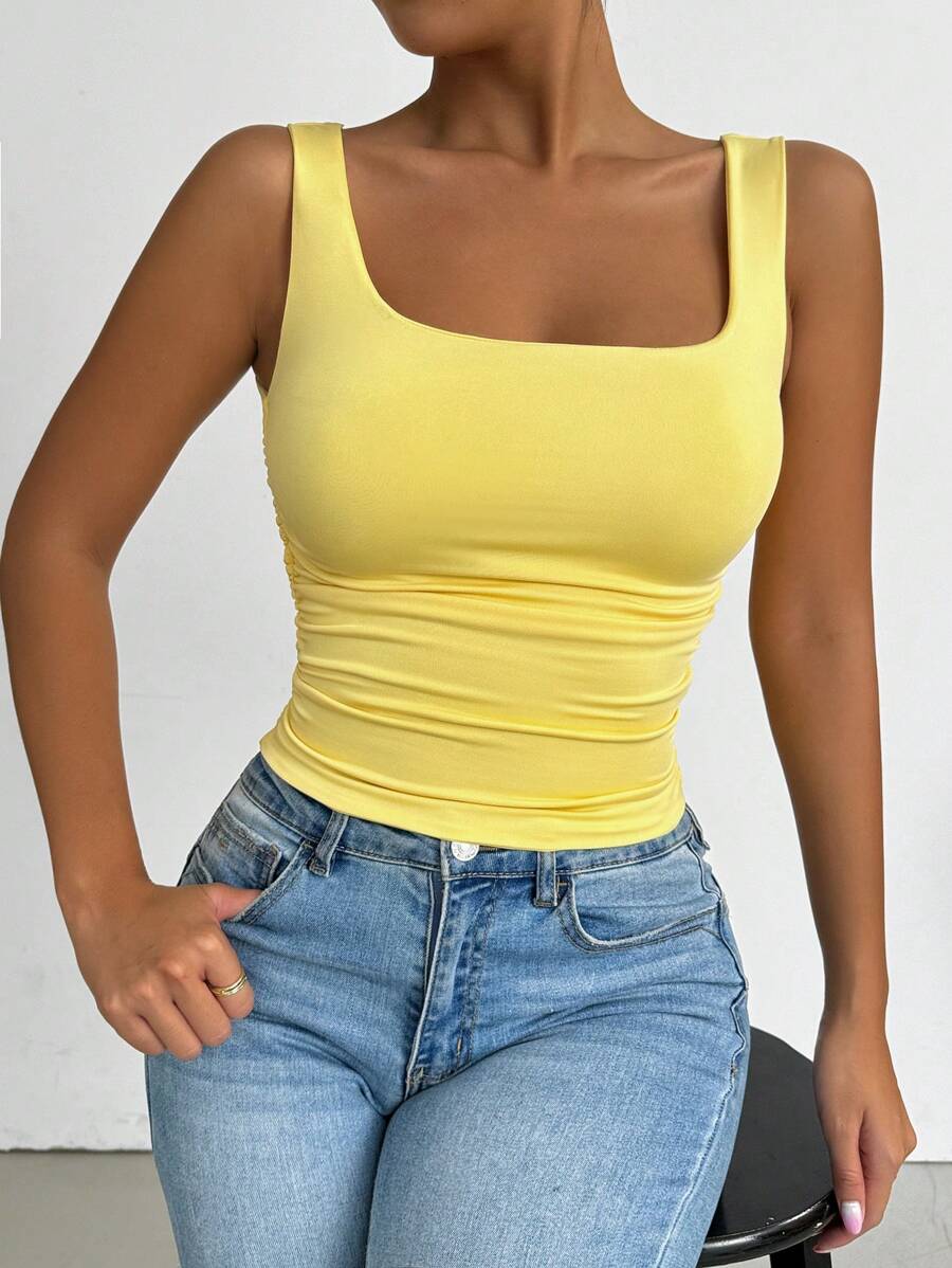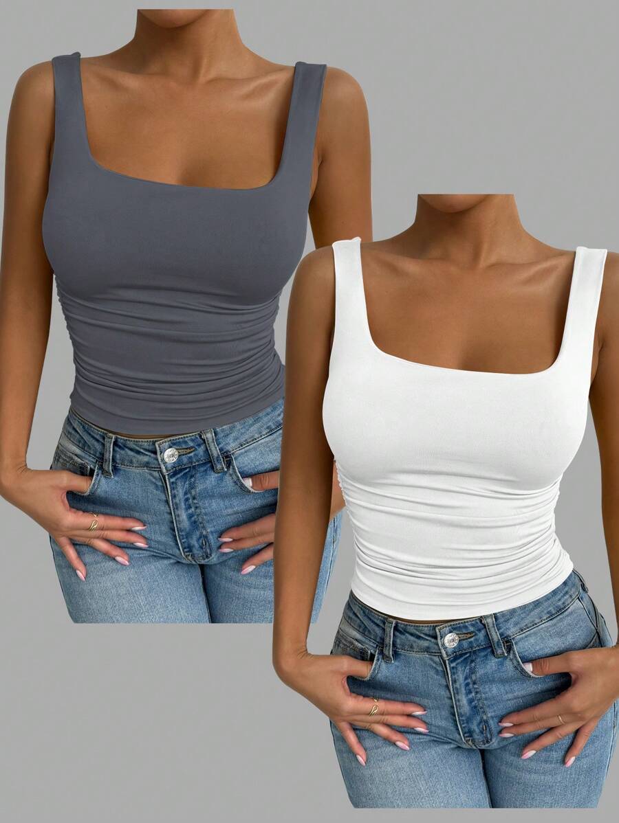 Chiquease Solid Color Minimalist Wide Strap Casual Tank Top