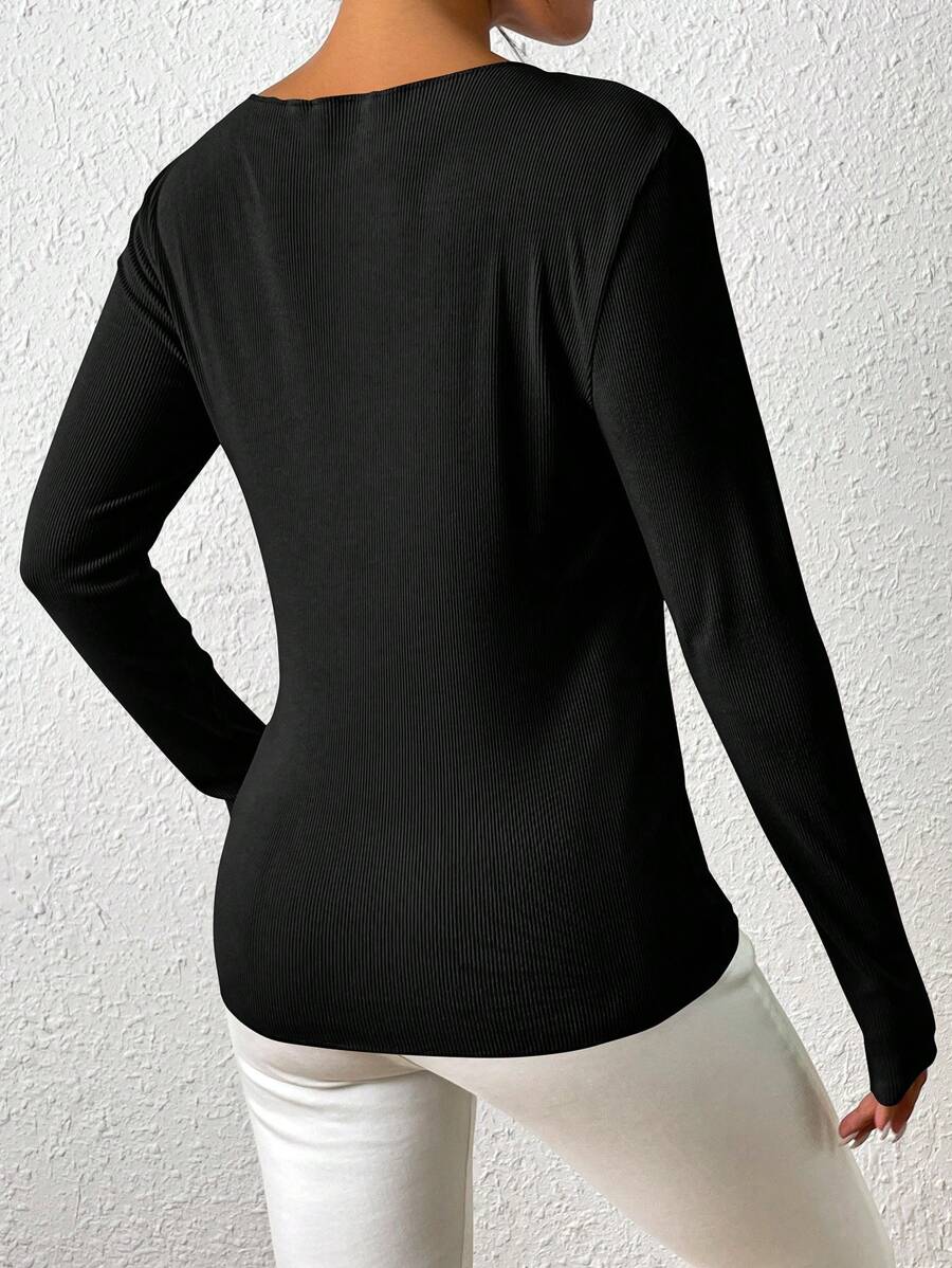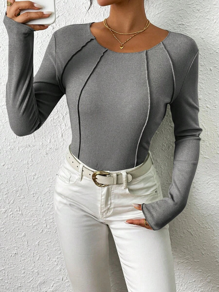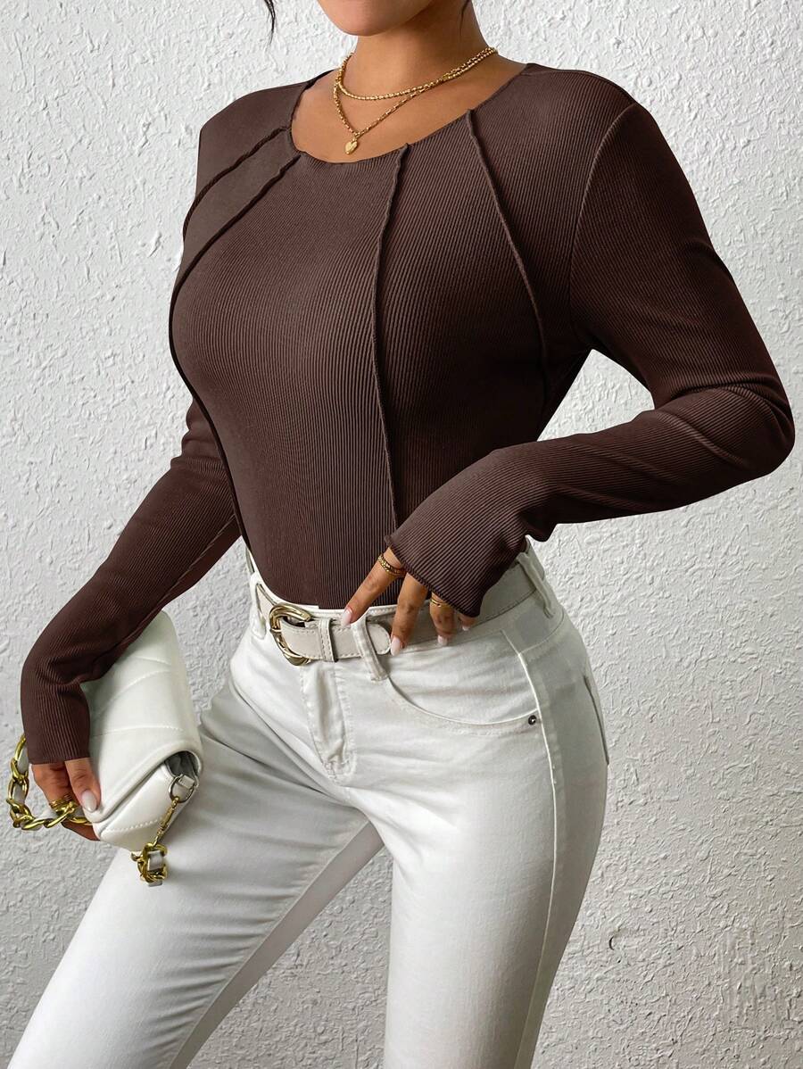 Chiquease Women's Autumn Casual Ribbed Patchwork Form-Fitting Long Sleeve T-Shirt Fall Cloth For Women