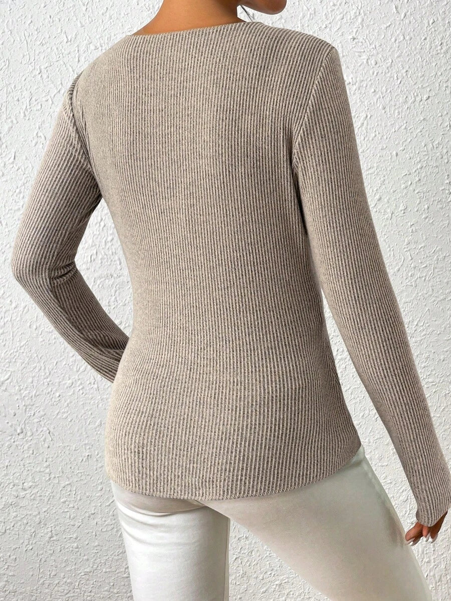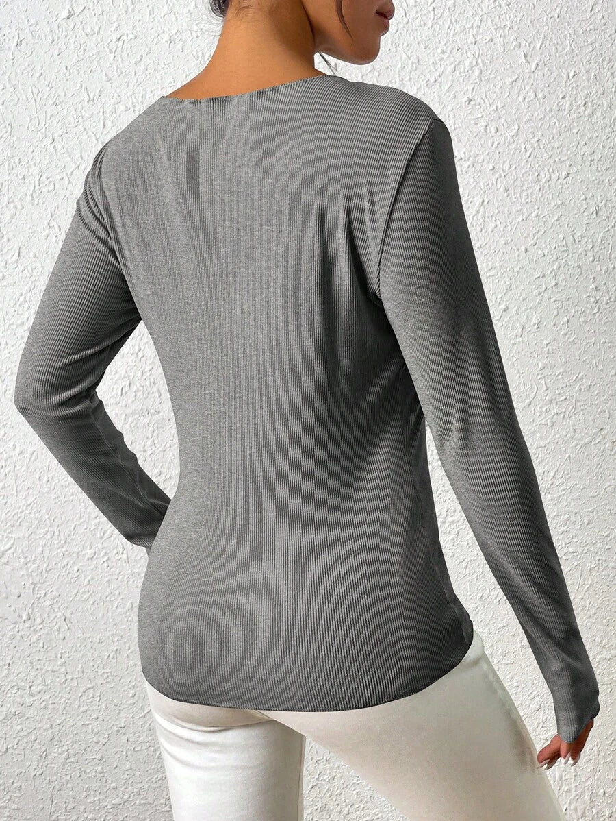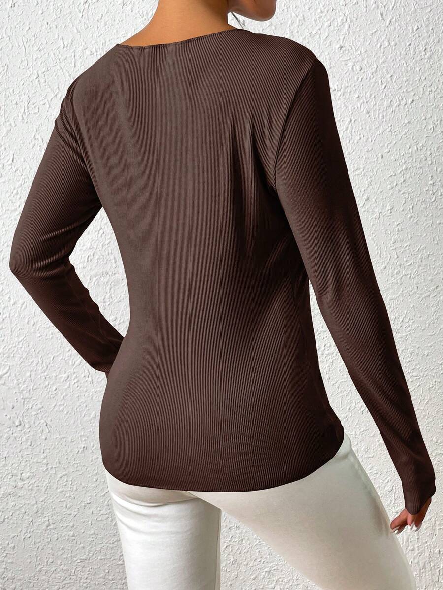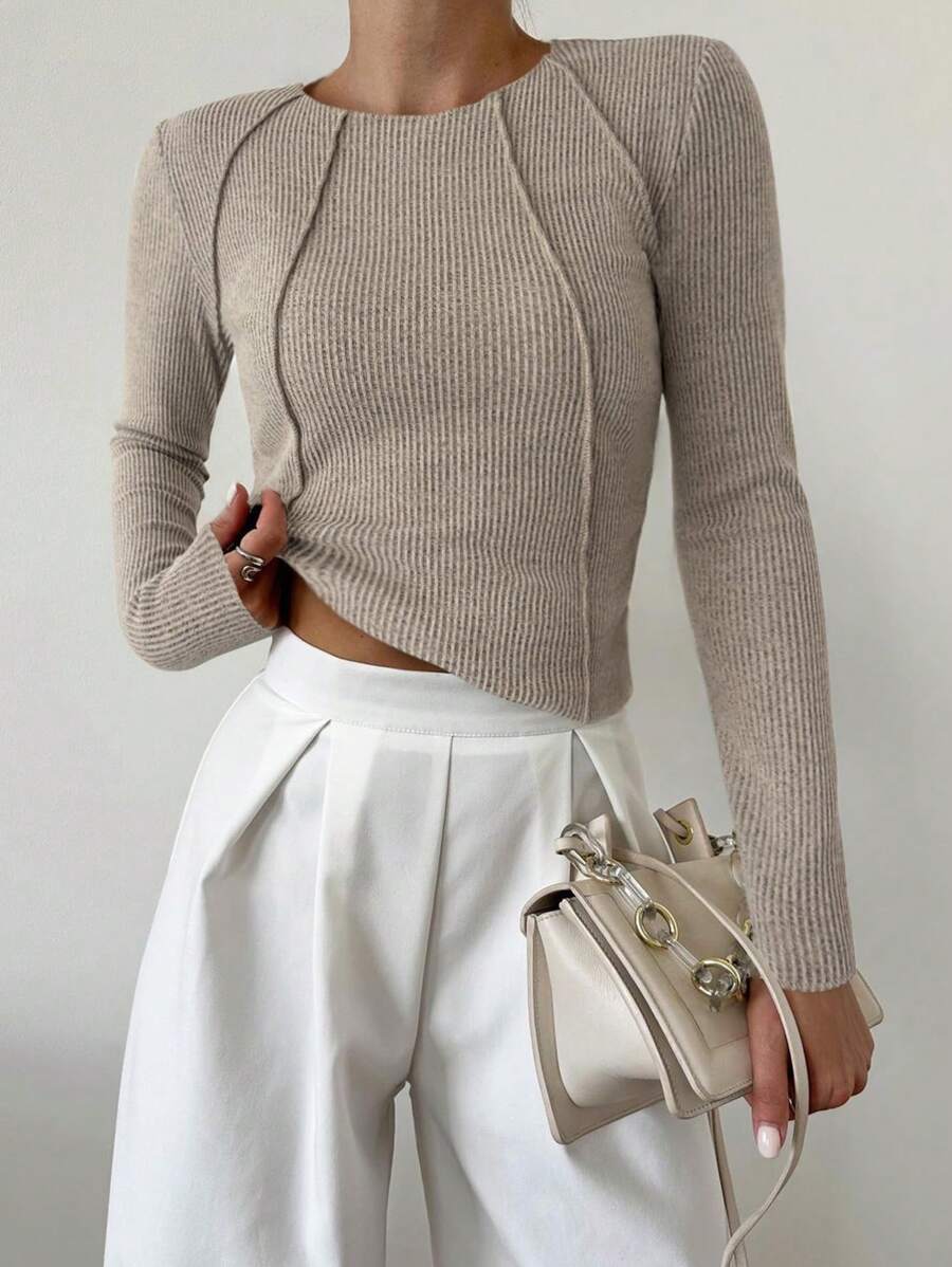 Chiquease Women's Autumn Casual Ribbed Patchwork Form-Fitting Long Sleeve T-Shirt Fall Cloth For Women