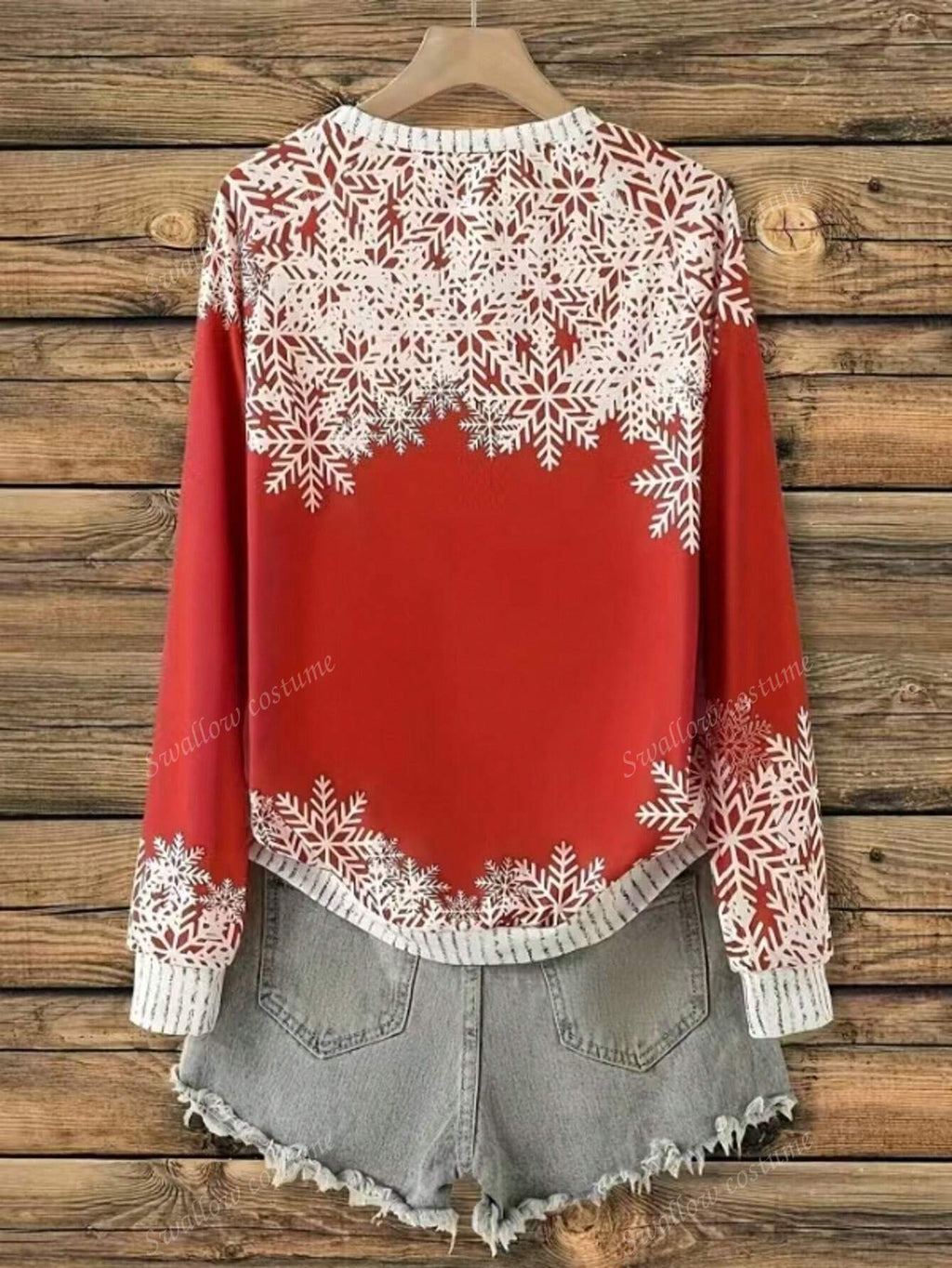 Christmas New Snowman Print Long Sleeve Casual Loose Sweatshirt For Women