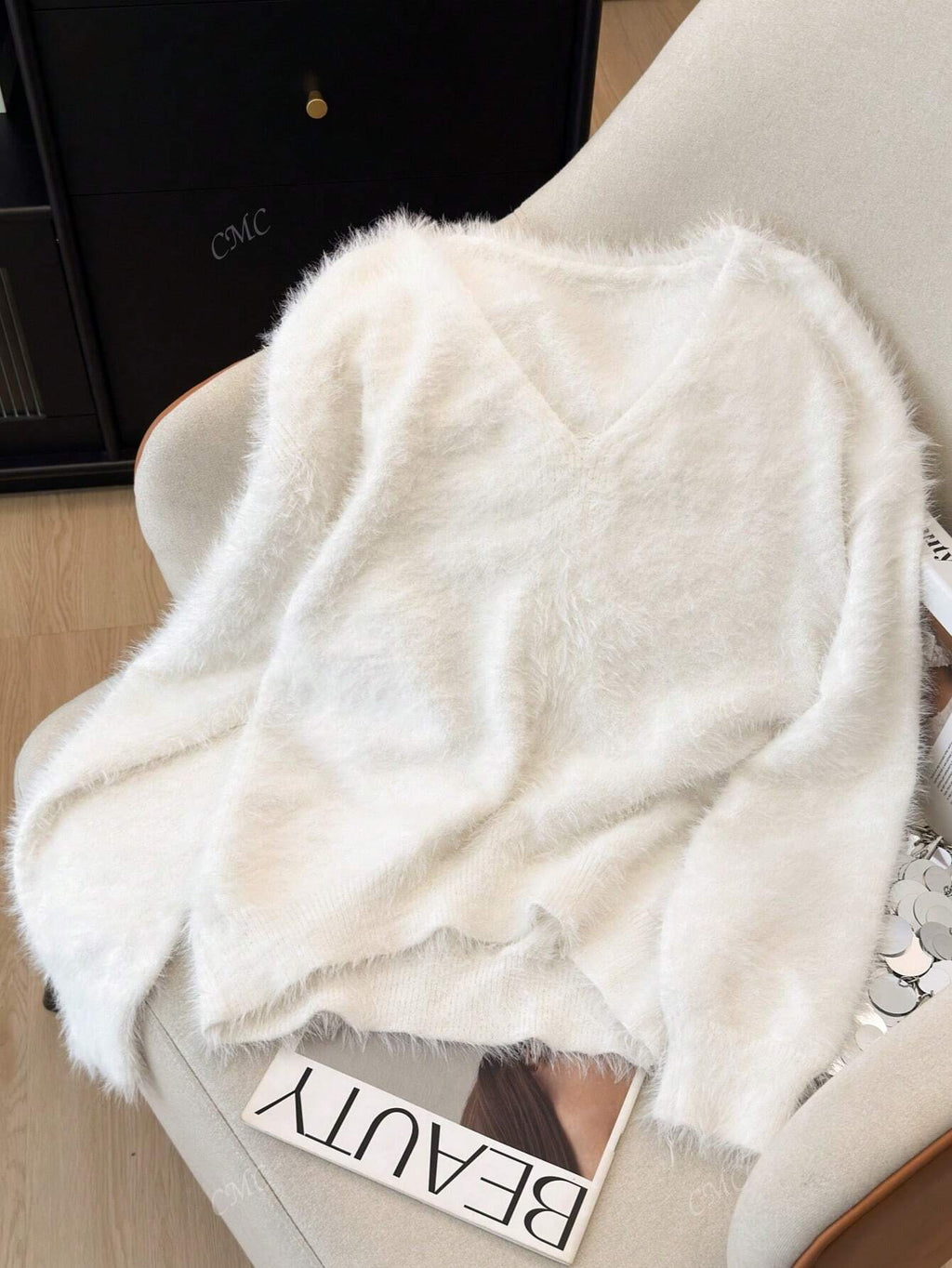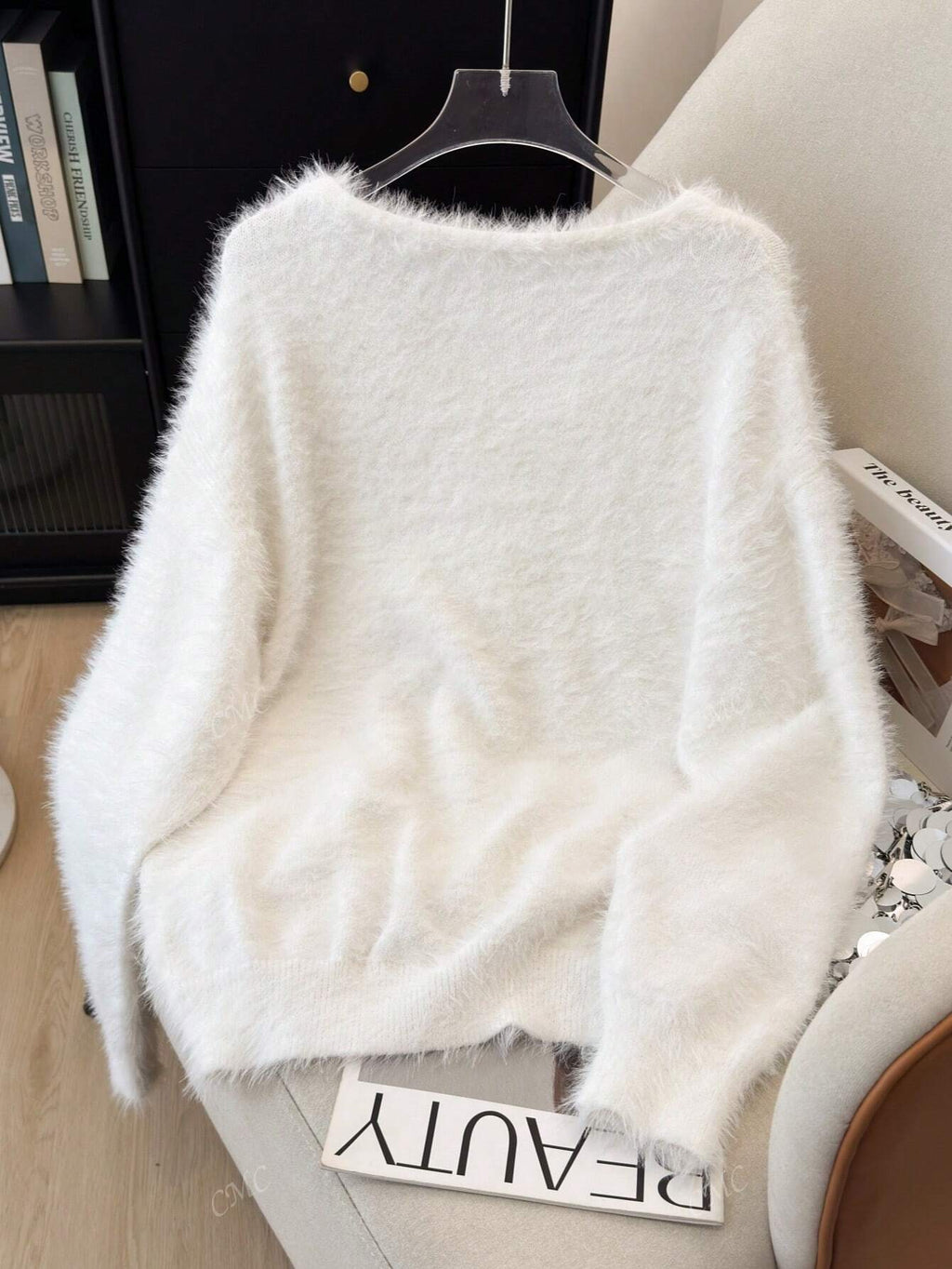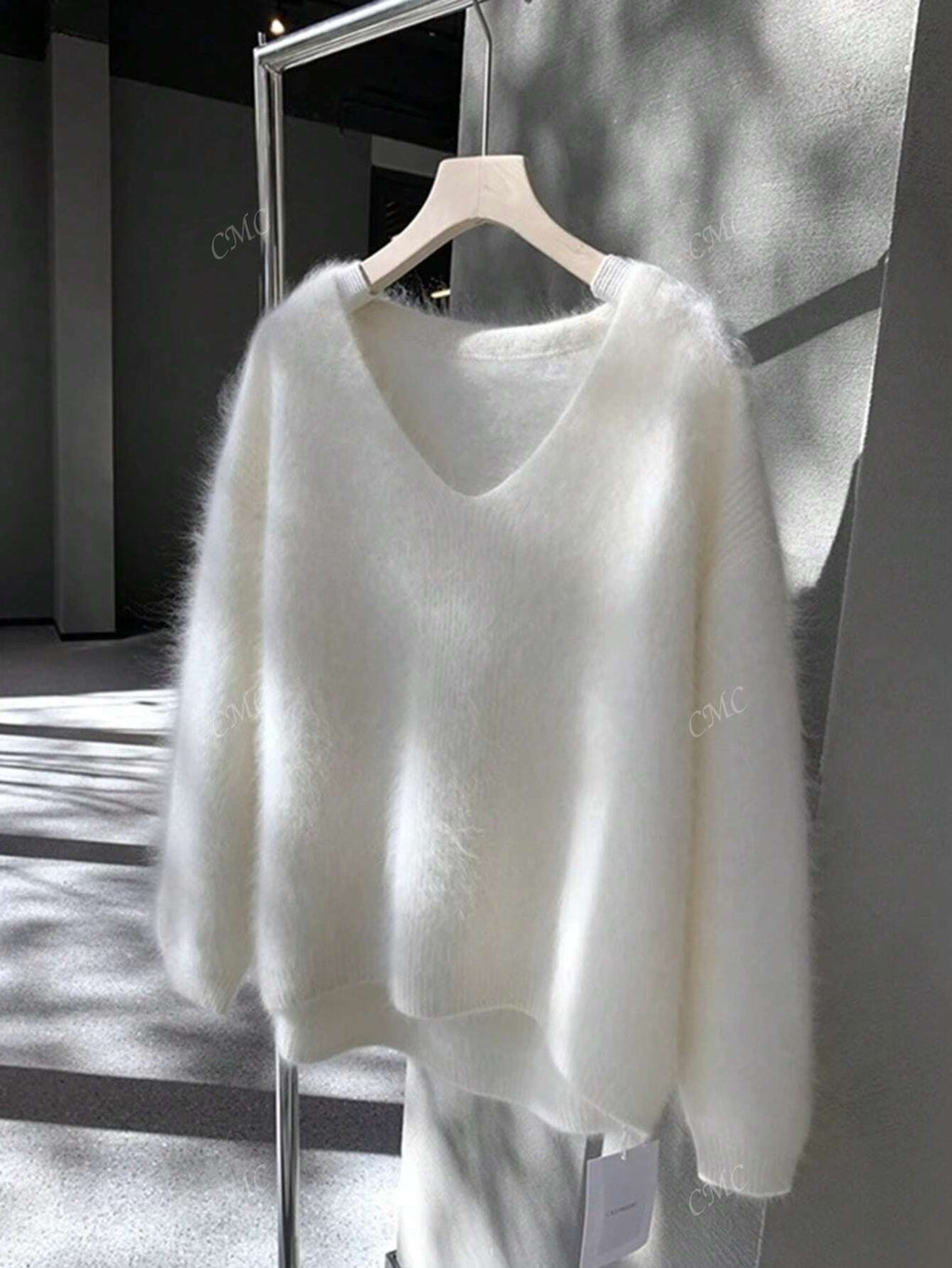 CMC Elegant Casual Solid Color Polyester Ribbed Soft Knit Asymmetric/Asymmetrical Sweater, Suitable For Home, Office, Street, Travel In Spring, Autumn And Winter