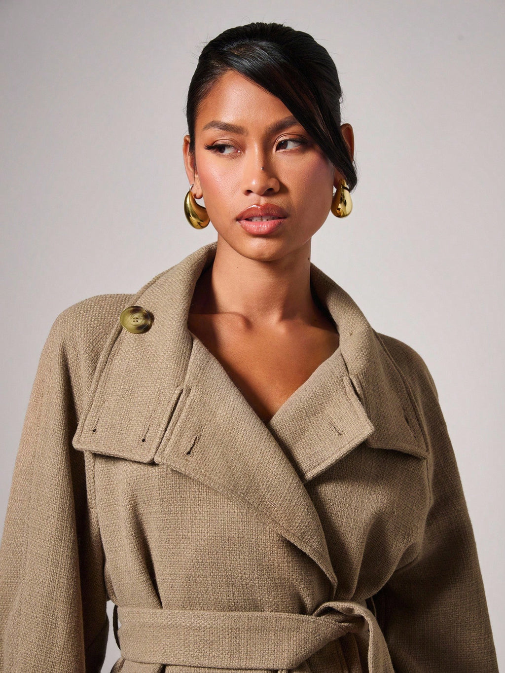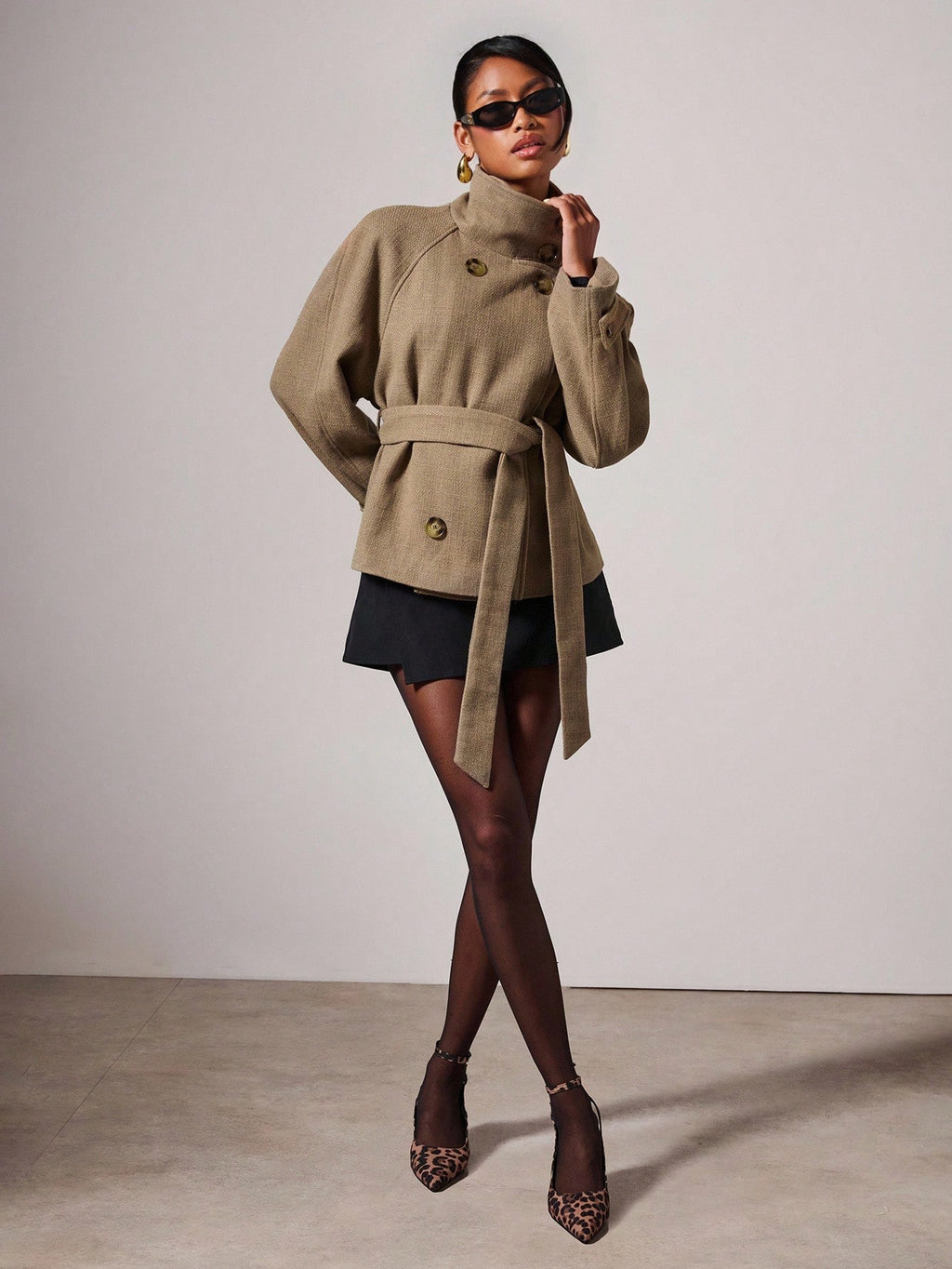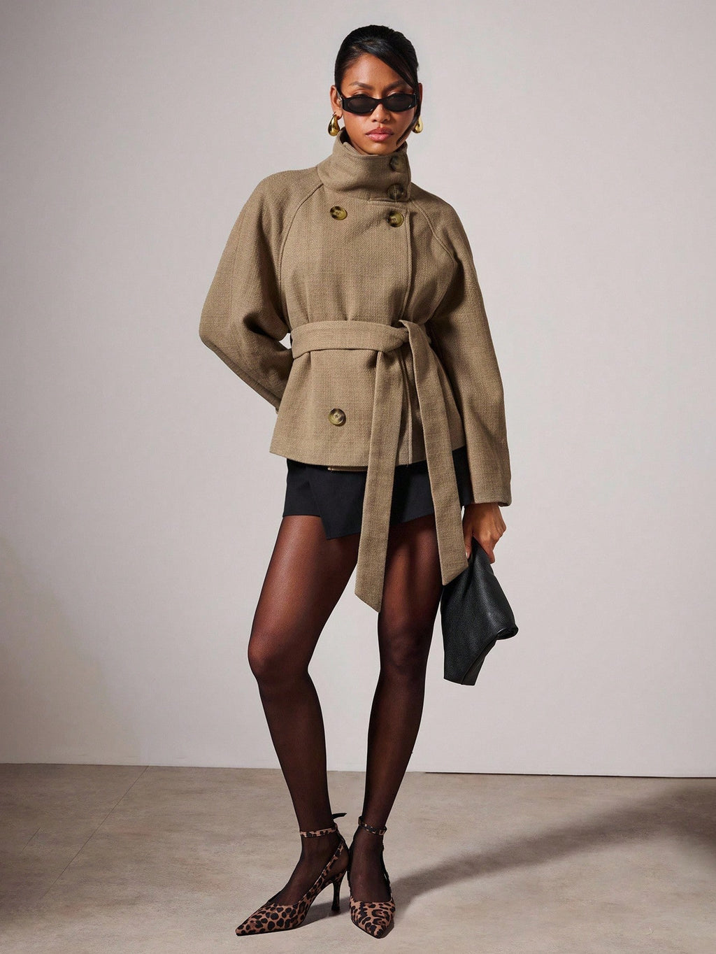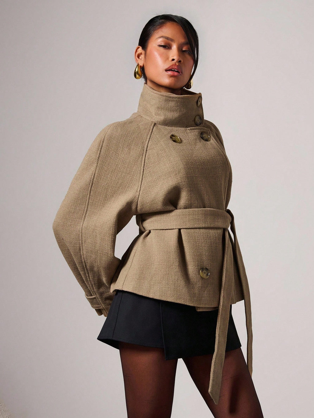 COSMINA Women's Elegant High Collar Tie-Up Regular Jacket, Autumn/Winter
