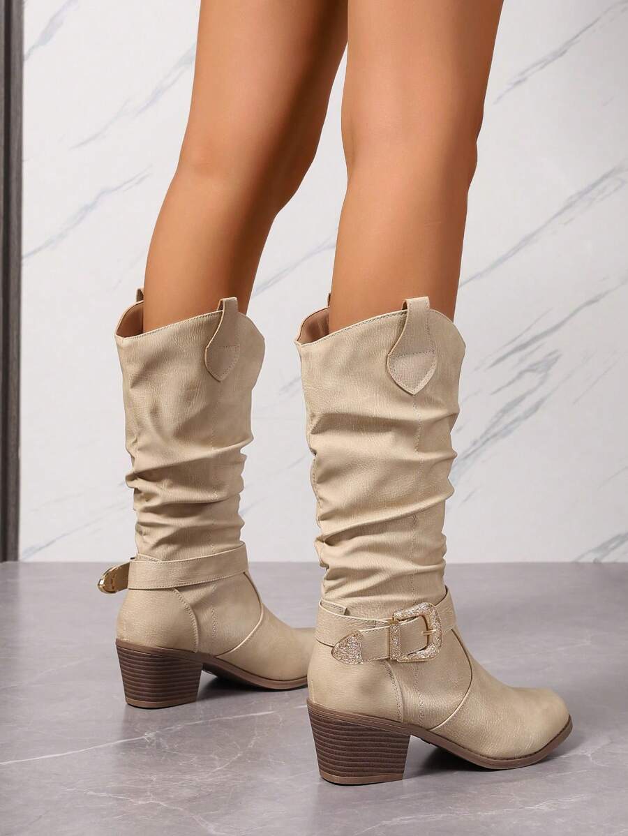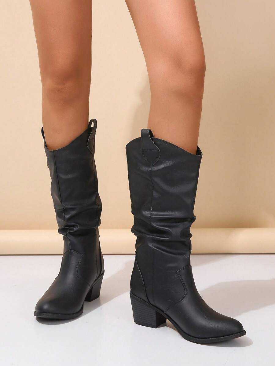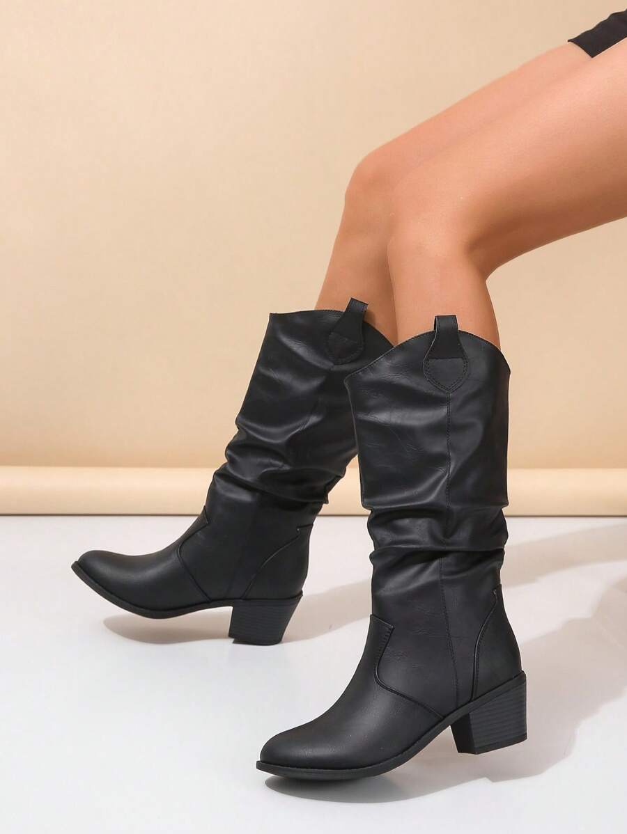 Crne čizme s naborima do sredine lista sa masivnim potplatima, udobne