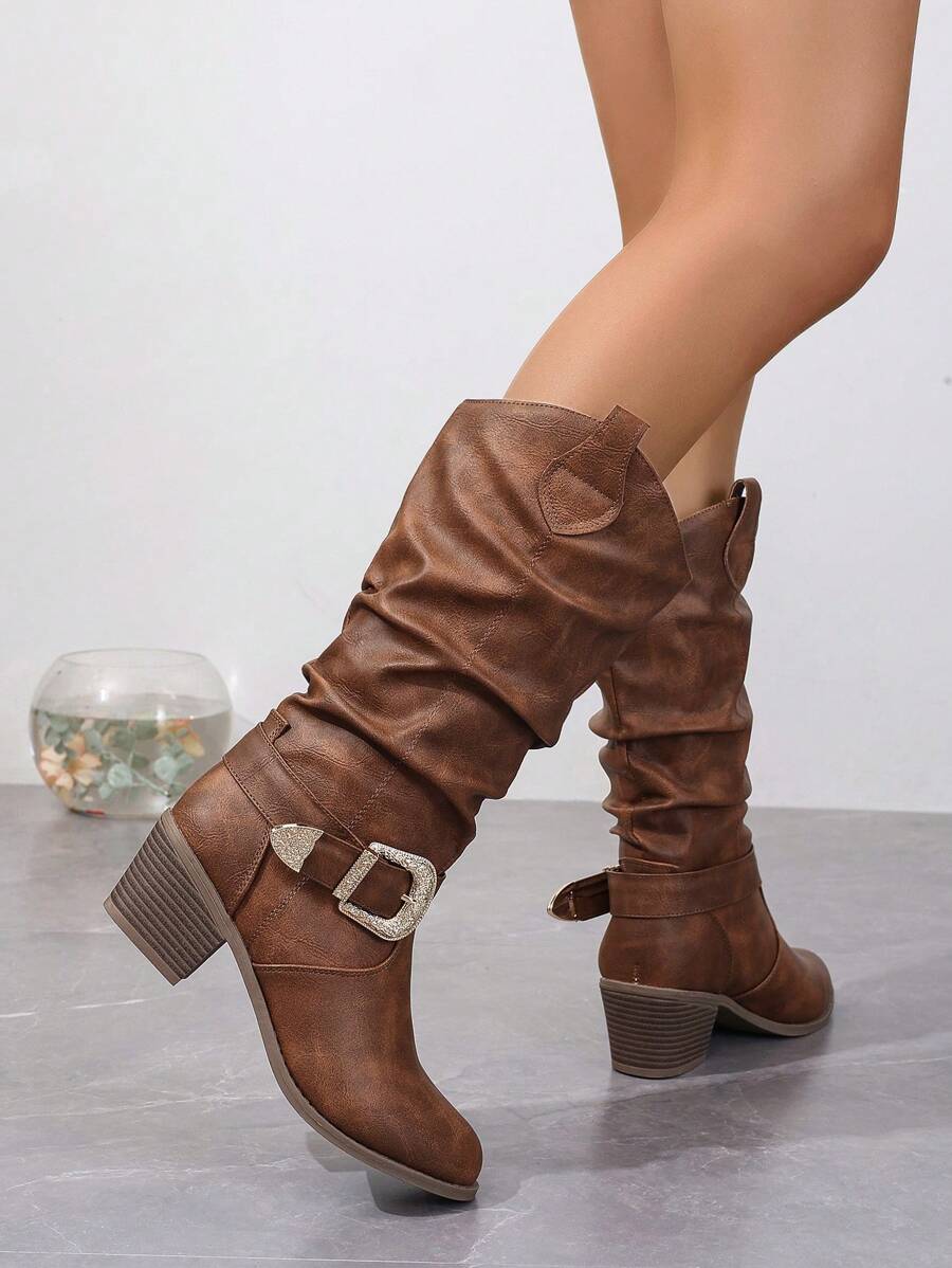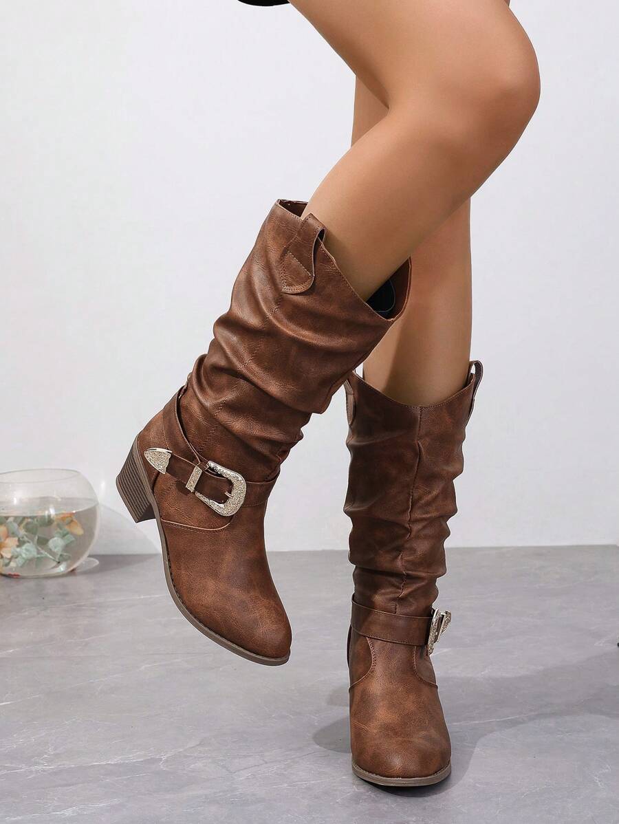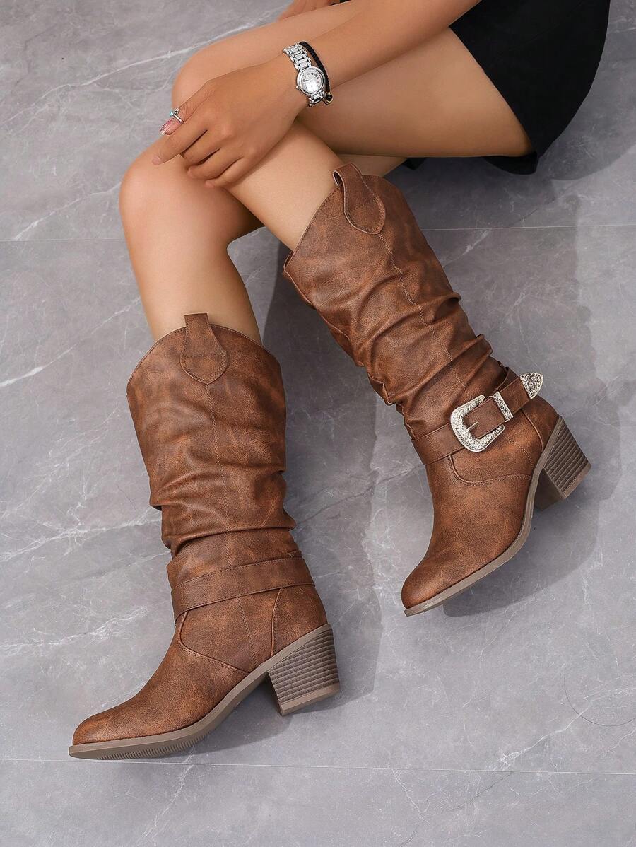 Crne čizme s naborima do sredine lista sa masivnim potplatima, udobne