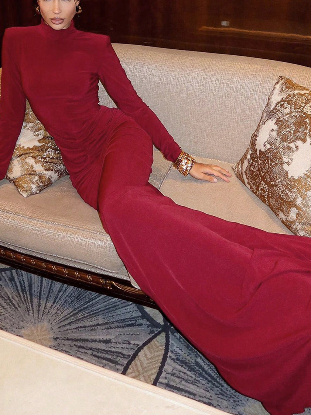 MIU AZRA Ženska Crna Crep Haljina sa Nabranom Ovratnikom i Rukavima u Zvonu