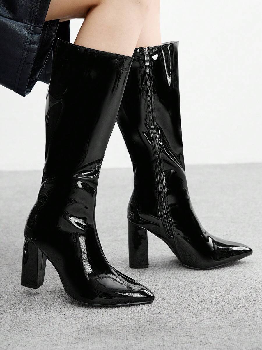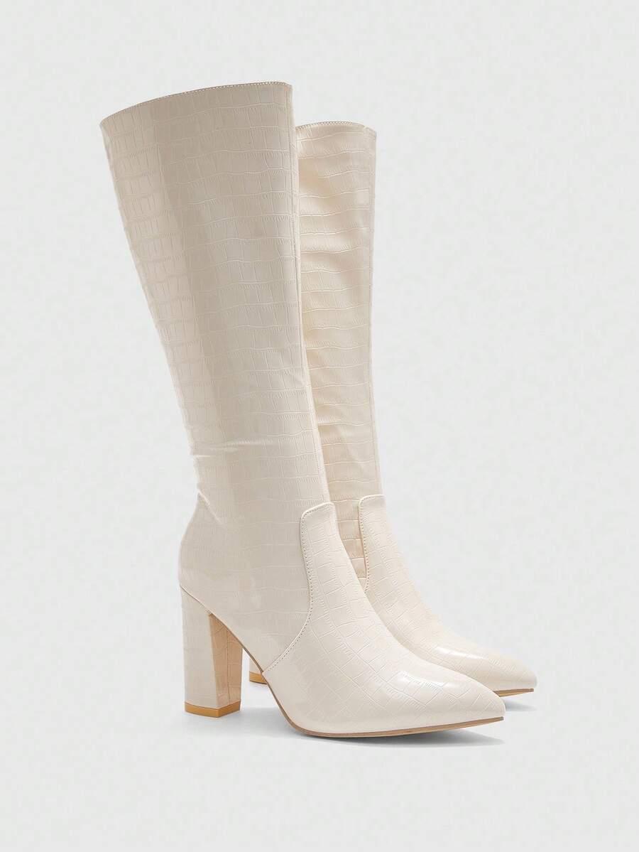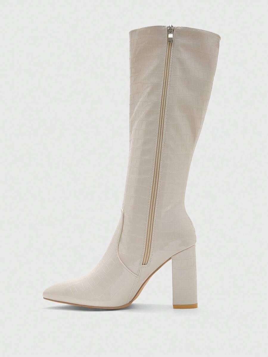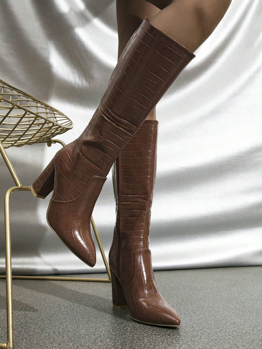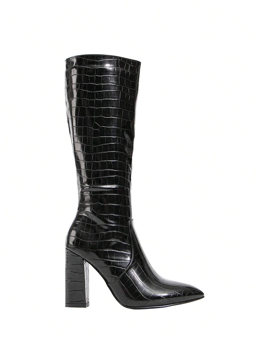 CUCCOO BIZCHIC Ženske modne nove čizme sa izazovnim krokodilskim dezenom, svestrane uske čizme sa chunky potpeticama