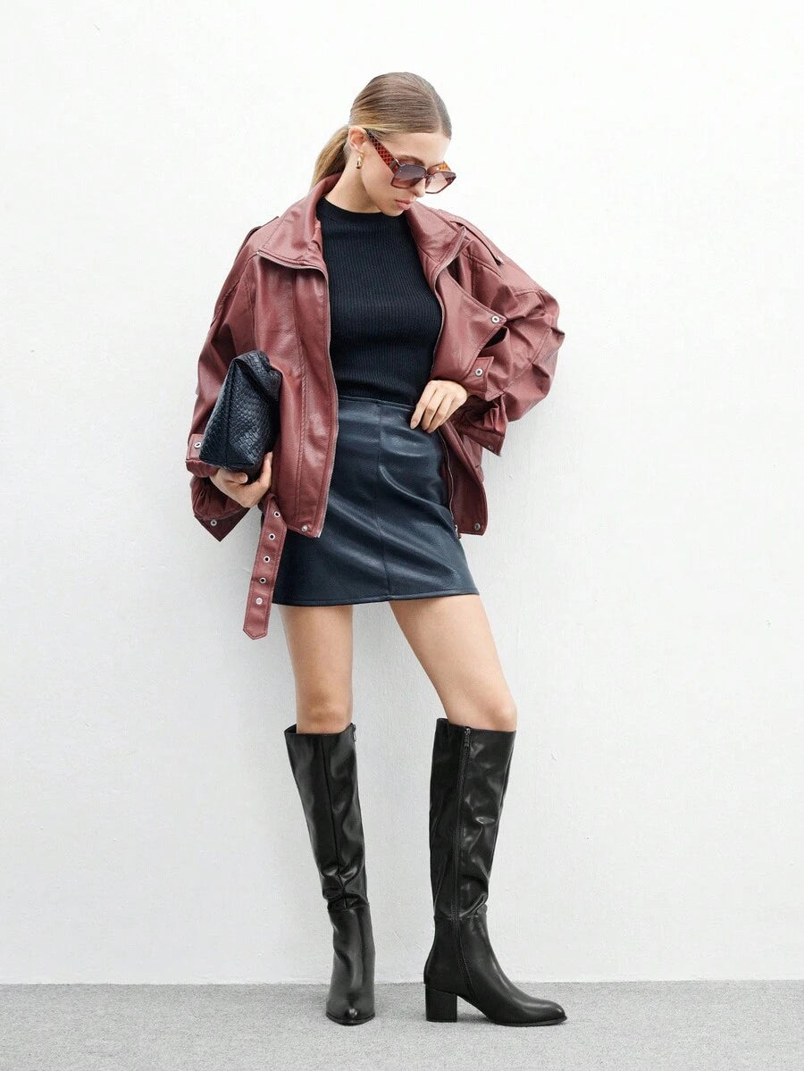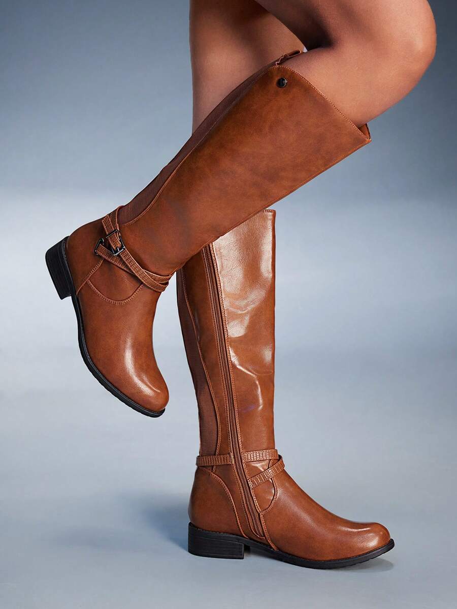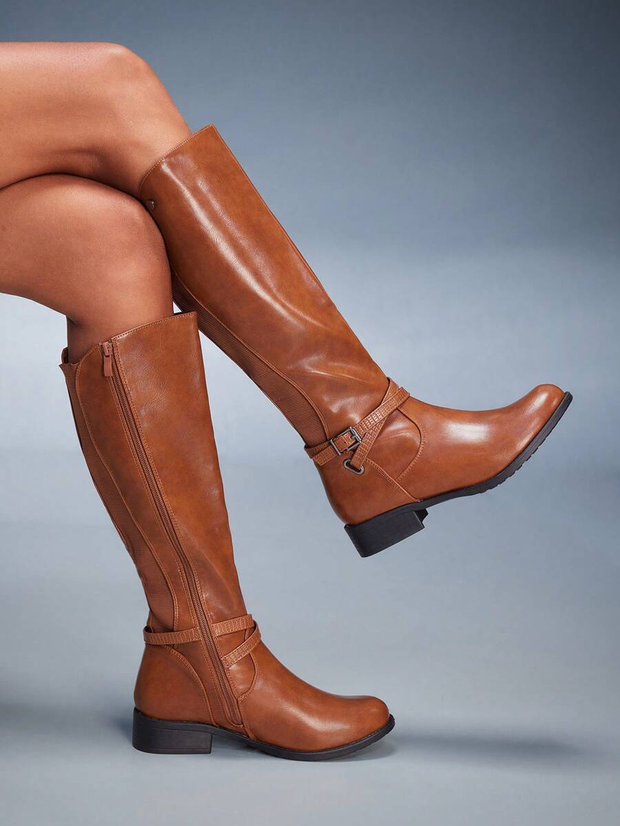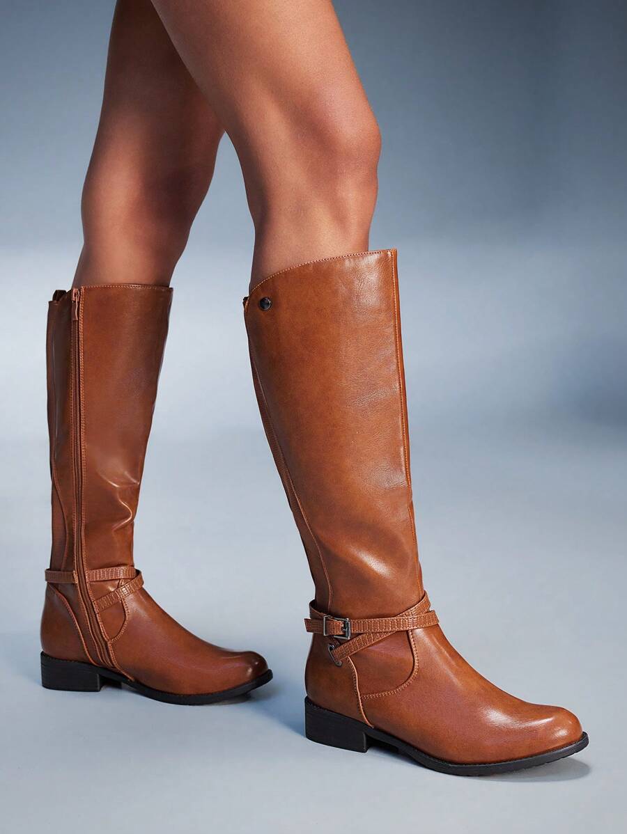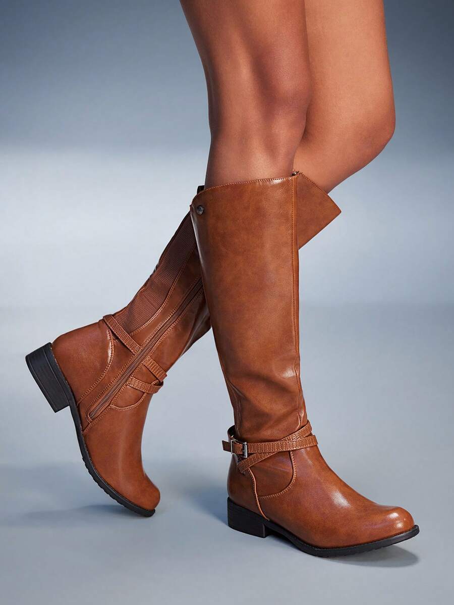 CUCCOO BIZCHIC Ženske nove modne čizme na vezivanje s kopčom srednjeg potkoljenice