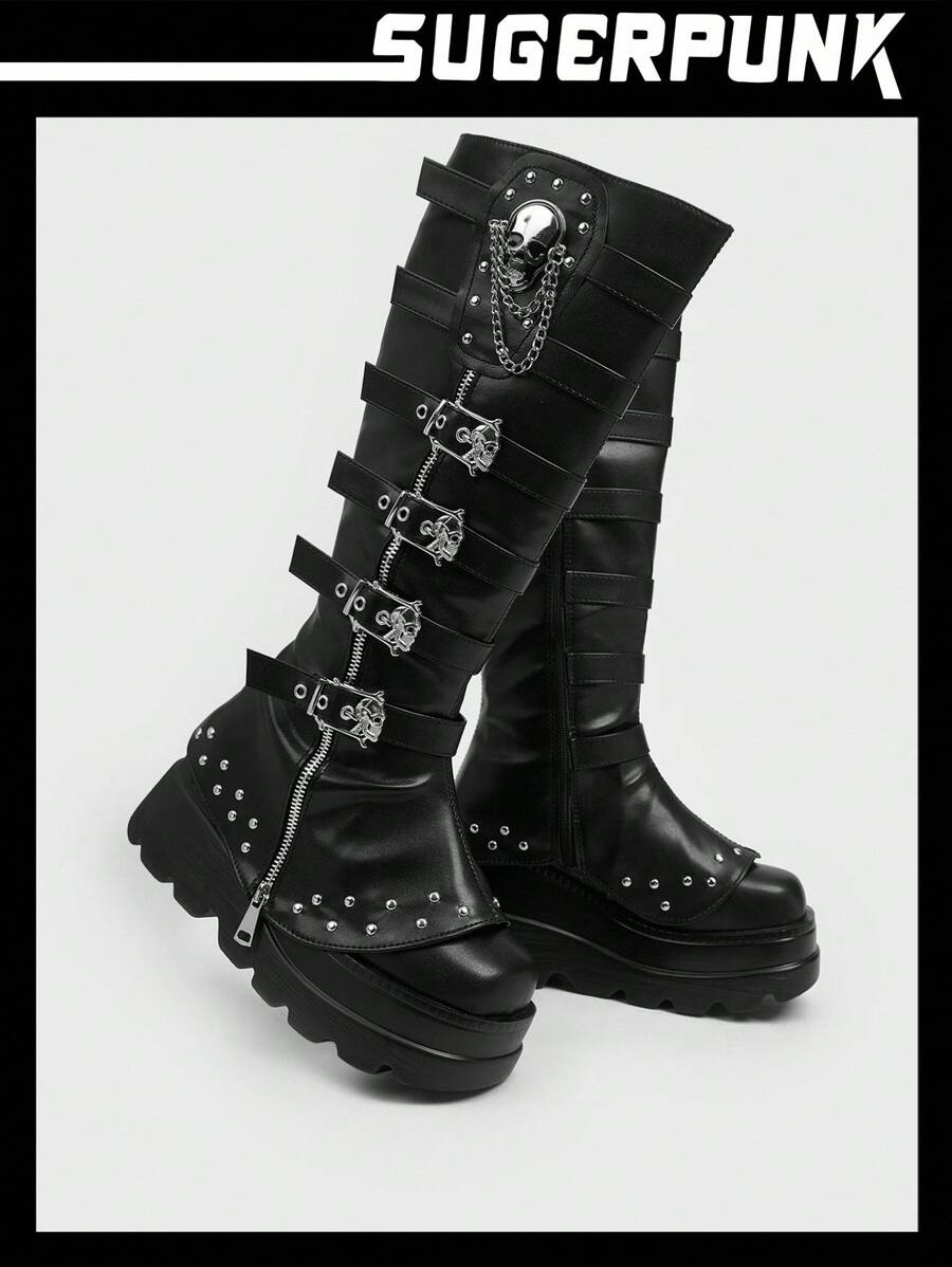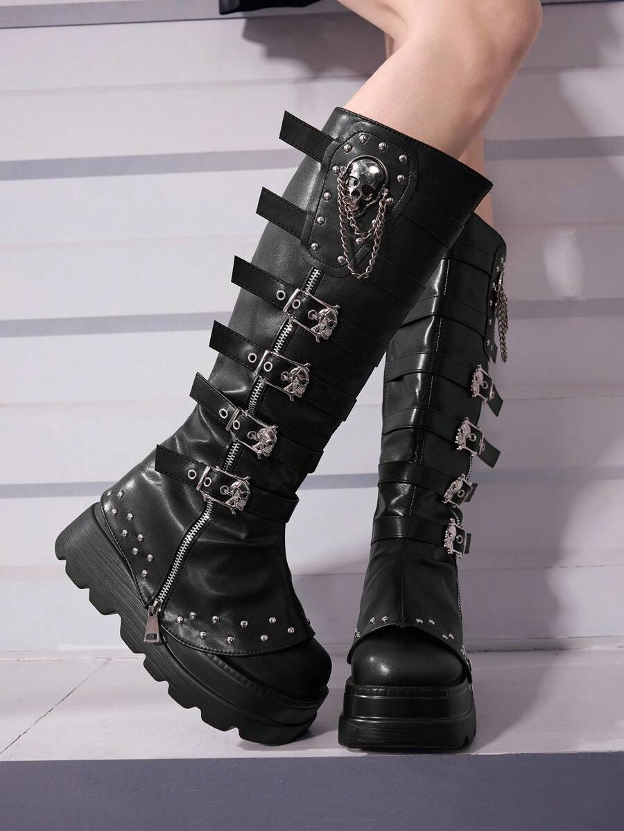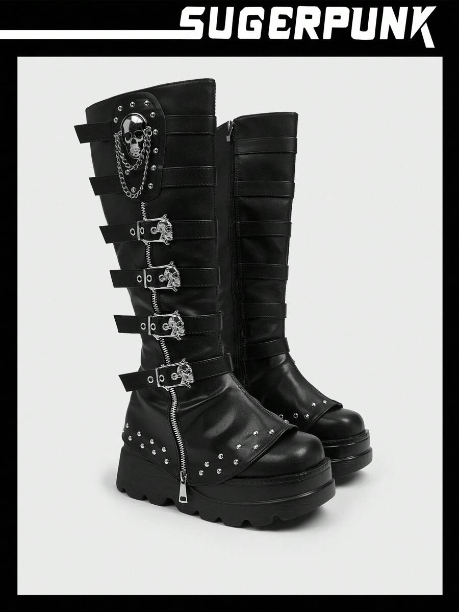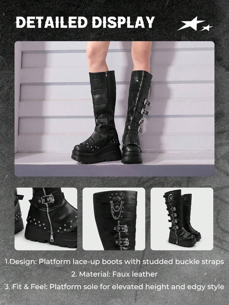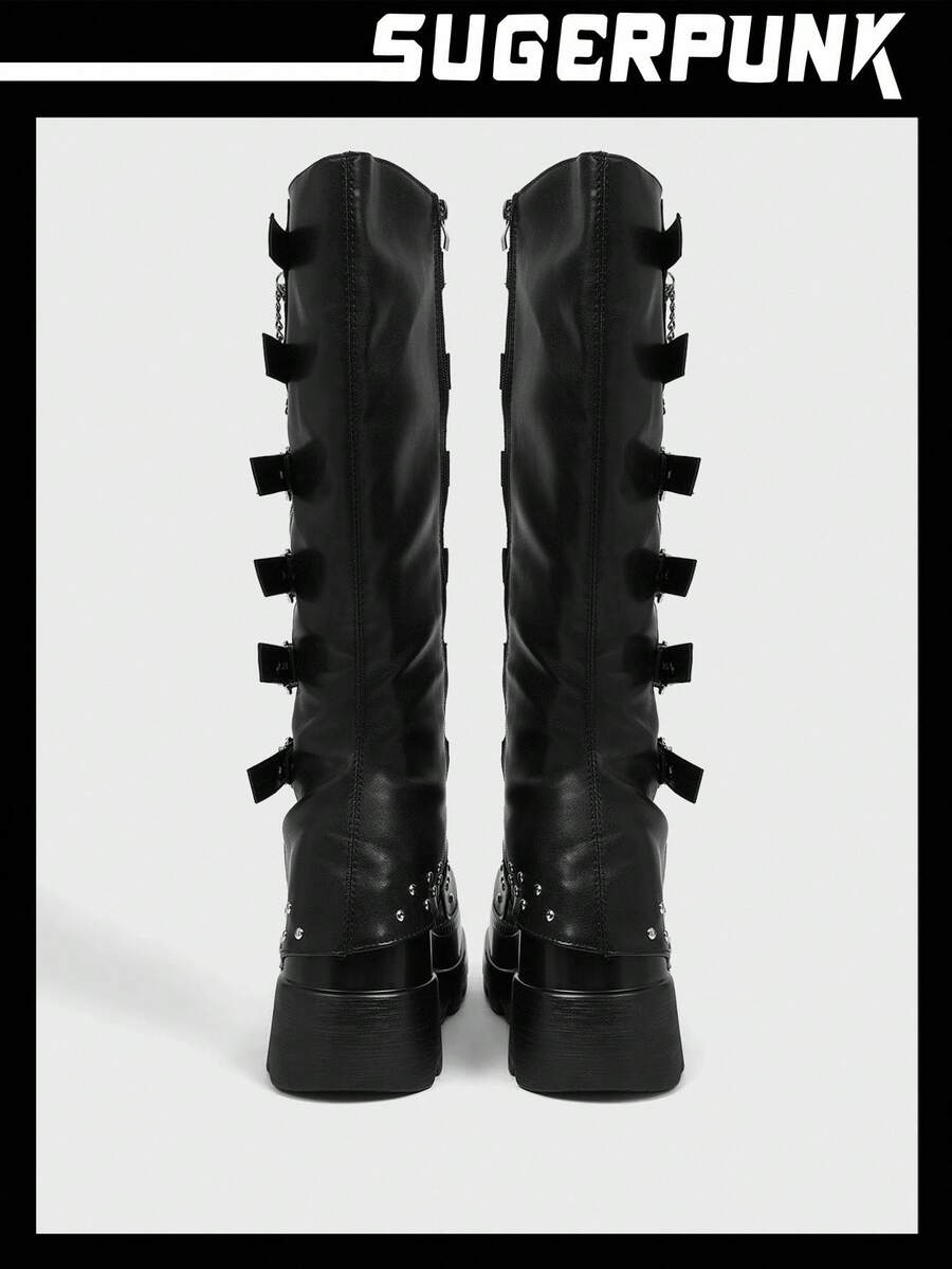 Cuccoo CUCCOO GRLICON Ženske čizme preko koljena, Y2K stil, biker chic, povratak u školu, Halloween, božićna zabava